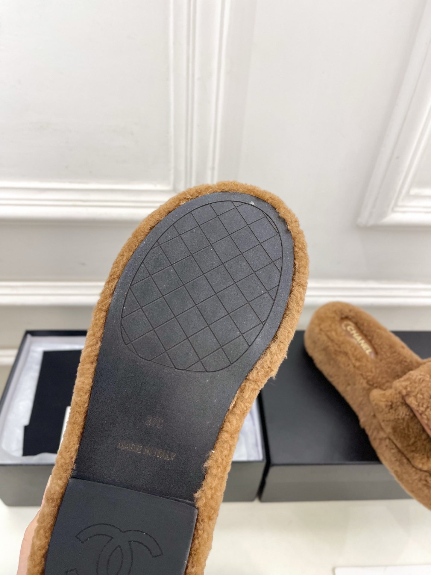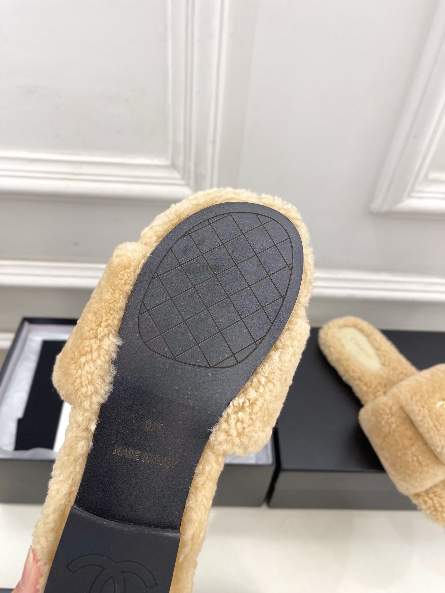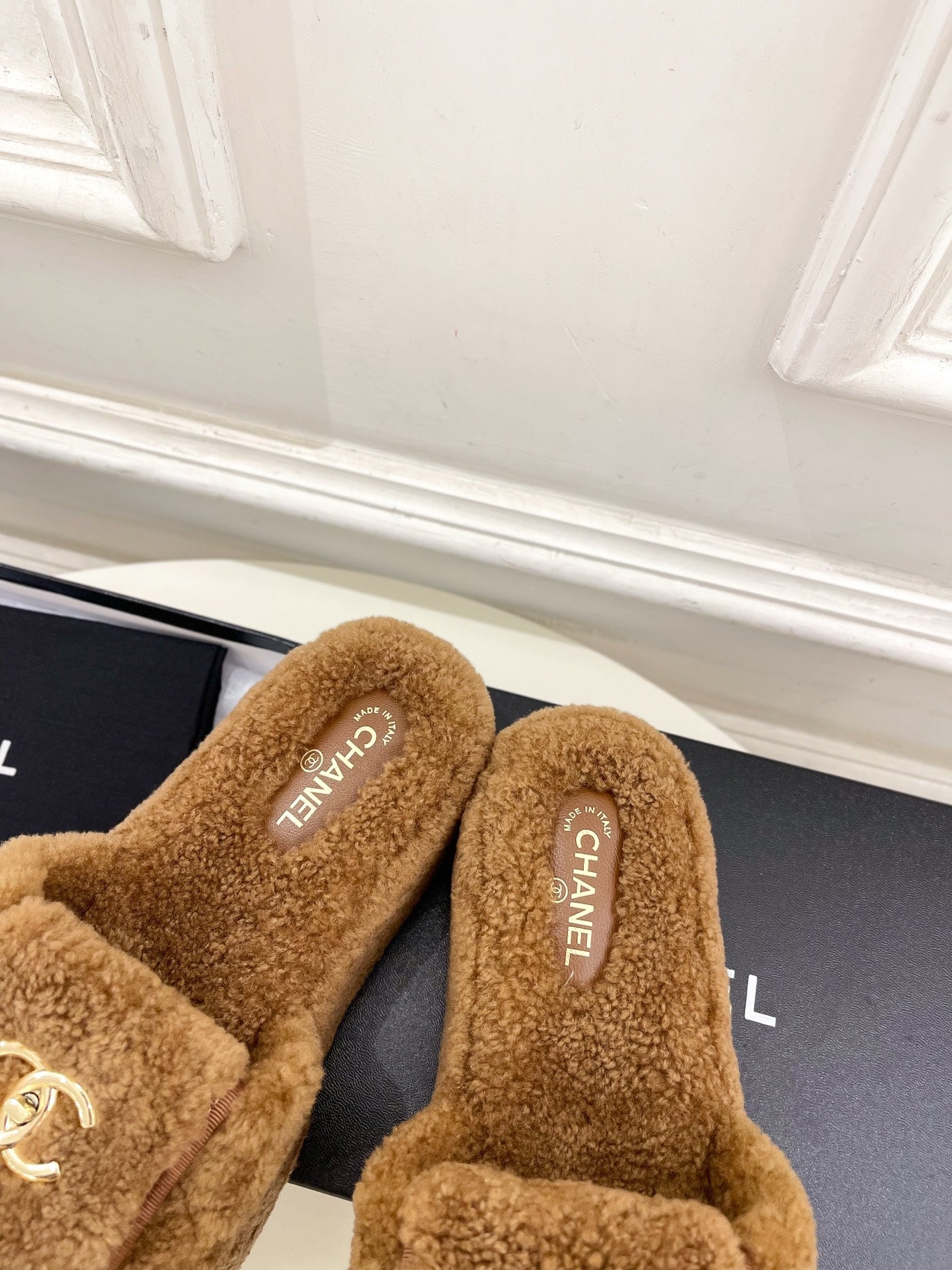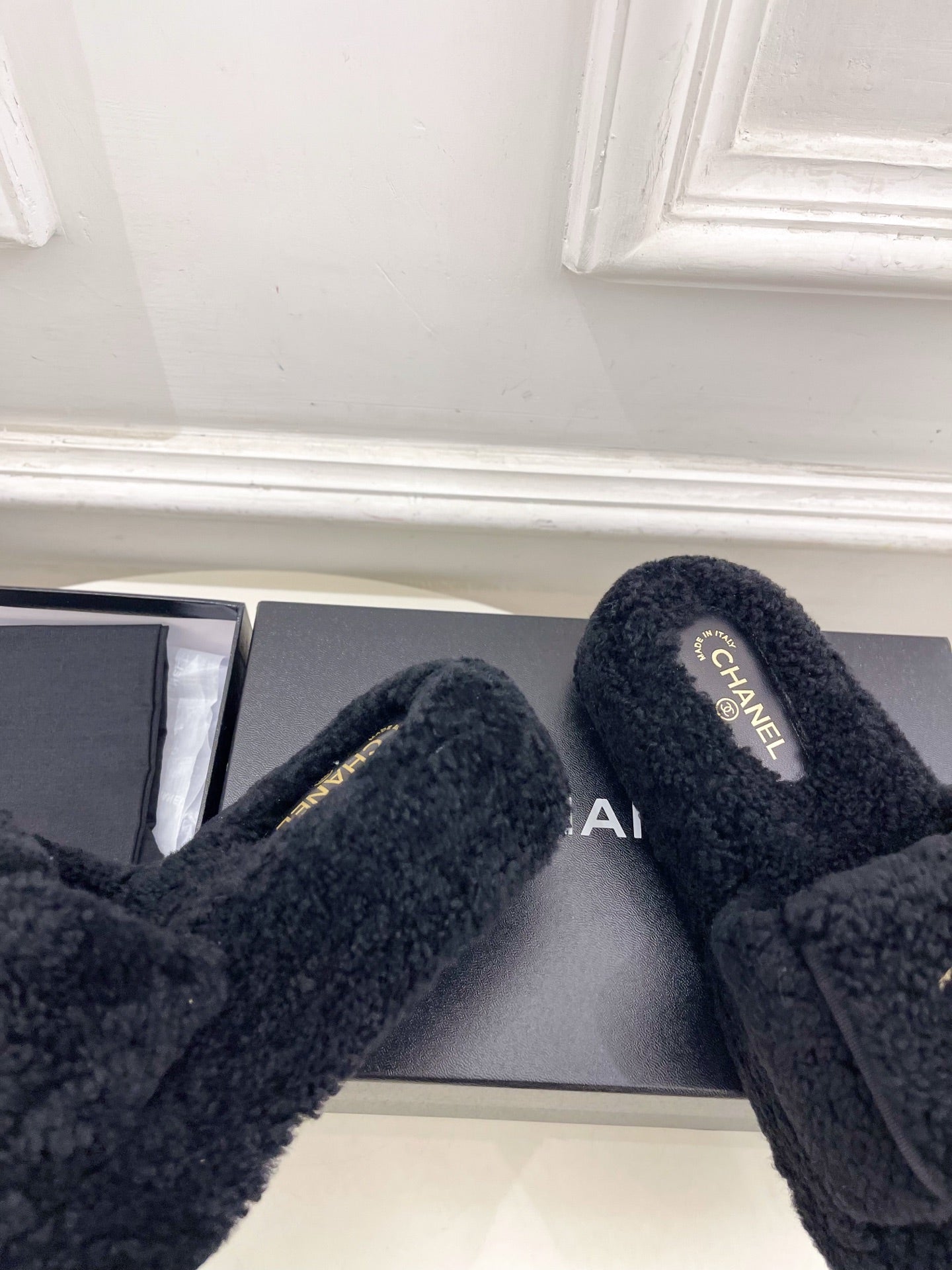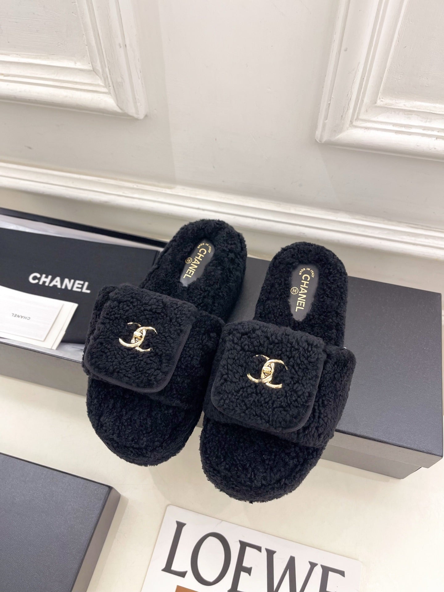 CC 25s Logo Slippers 50mm Black Wool GHW 435261