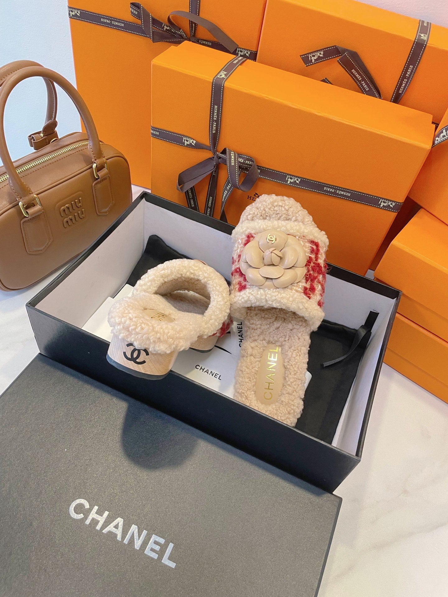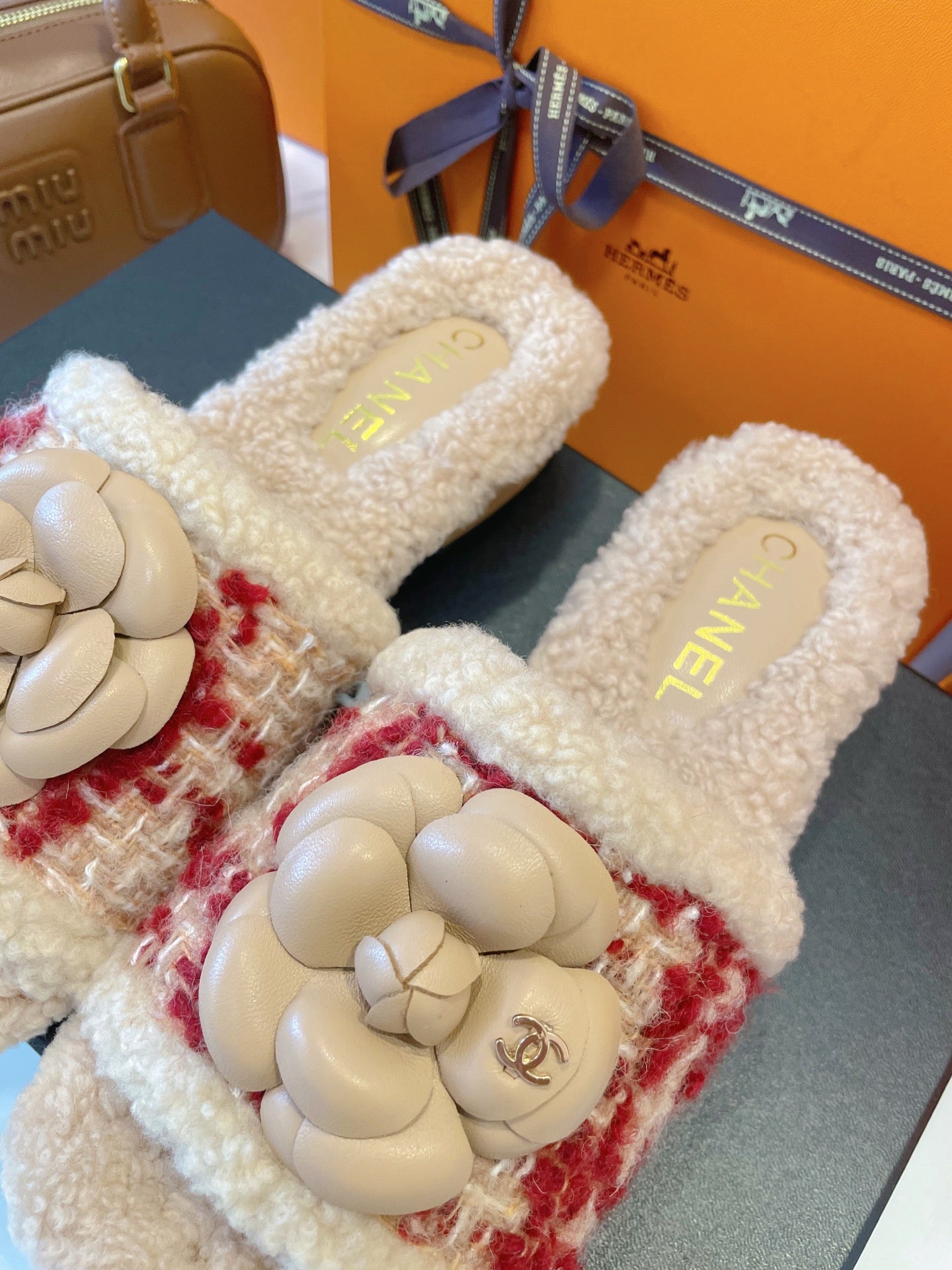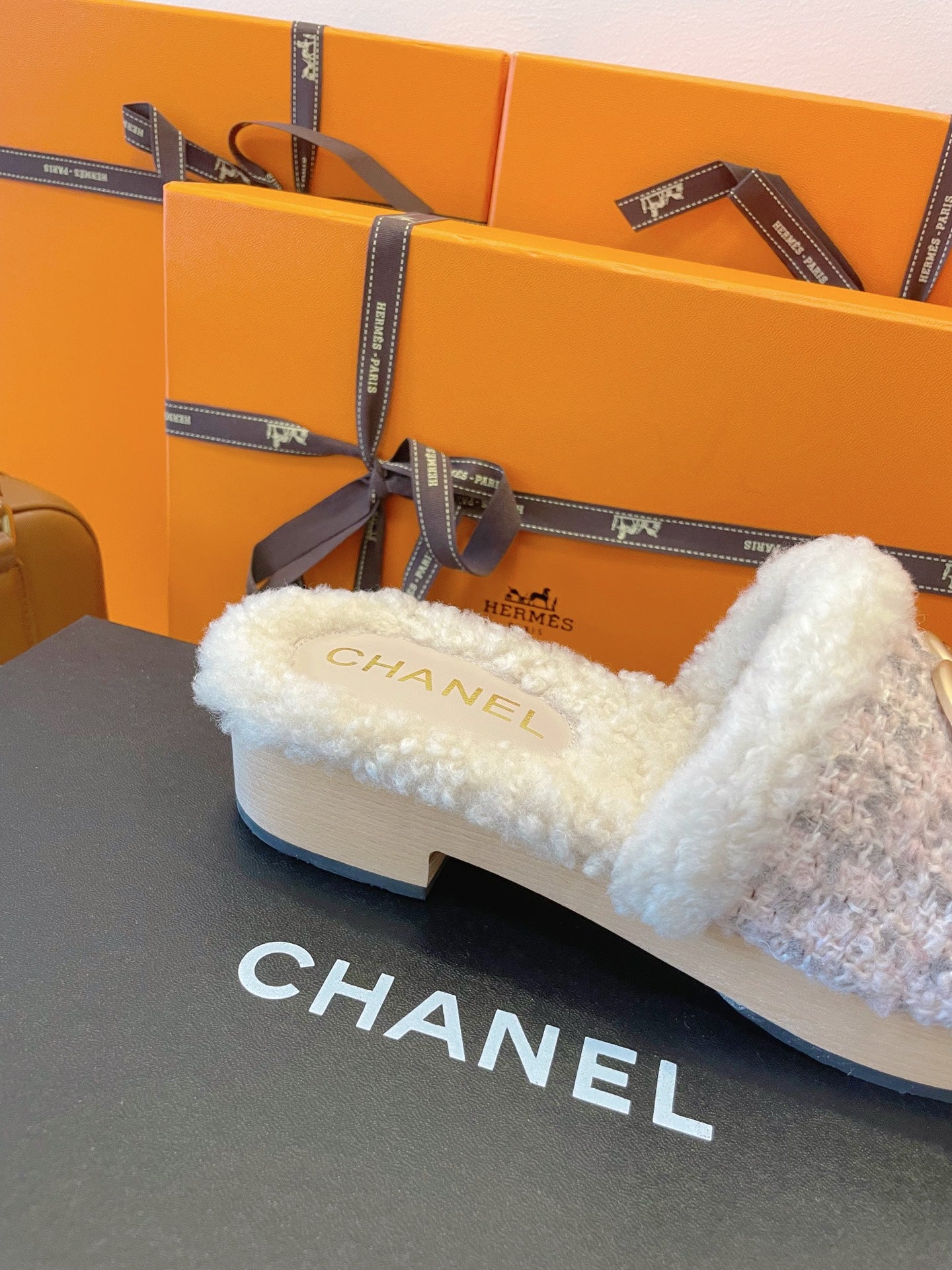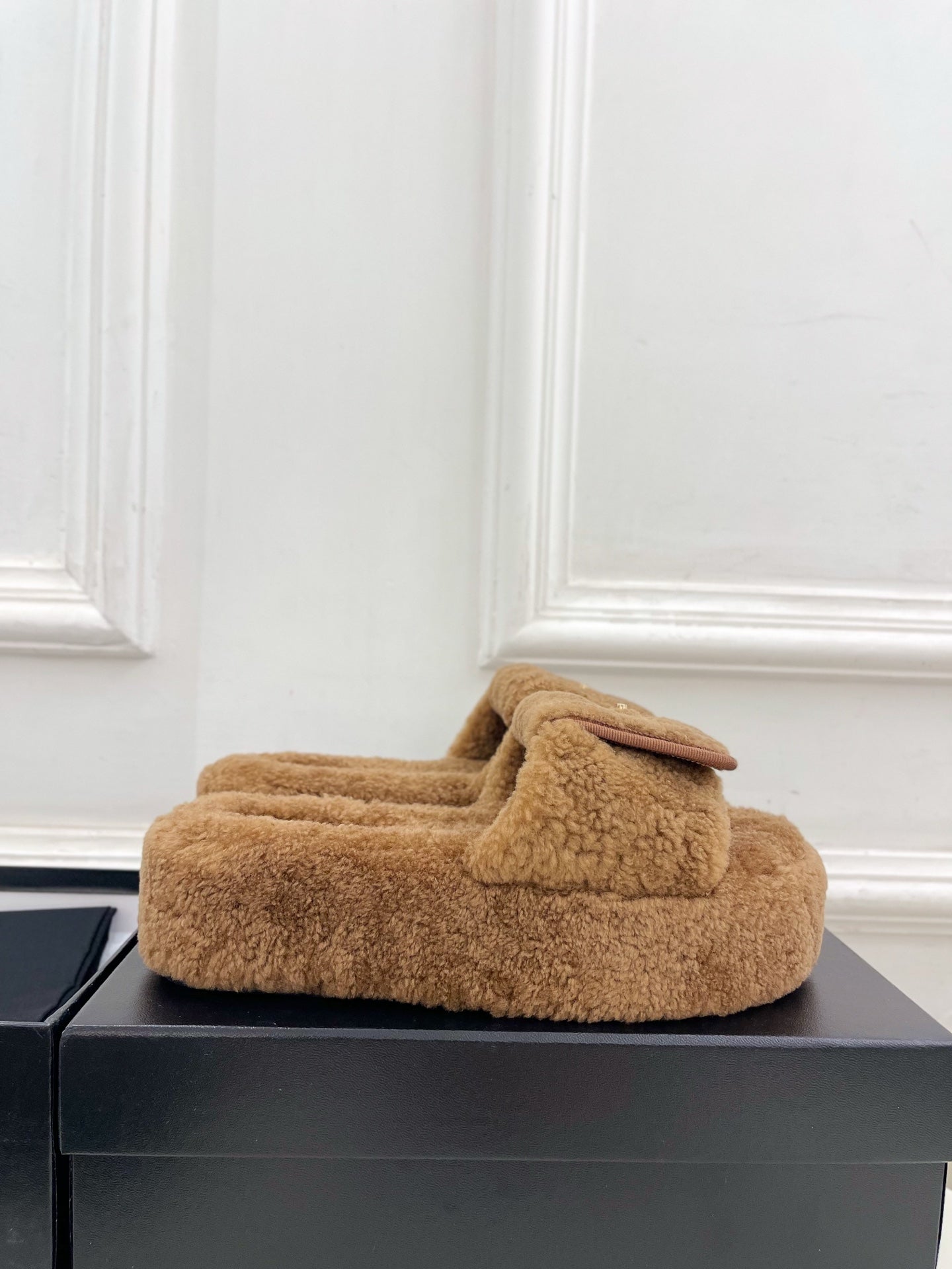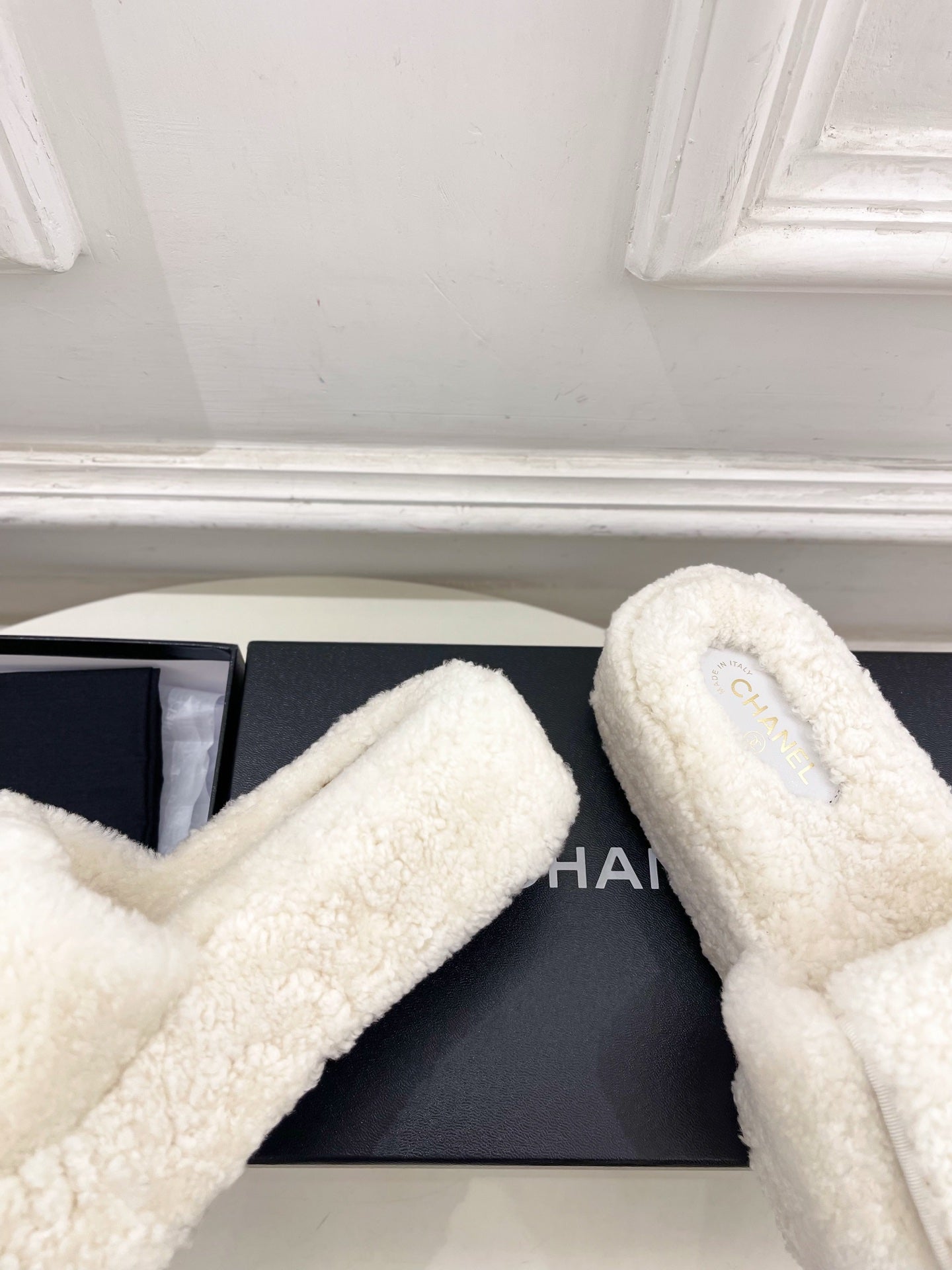 CC 25s Logo Slippers 50mm Black Wool GHW 435261
