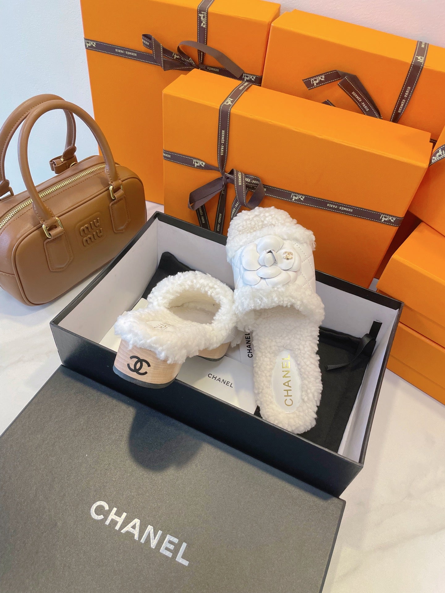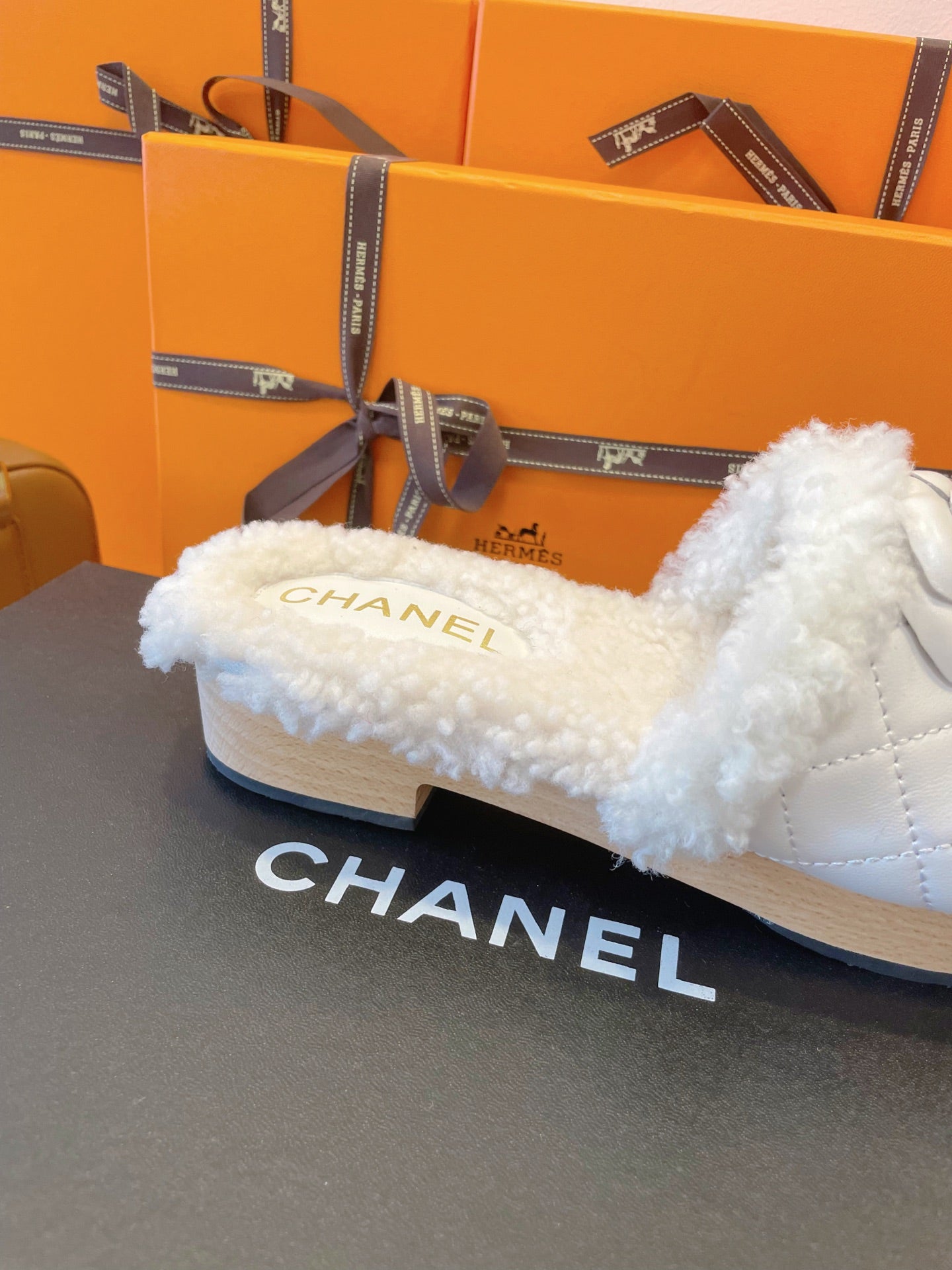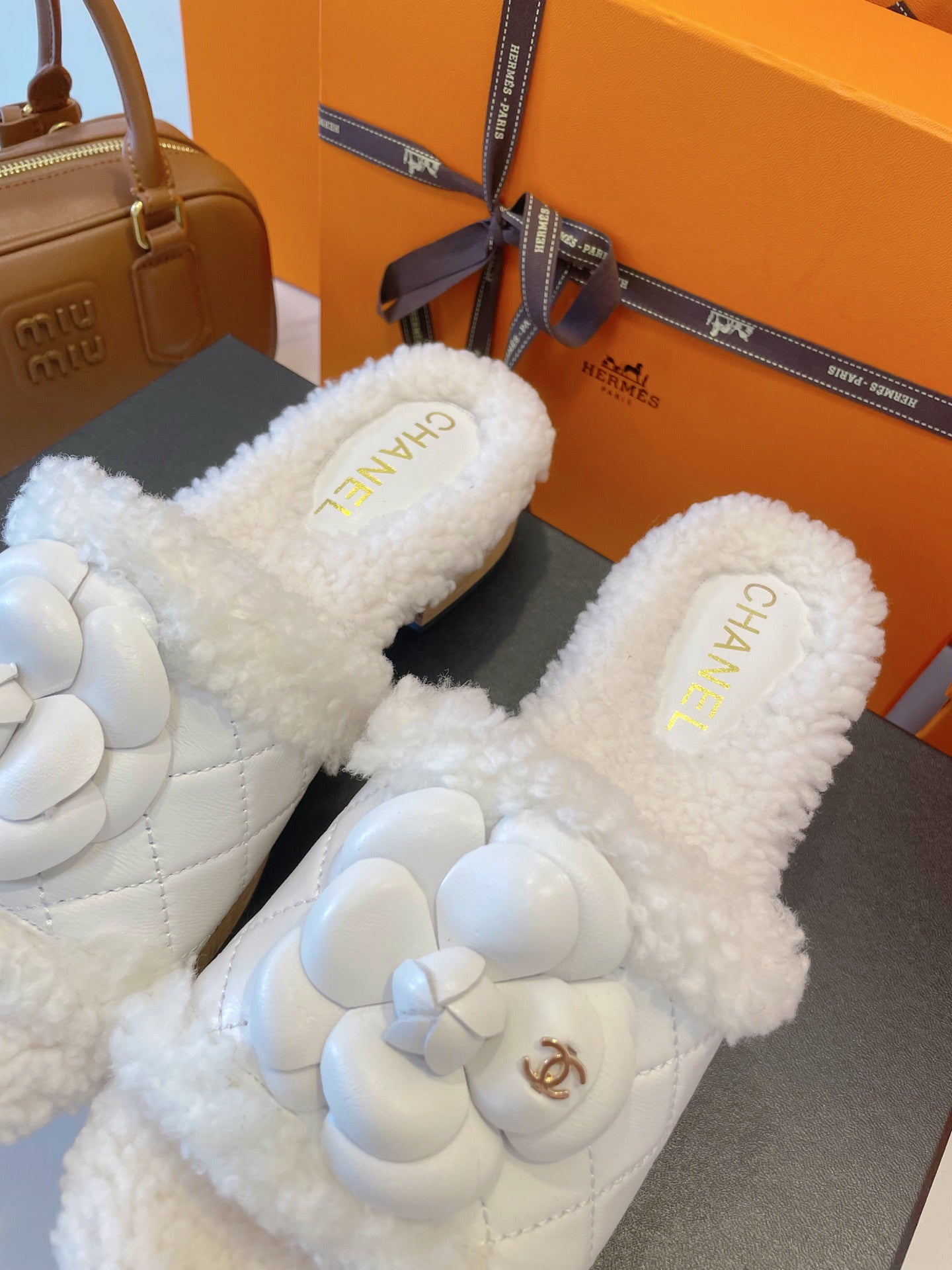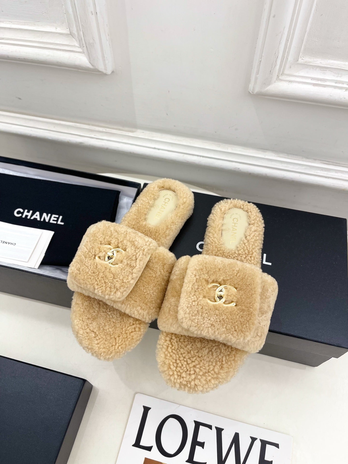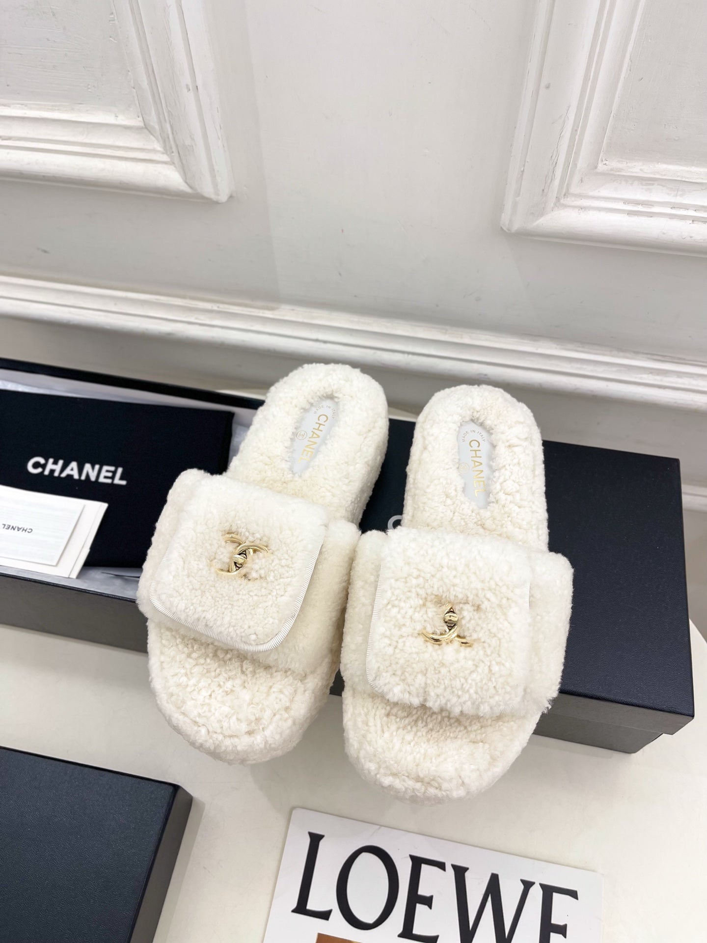 CC 25s Logo Slippers 50mm White Wool GHW 435262