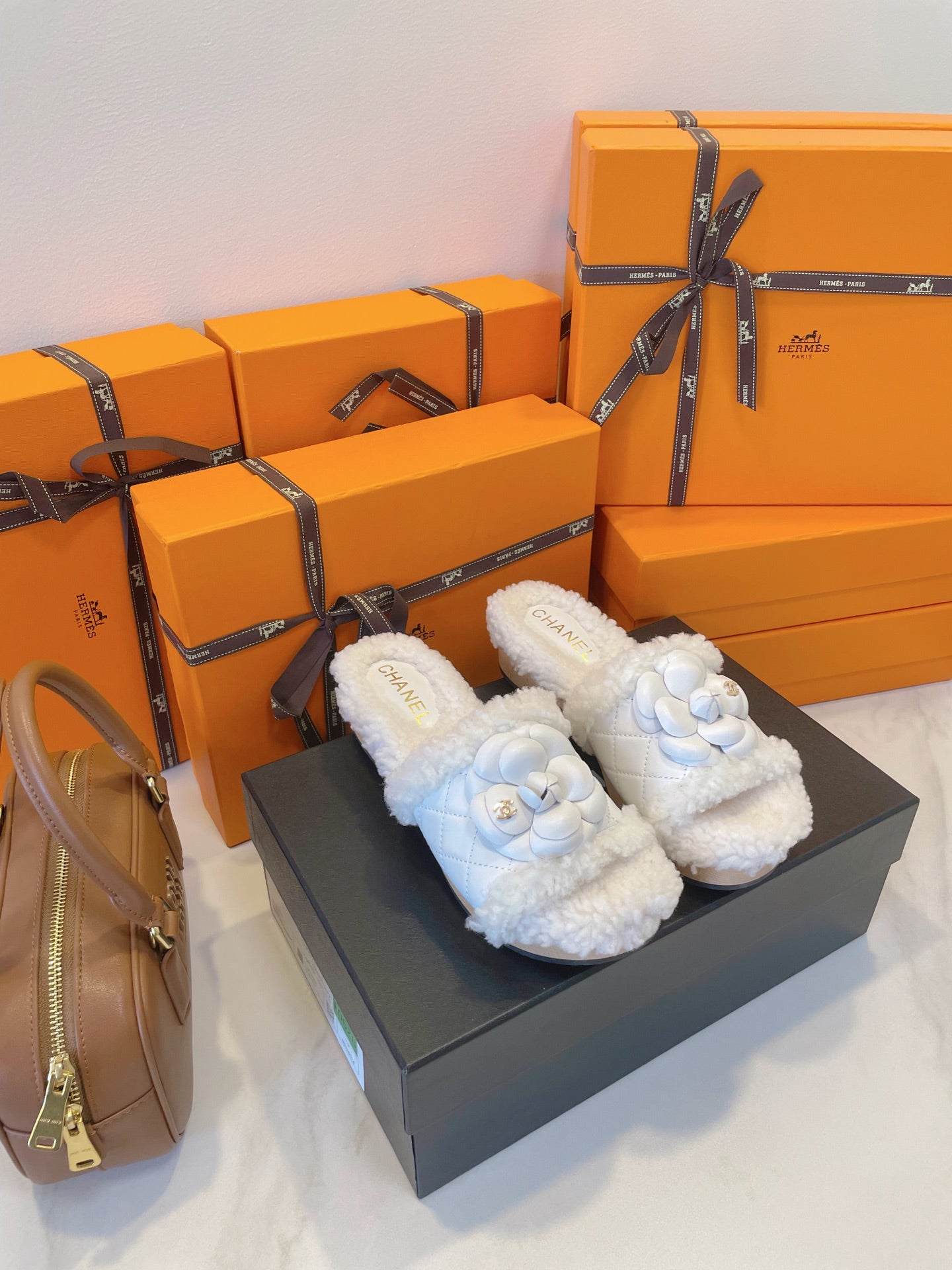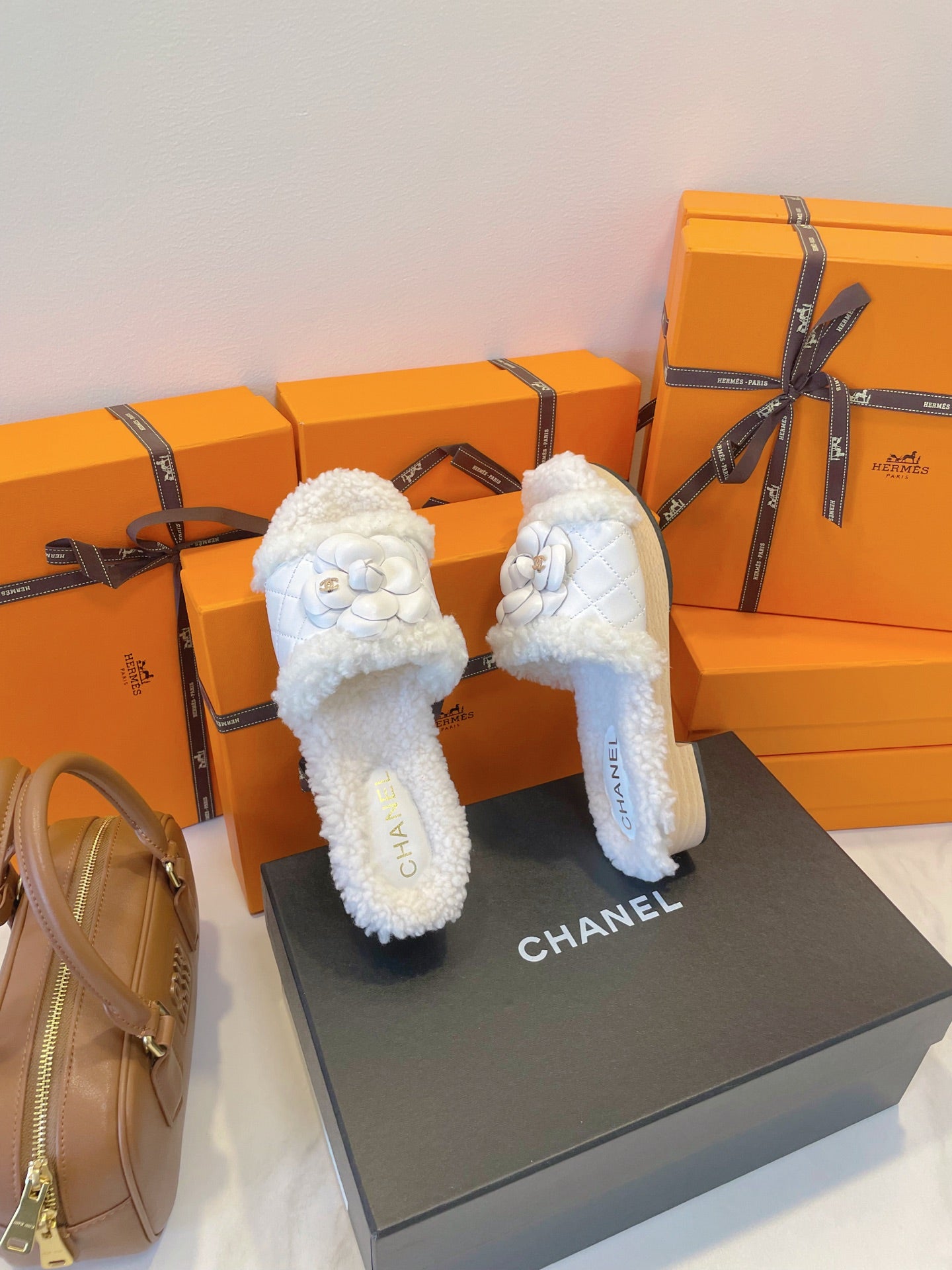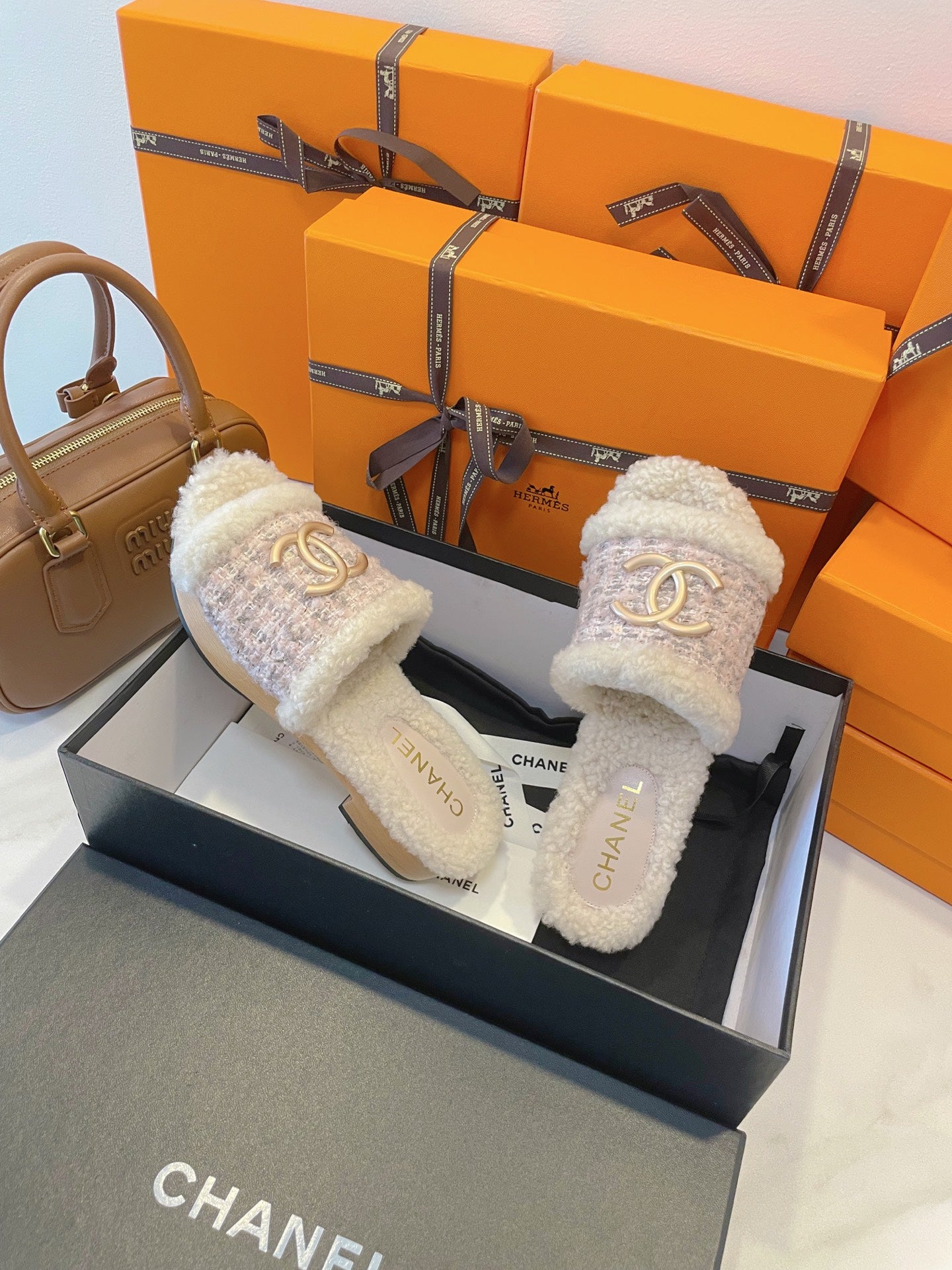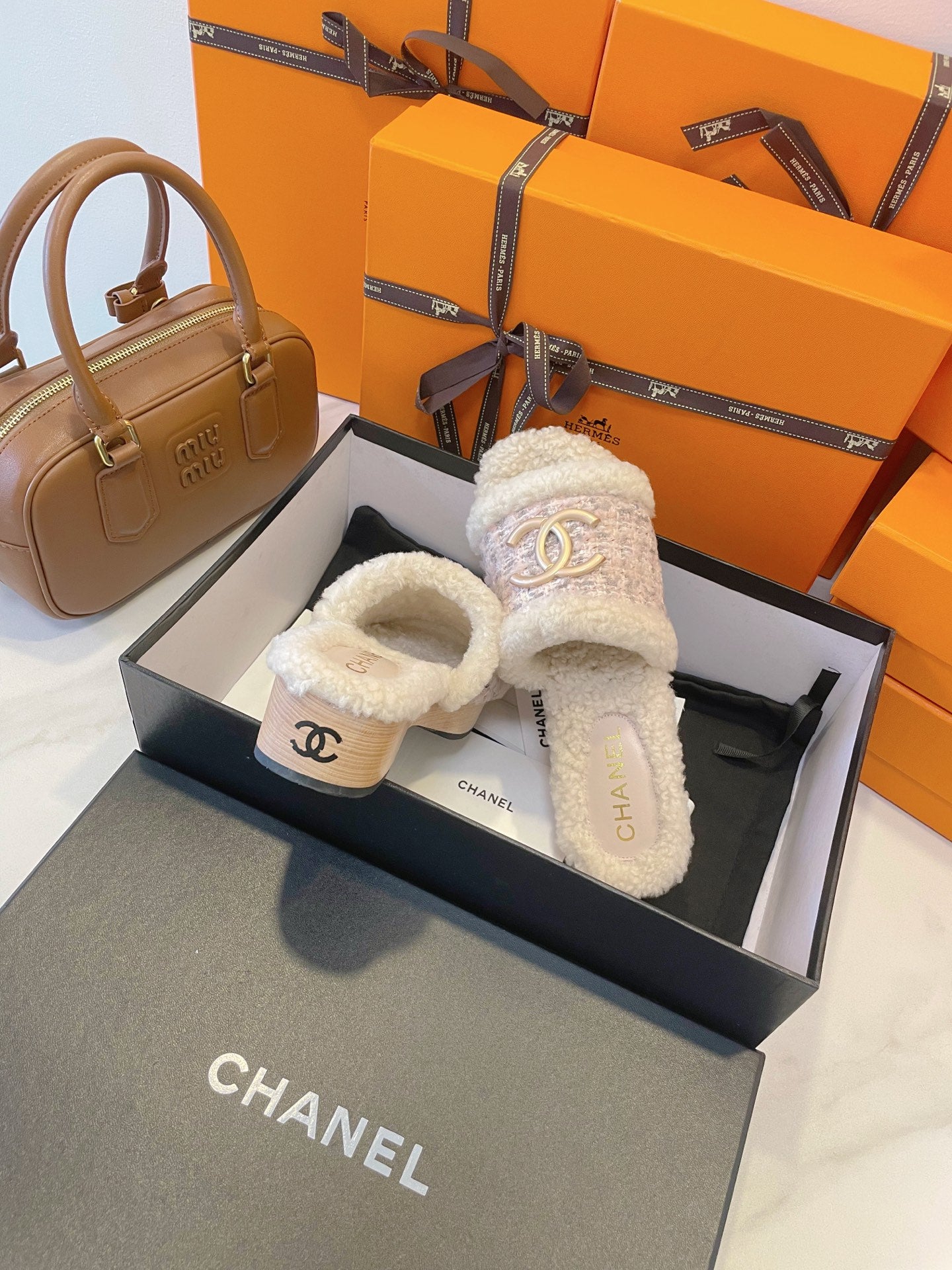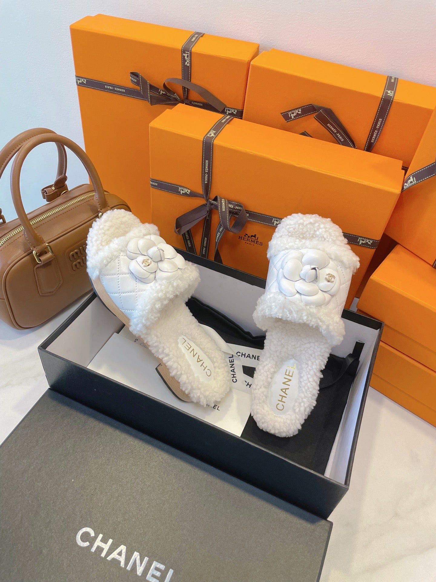 CC 25s Logo Slippers 50mm White Wool GHW 435262