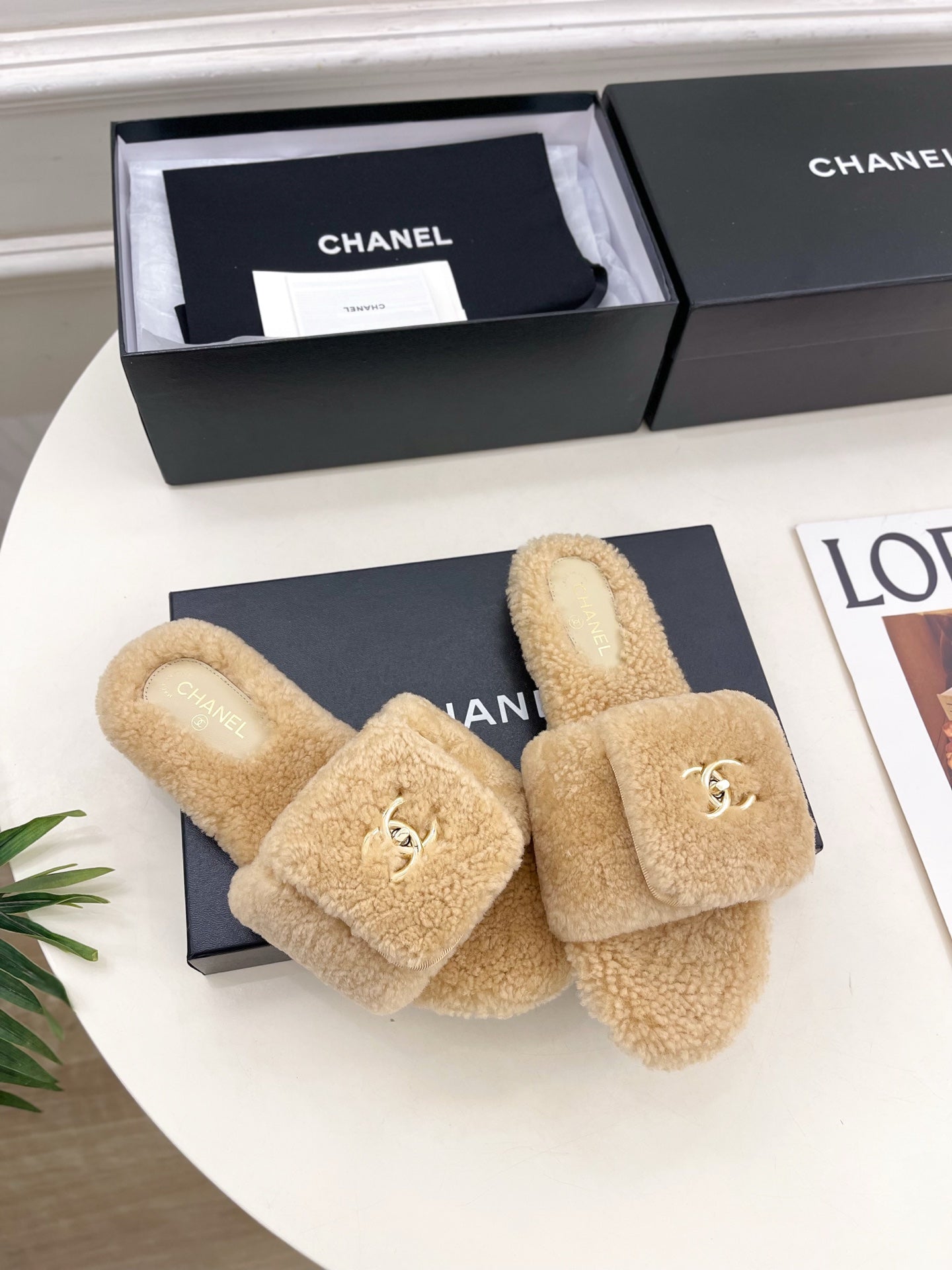 CC 25s Logo Slippers 50mm Beige Wool GHW 435264