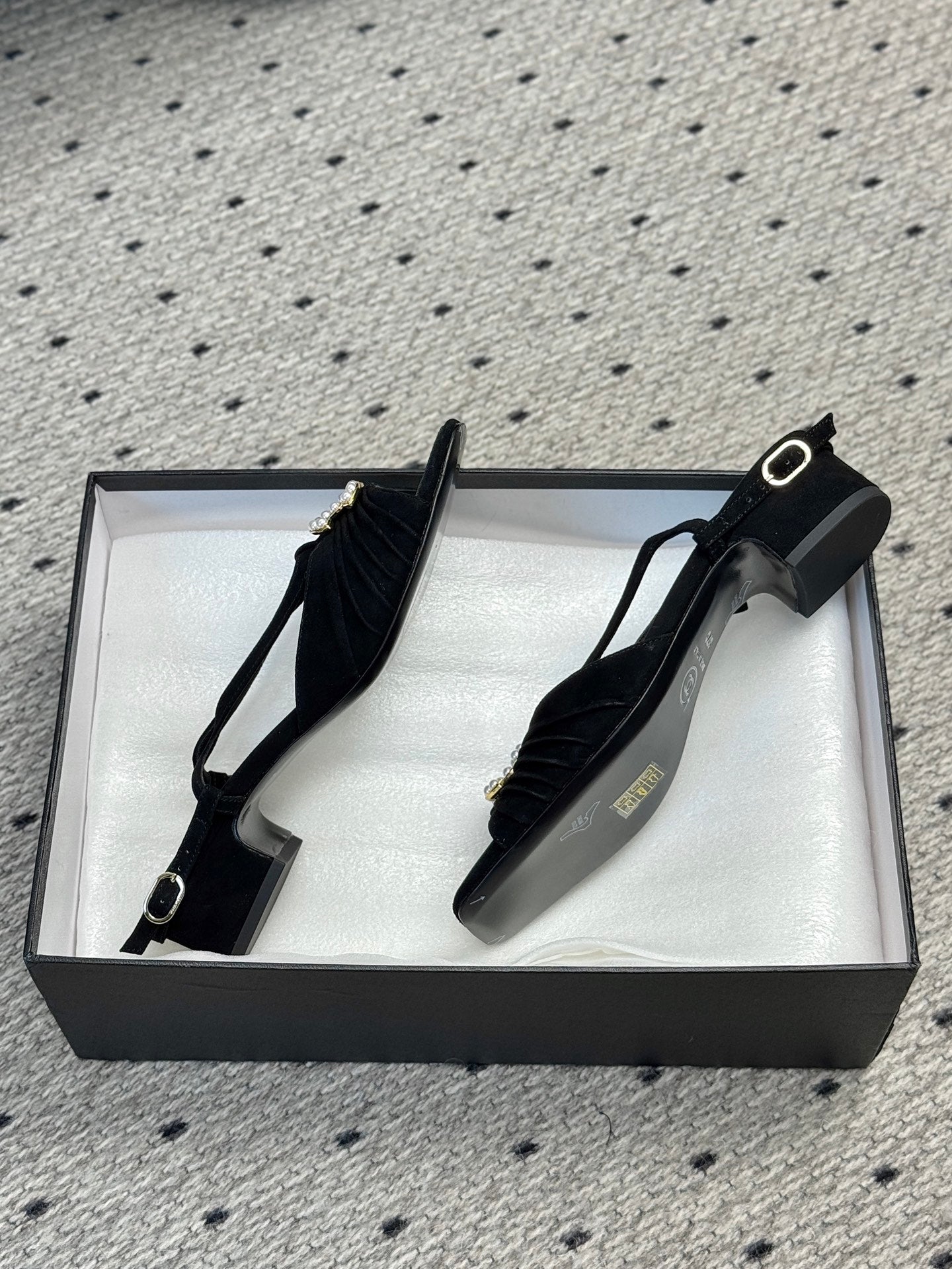 CC 25 Bow Attached Sandals Black Sheepskin 233421