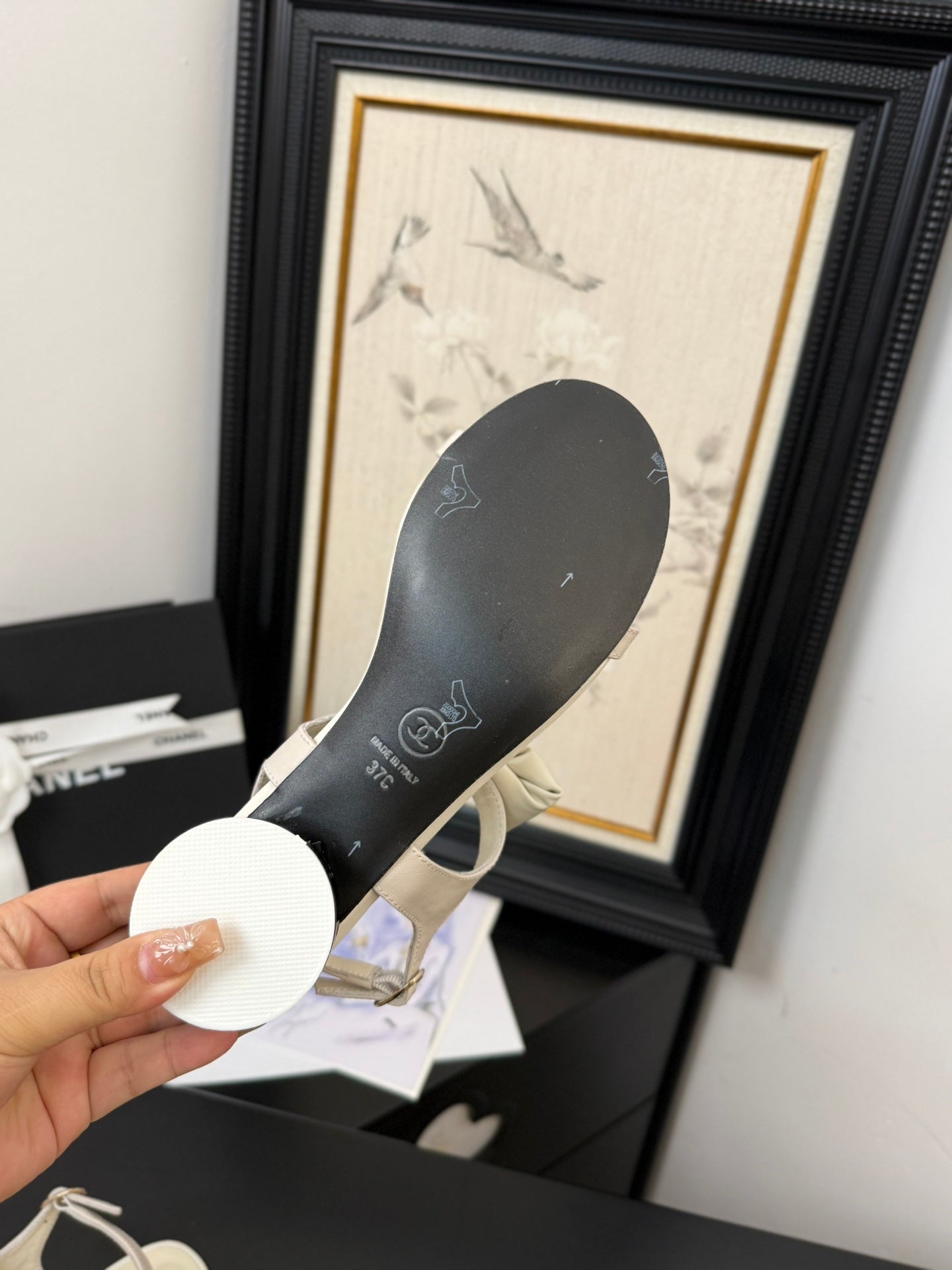 CC 25 Flower Thong Slippers Beige Cowhide 233417