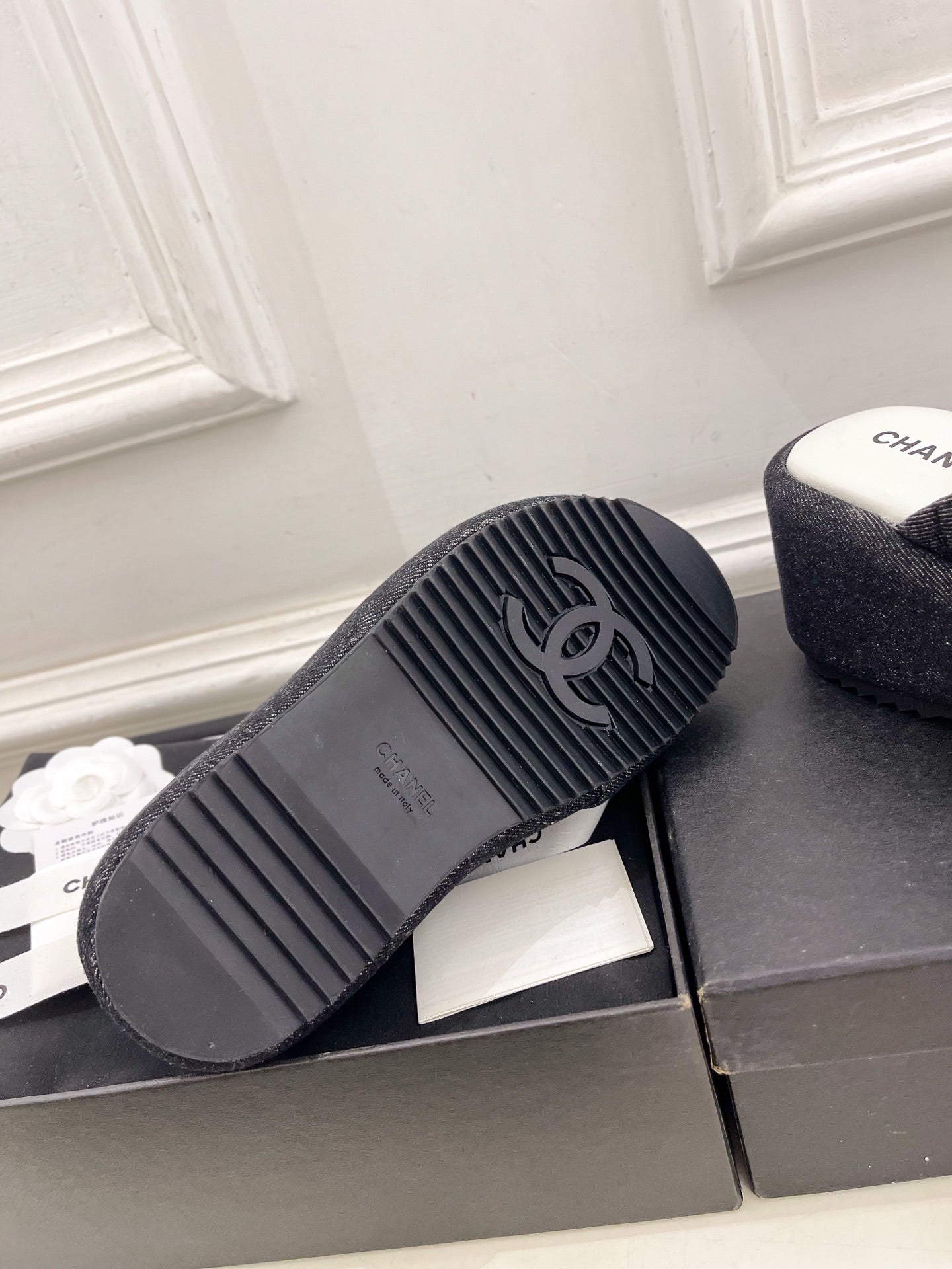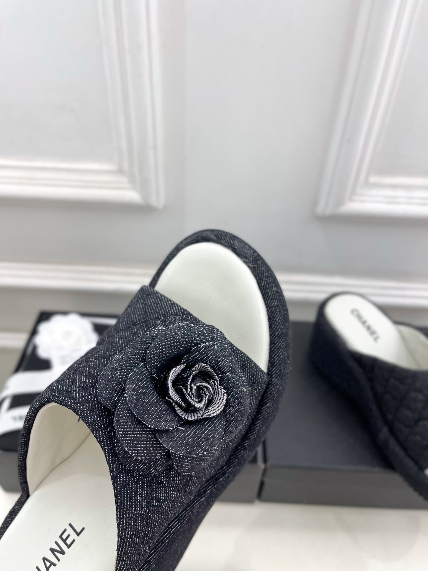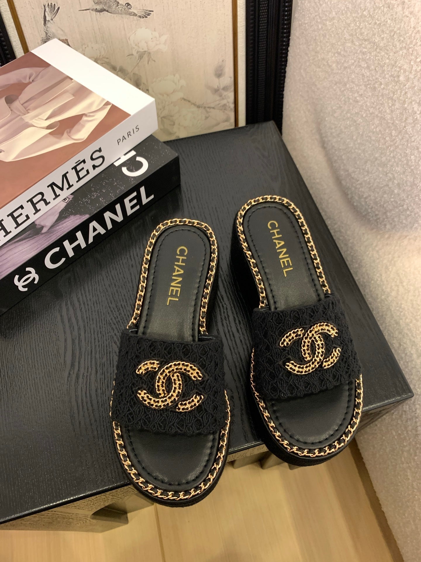 CC 25 Platform Slippers Black Lambskin 310383
