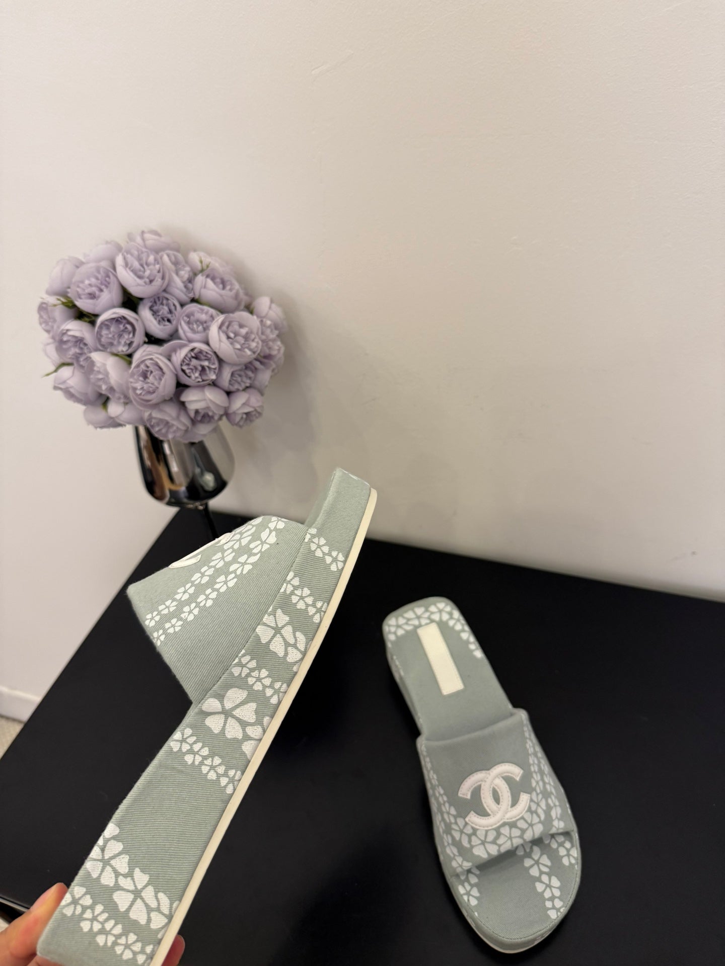 CC 25 Platform Slippers Blue Lambskin 310384