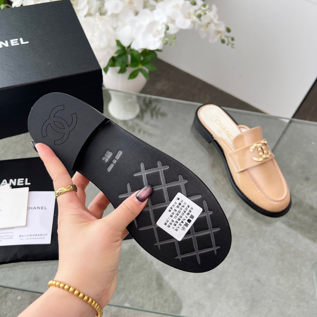 CC 25 Mule Beige Patent Calfskin Gold Double C