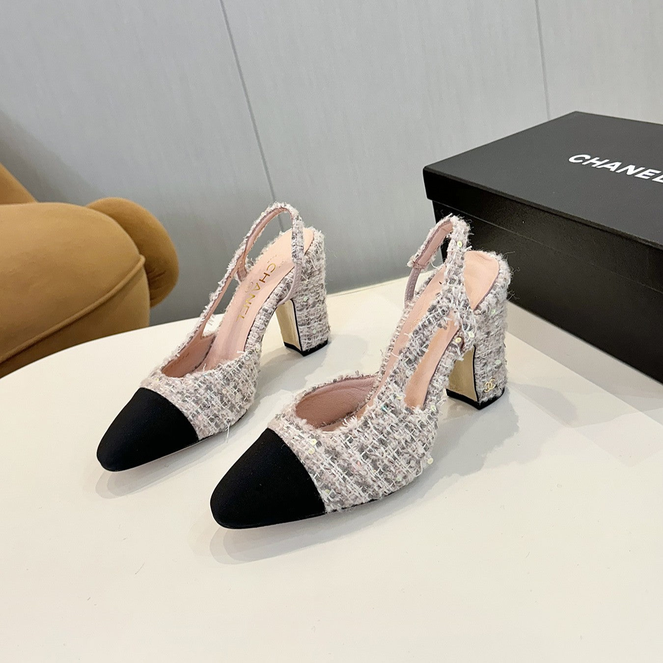 cc 25c slingback 90 pink white tweed black grosgrain 233619