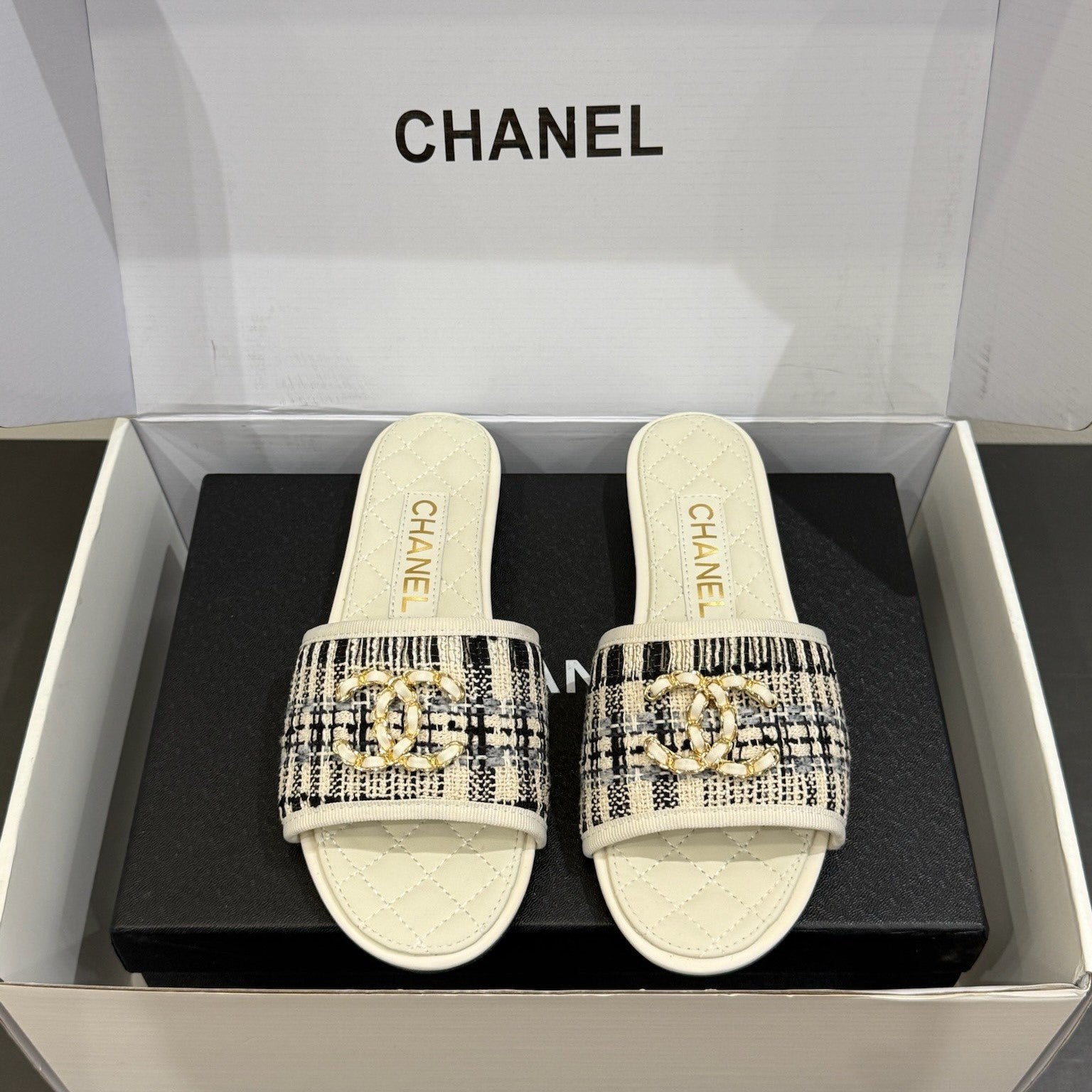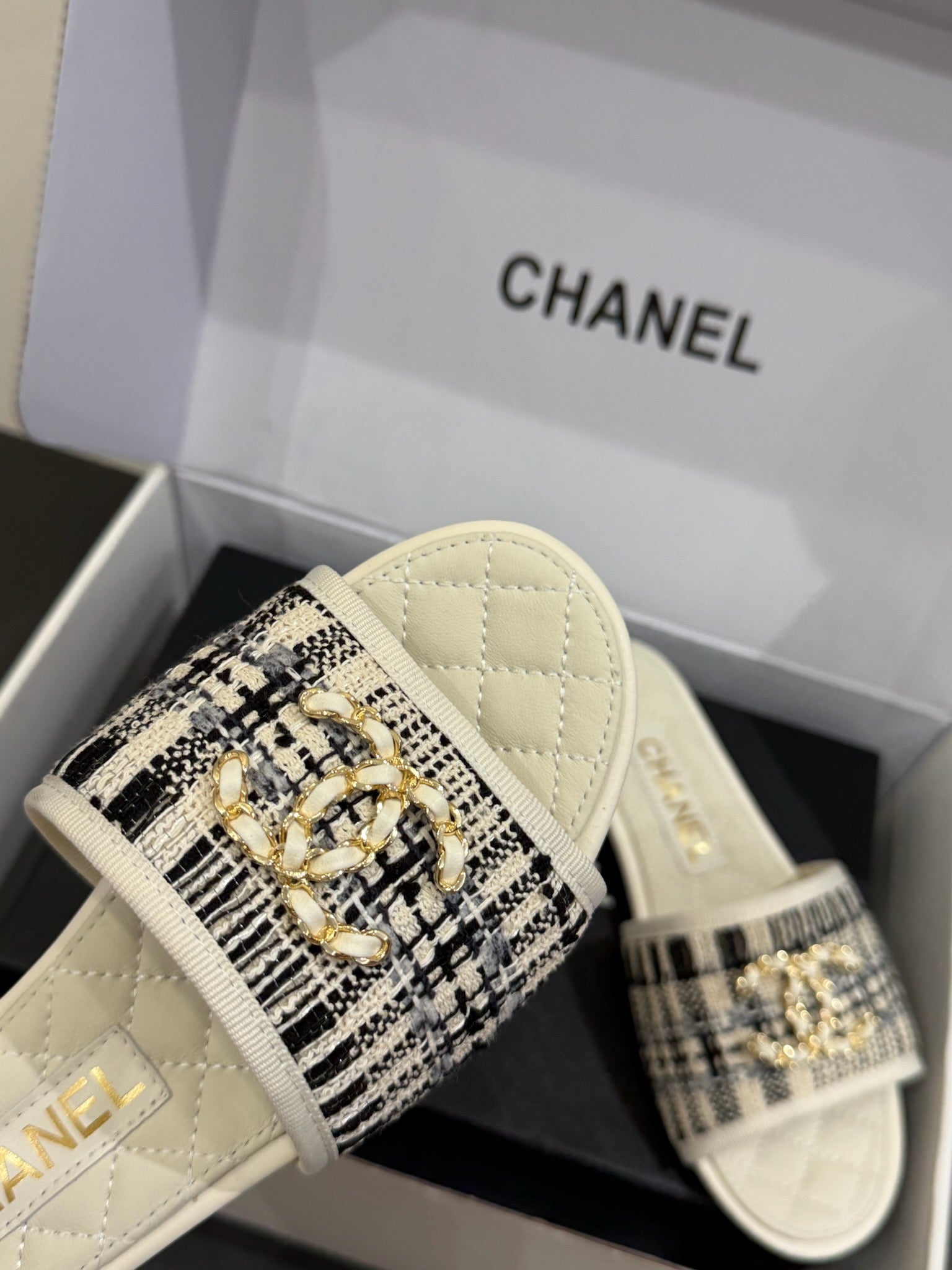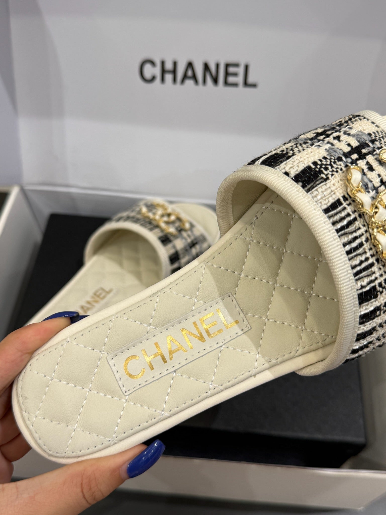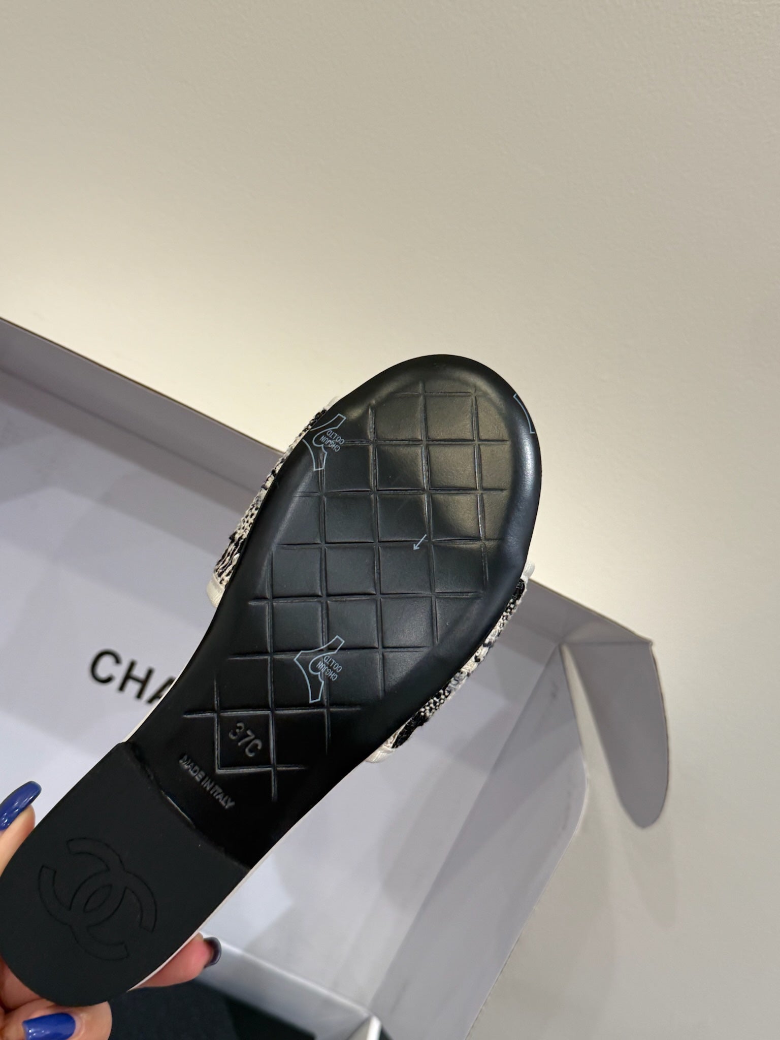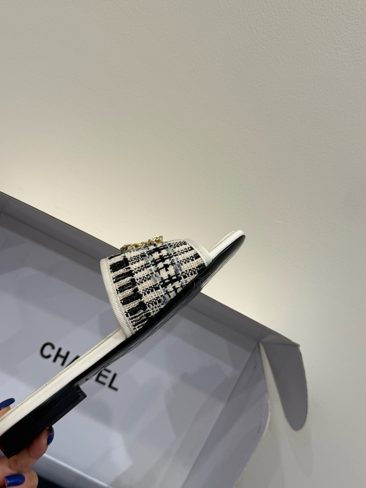 CC 25ss Chain Flat Slippers Black WhiteCowhide & Sheepskin 417563