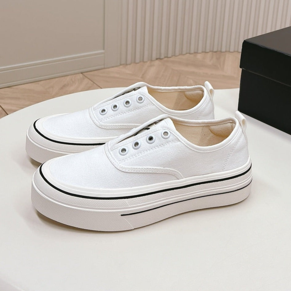 Double C Platform Biscuit Shoes Fabric White