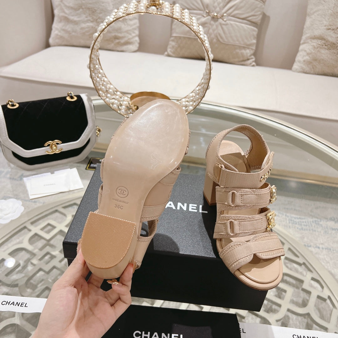 cc slingback sandal tripe strap 60 beige canvas calfskin