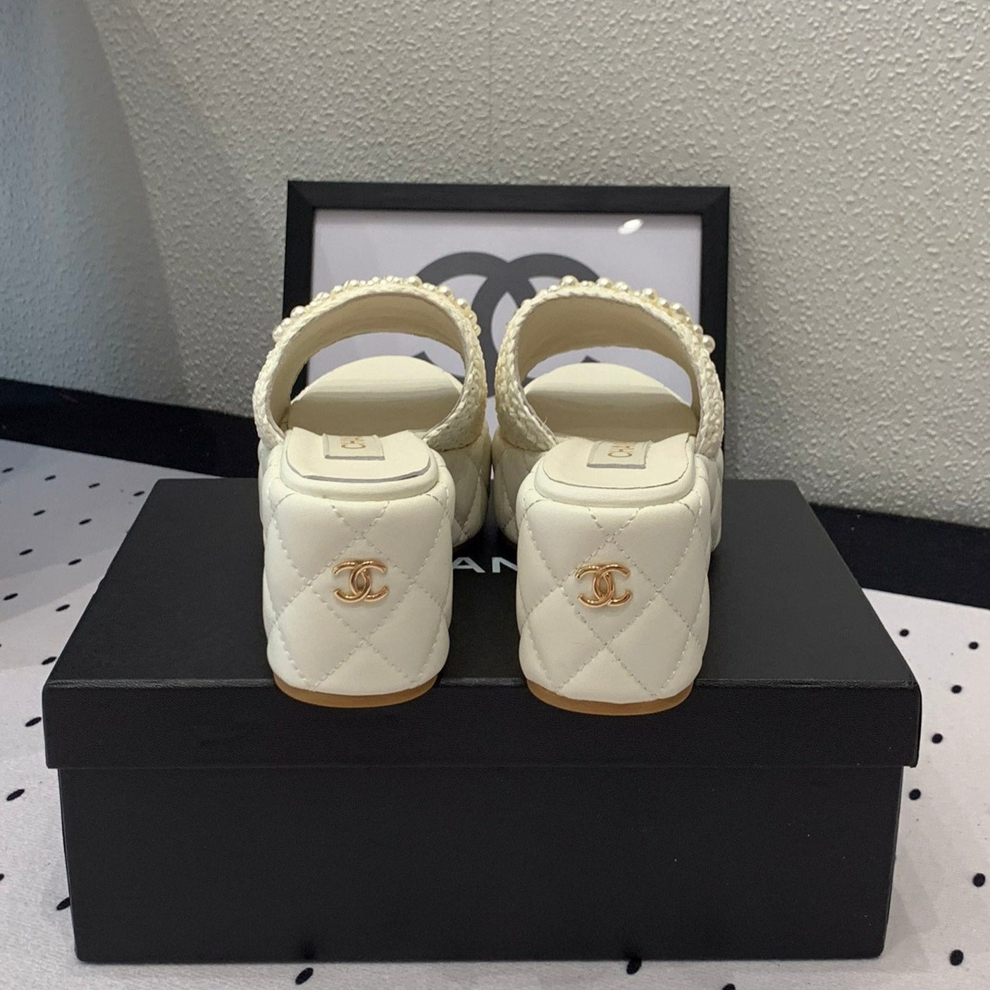 cc pearl platform sandals white lambkin