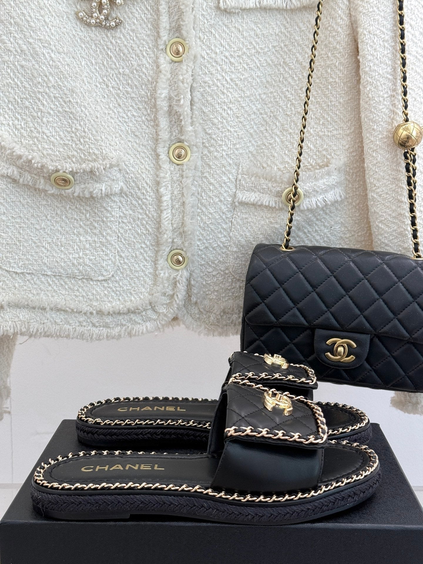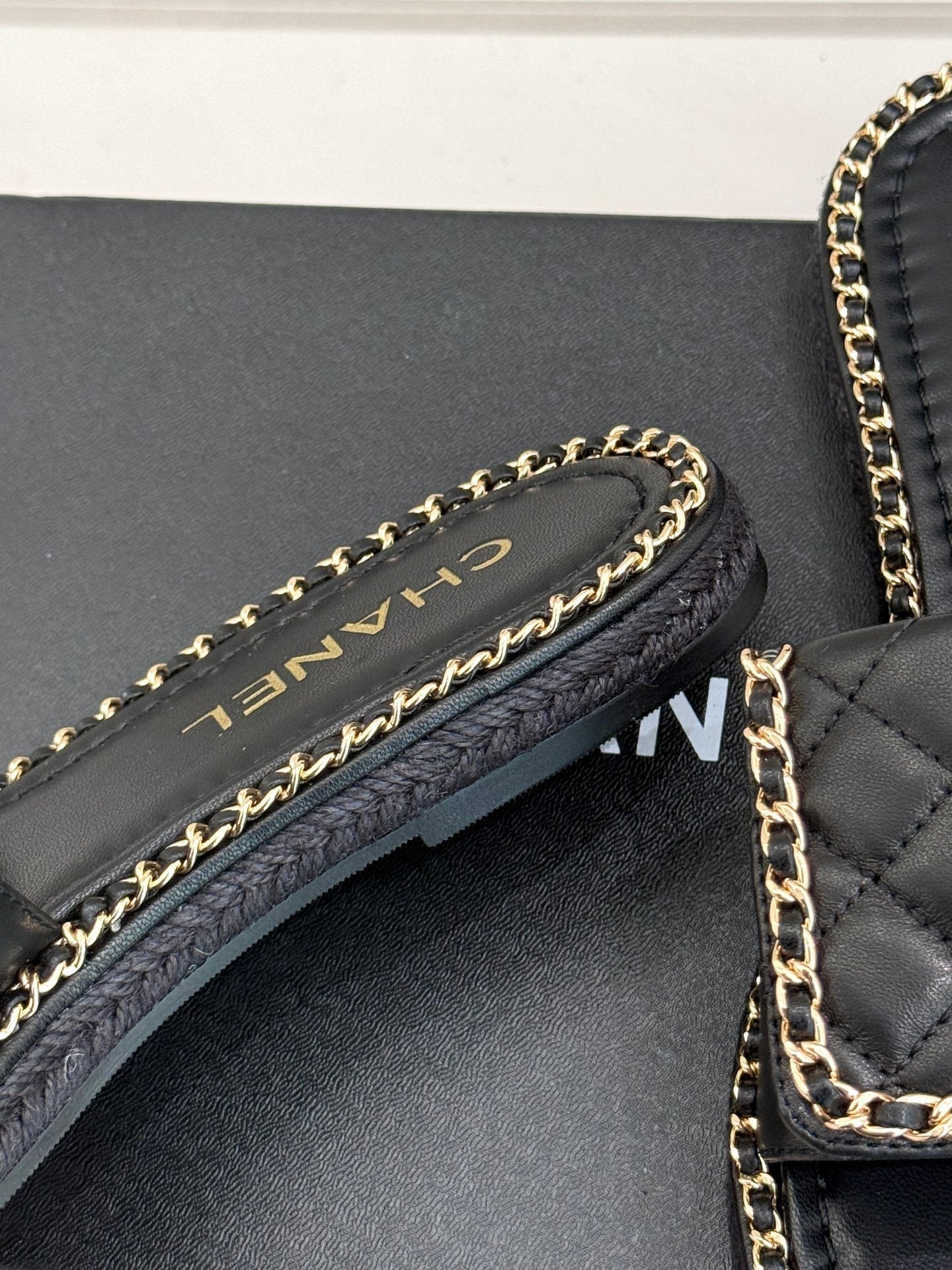 FLAT CHAIN HEART SLIPPER IN BLACK LAMBSKIN