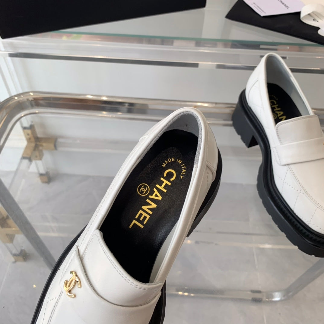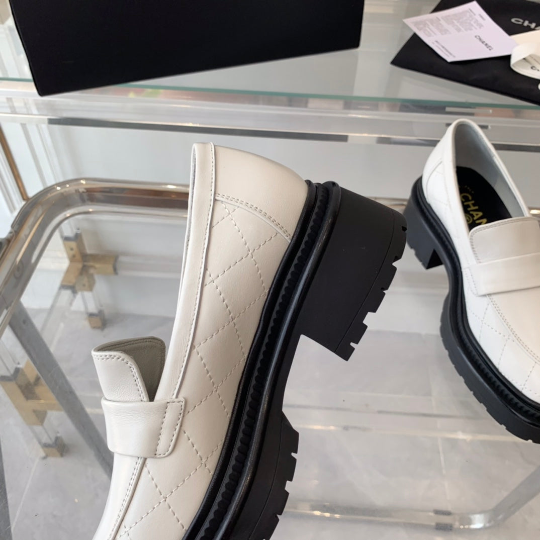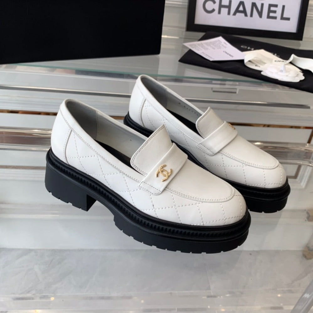 moccasins white black quilted calfskin