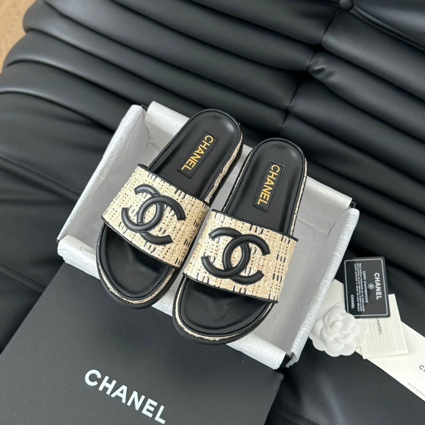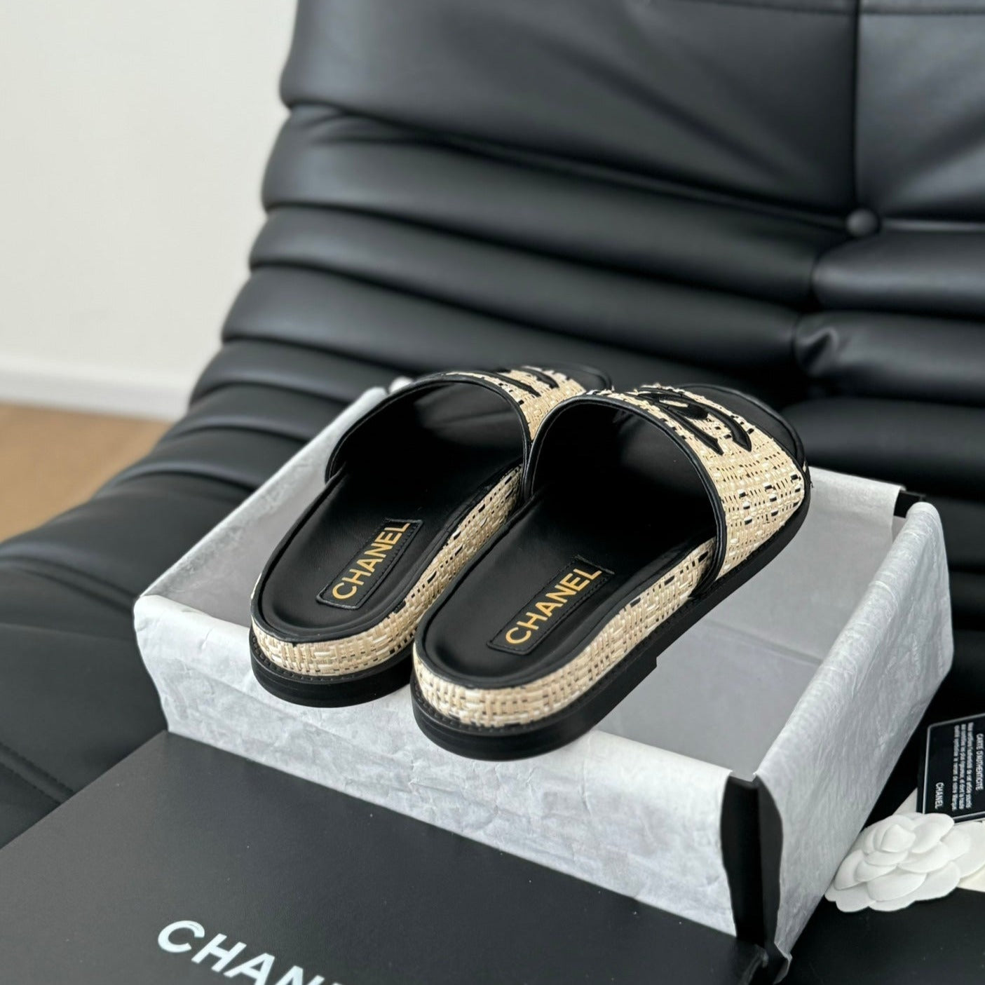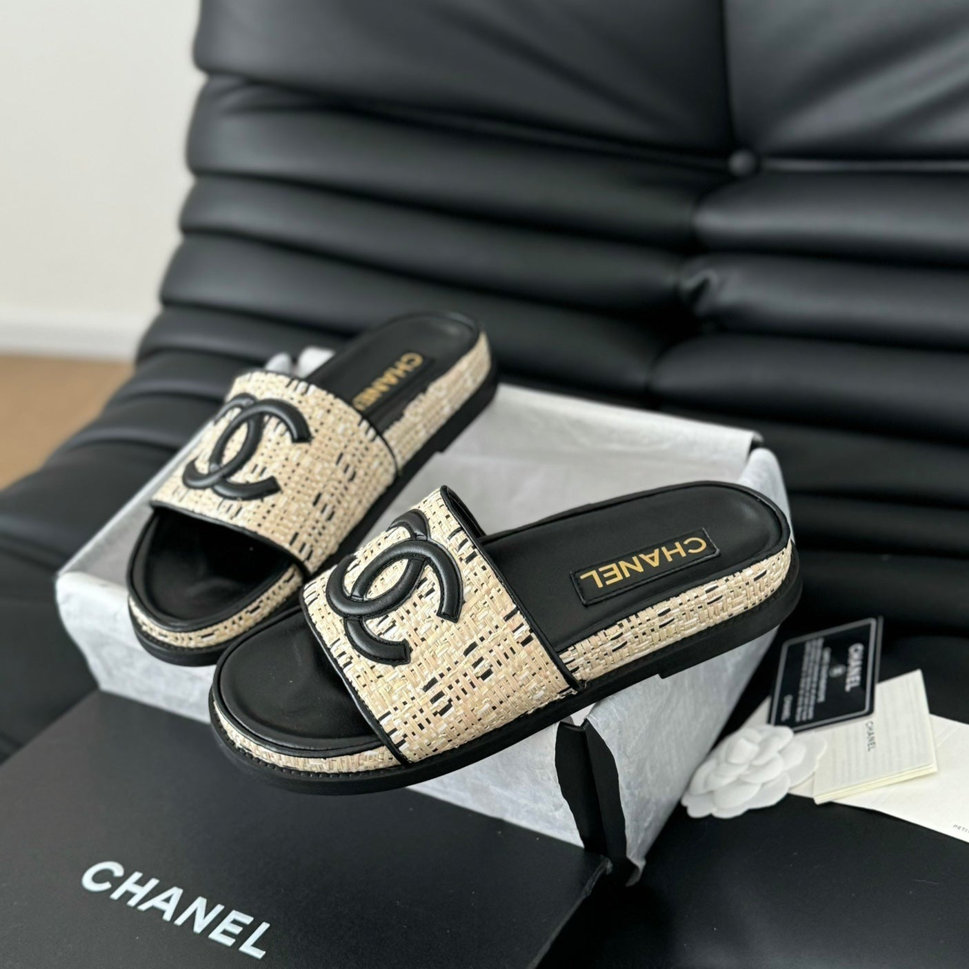 Slippers Sheepskin Beige Black