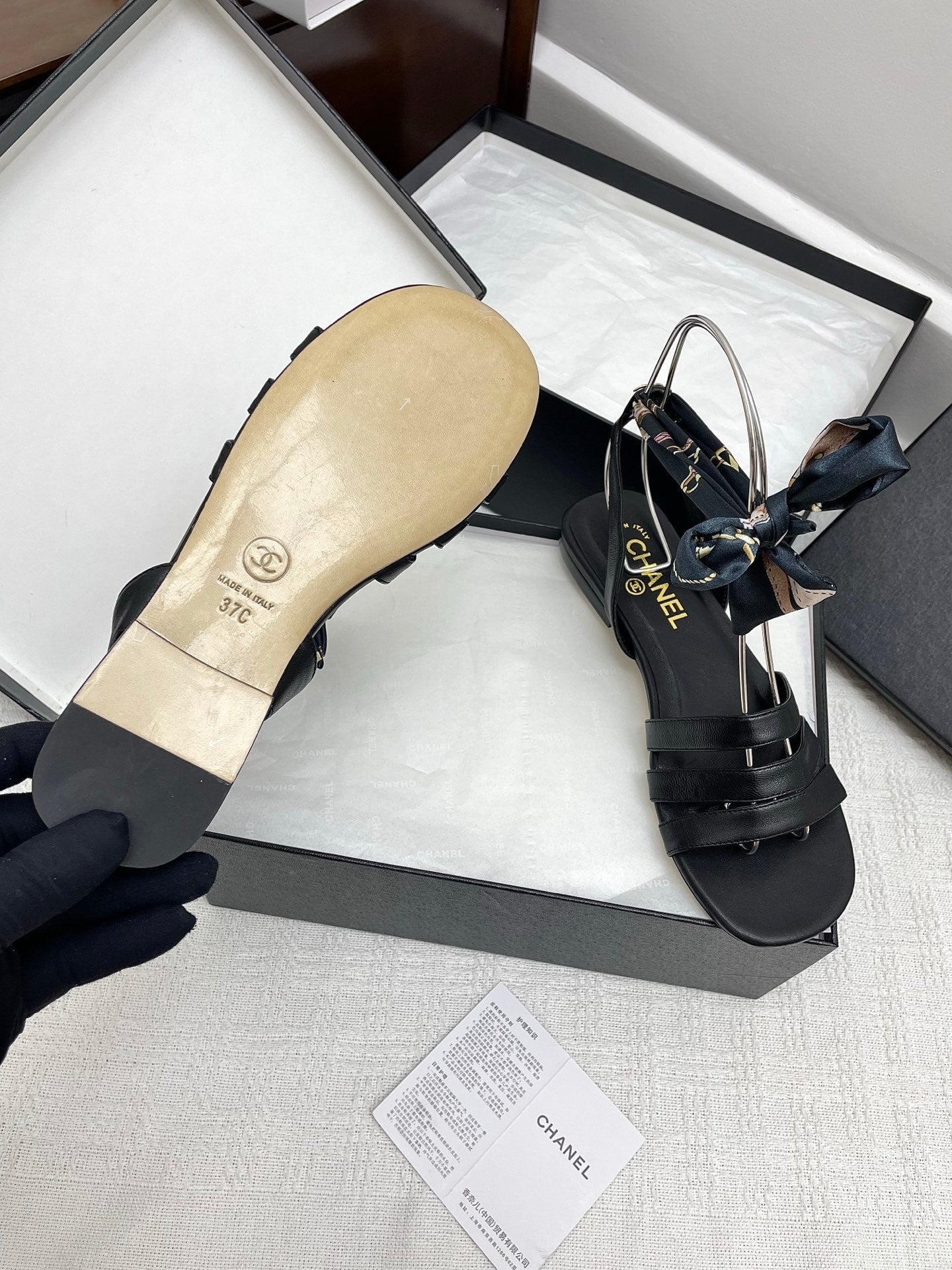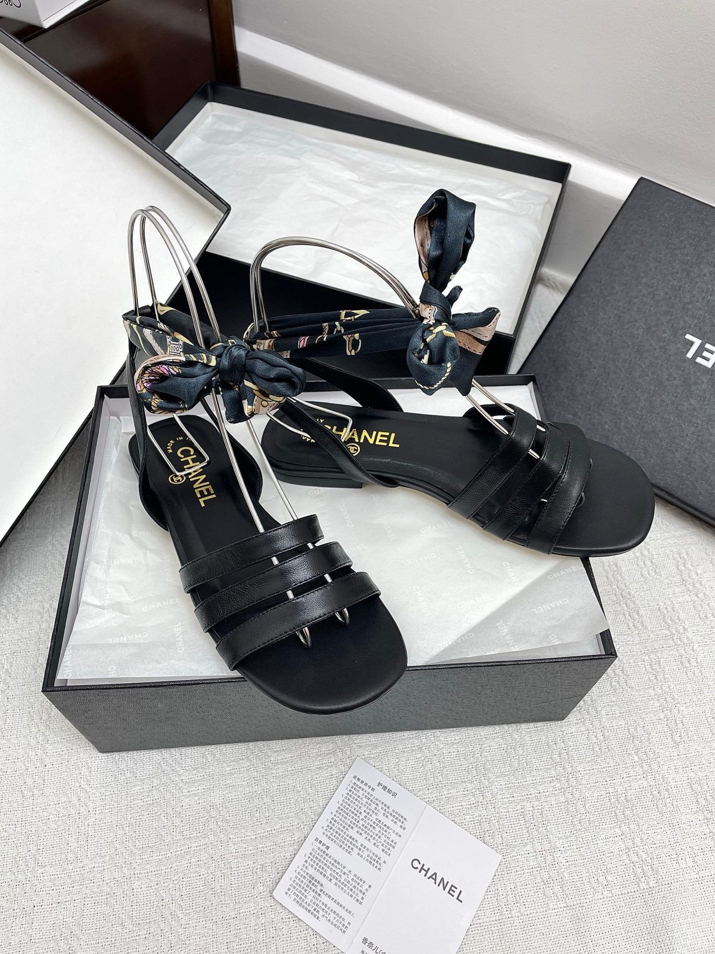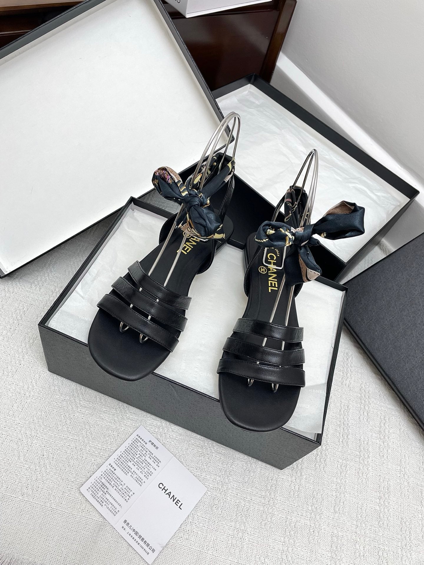 CC 25SS Sandals Three Straps Black Calfskin 338325