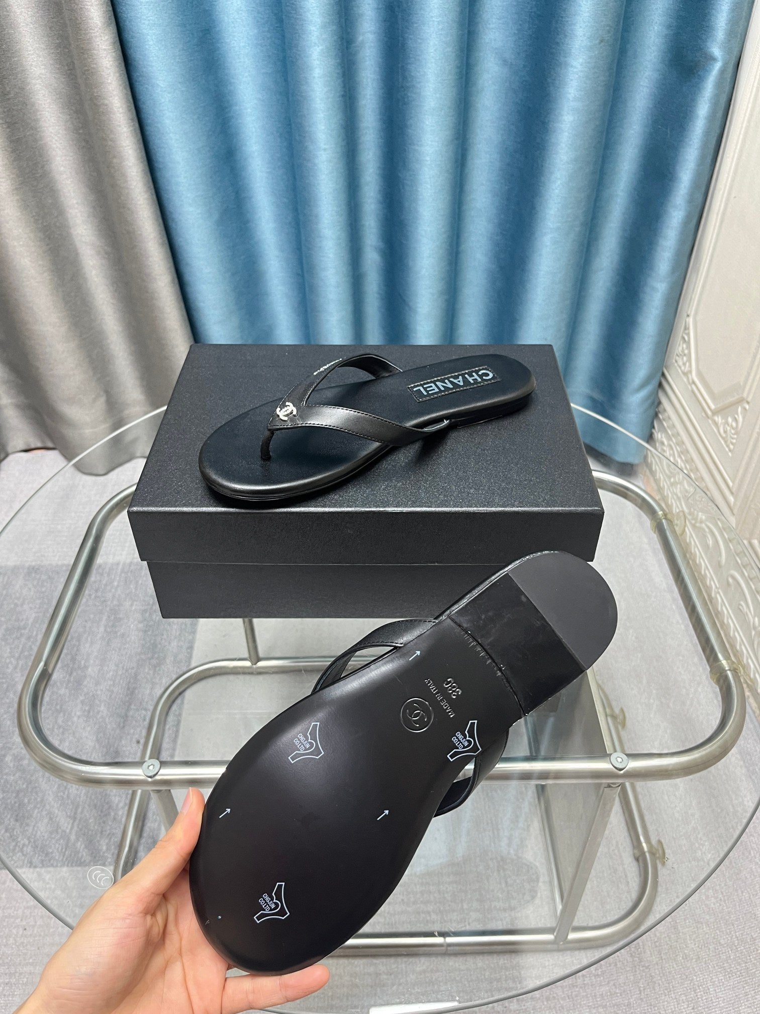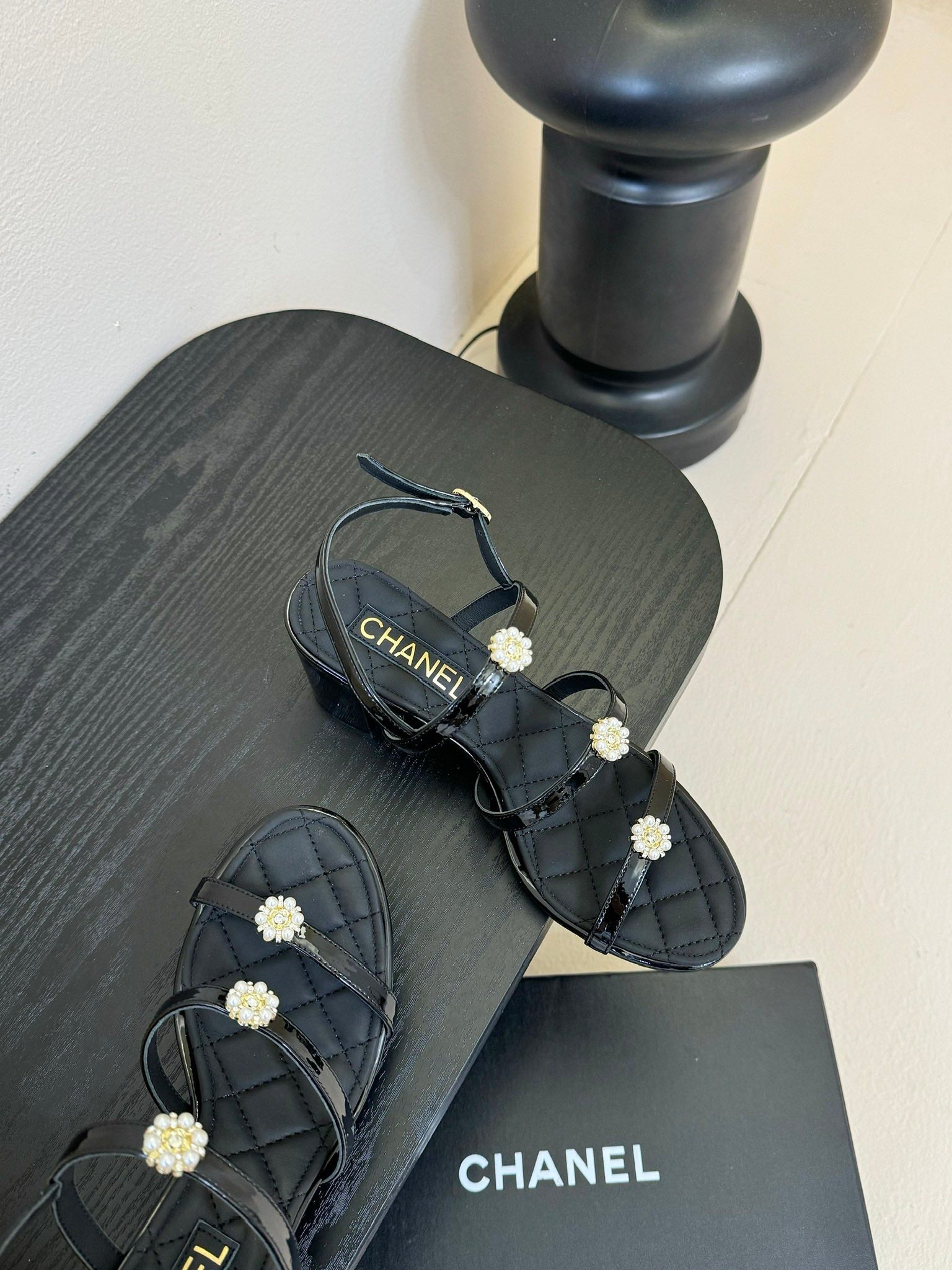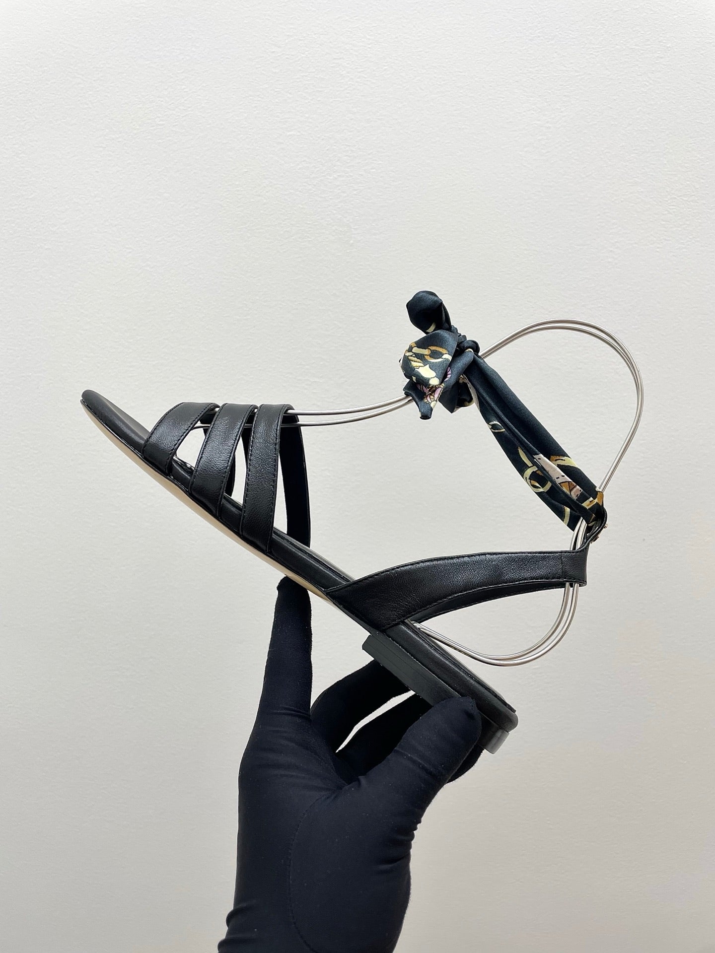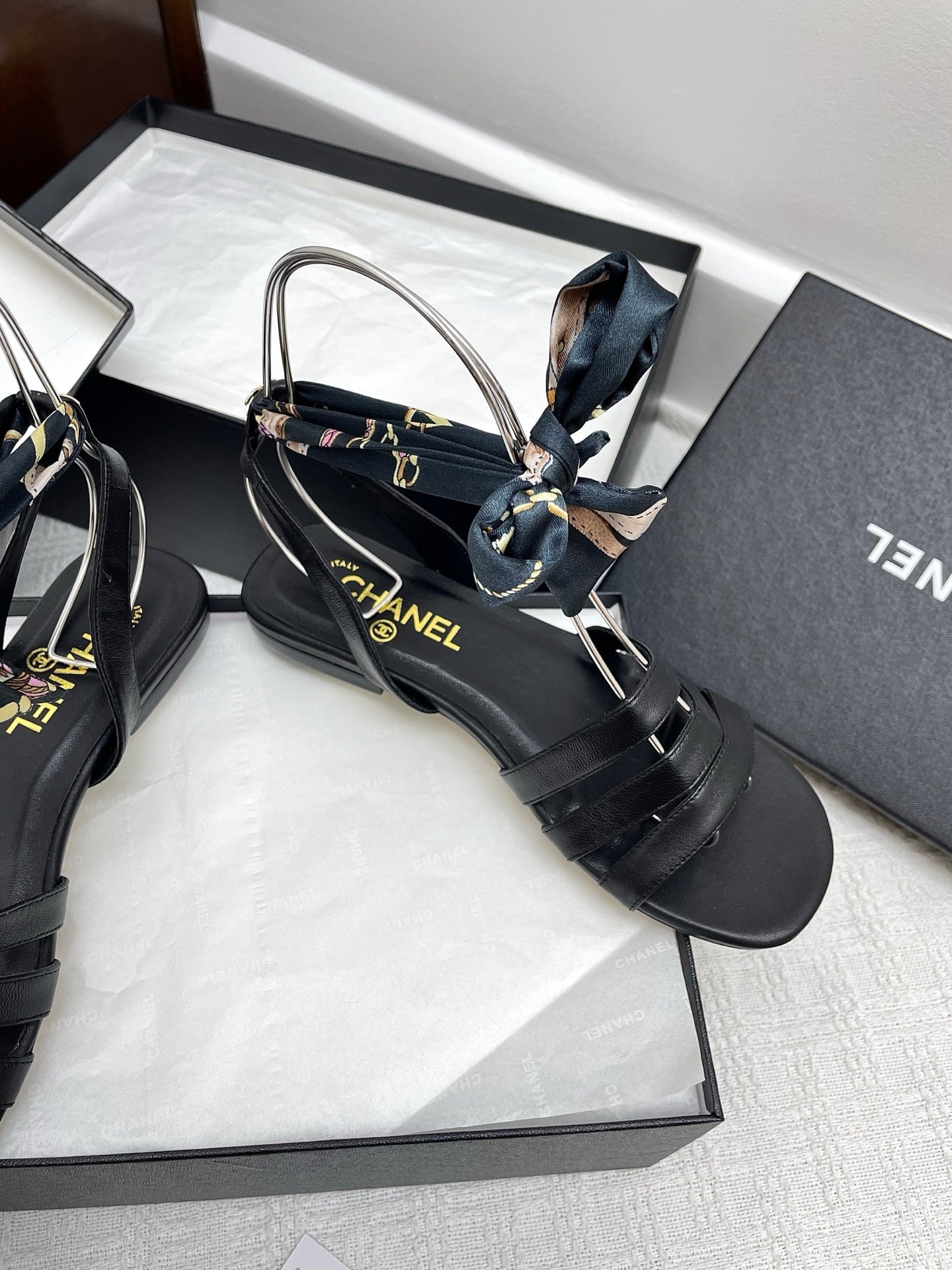 CC 25SS Sandals Three Straps Black Calfskin 338325