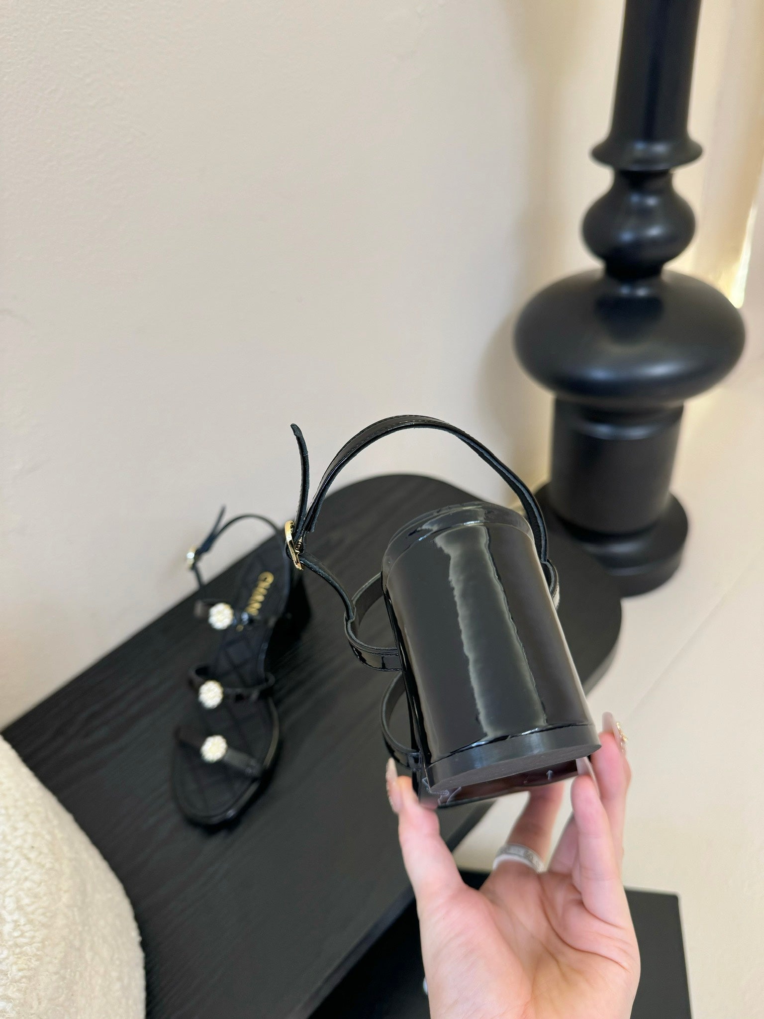CC 25 Sandals Leather Chain 6cm Black Lambskin 338656