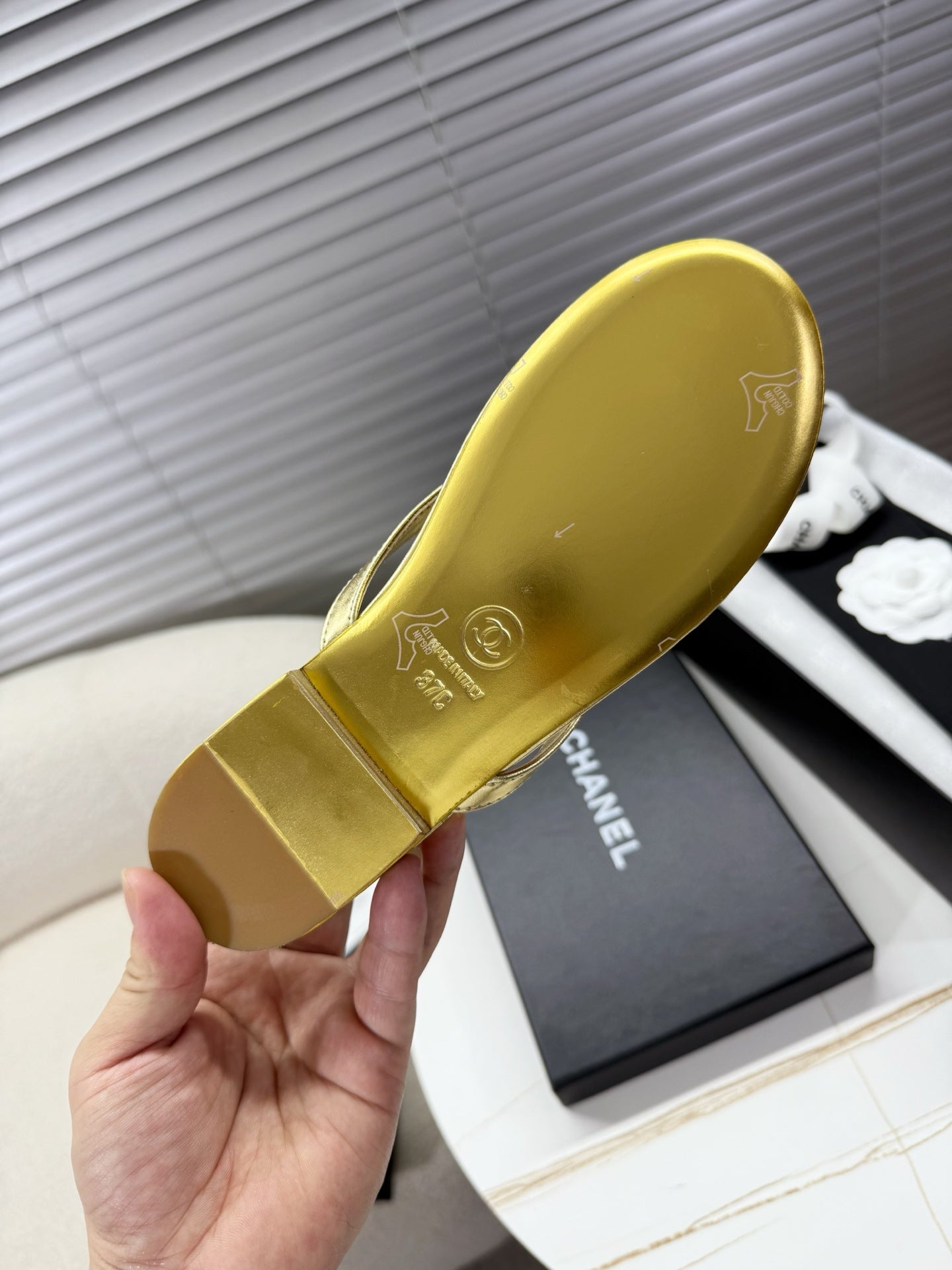 CC 25 Thong Sandal Gold Metalic Silver Diamond Logo