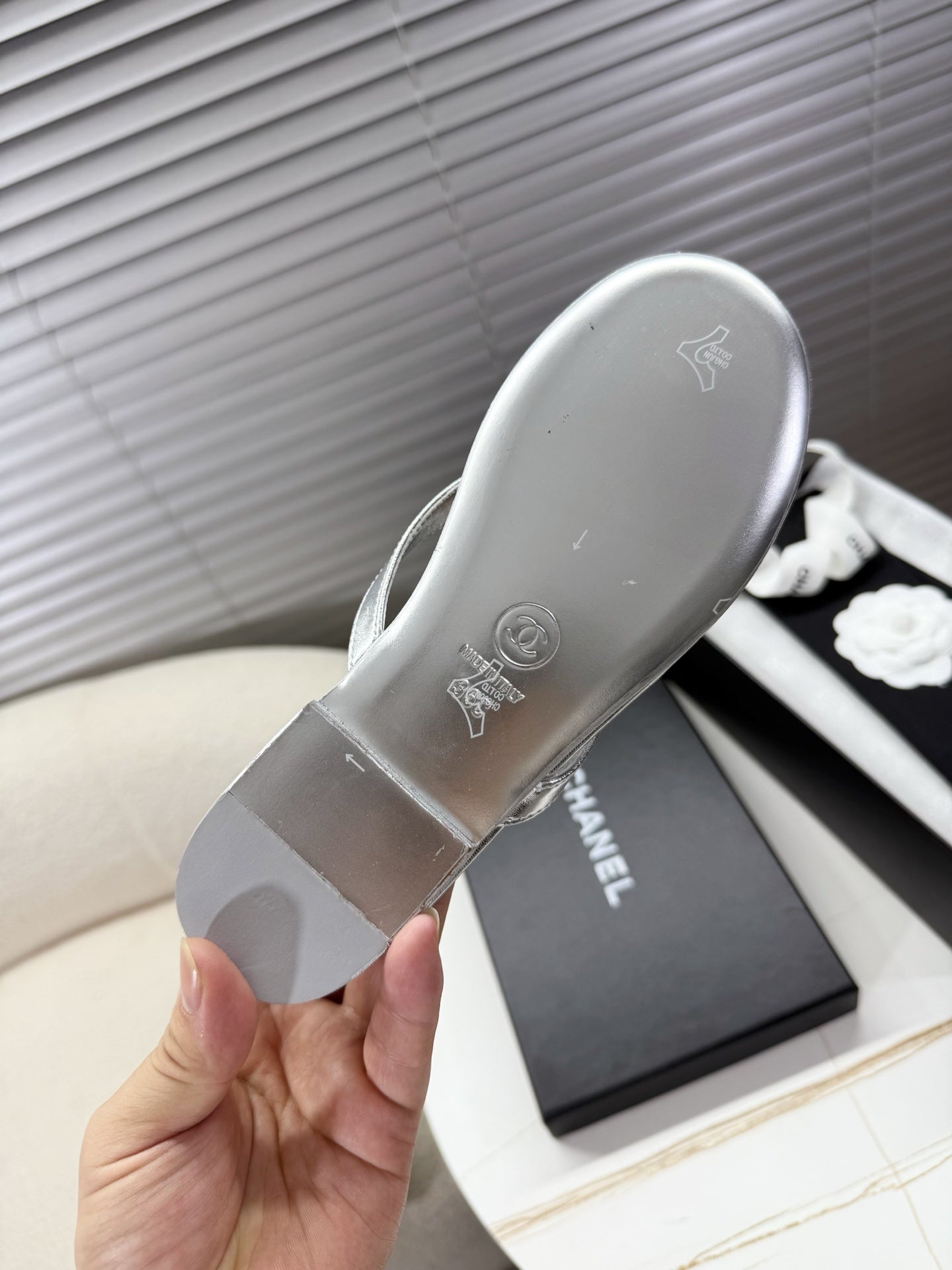 CC 25 Thong Sandal Silver Metalic Silver Diamond Logo