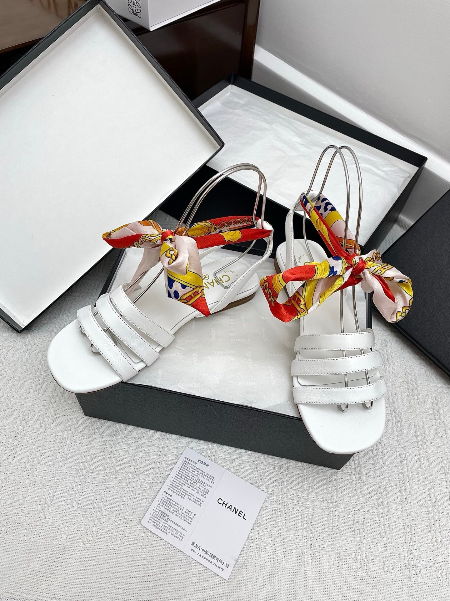 CC 25SS Sandals 5cm Three Straps White Calfskin 338326