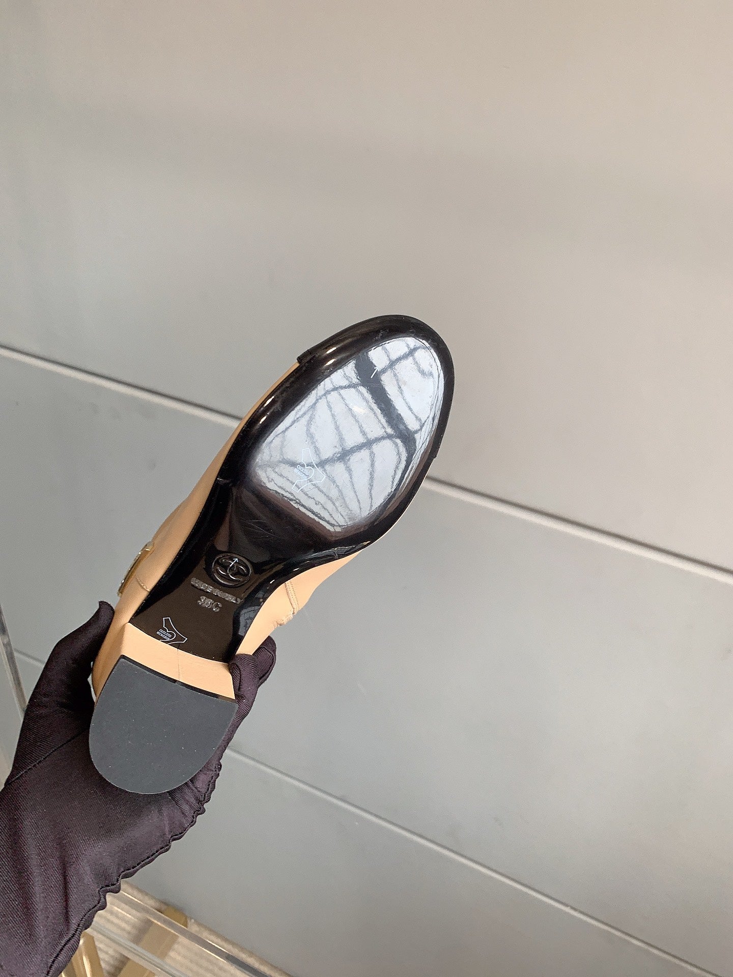 CC 25FW Square Toe Slingback Black White Sheepskin Patent Leather 541132