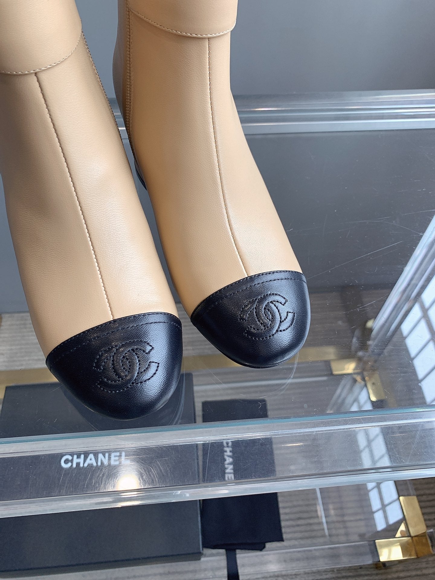 CC Square Toe Ankle Boots 70mm Beige Black Cowhide 464565