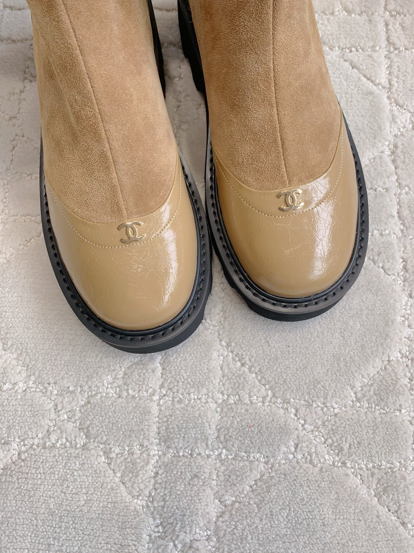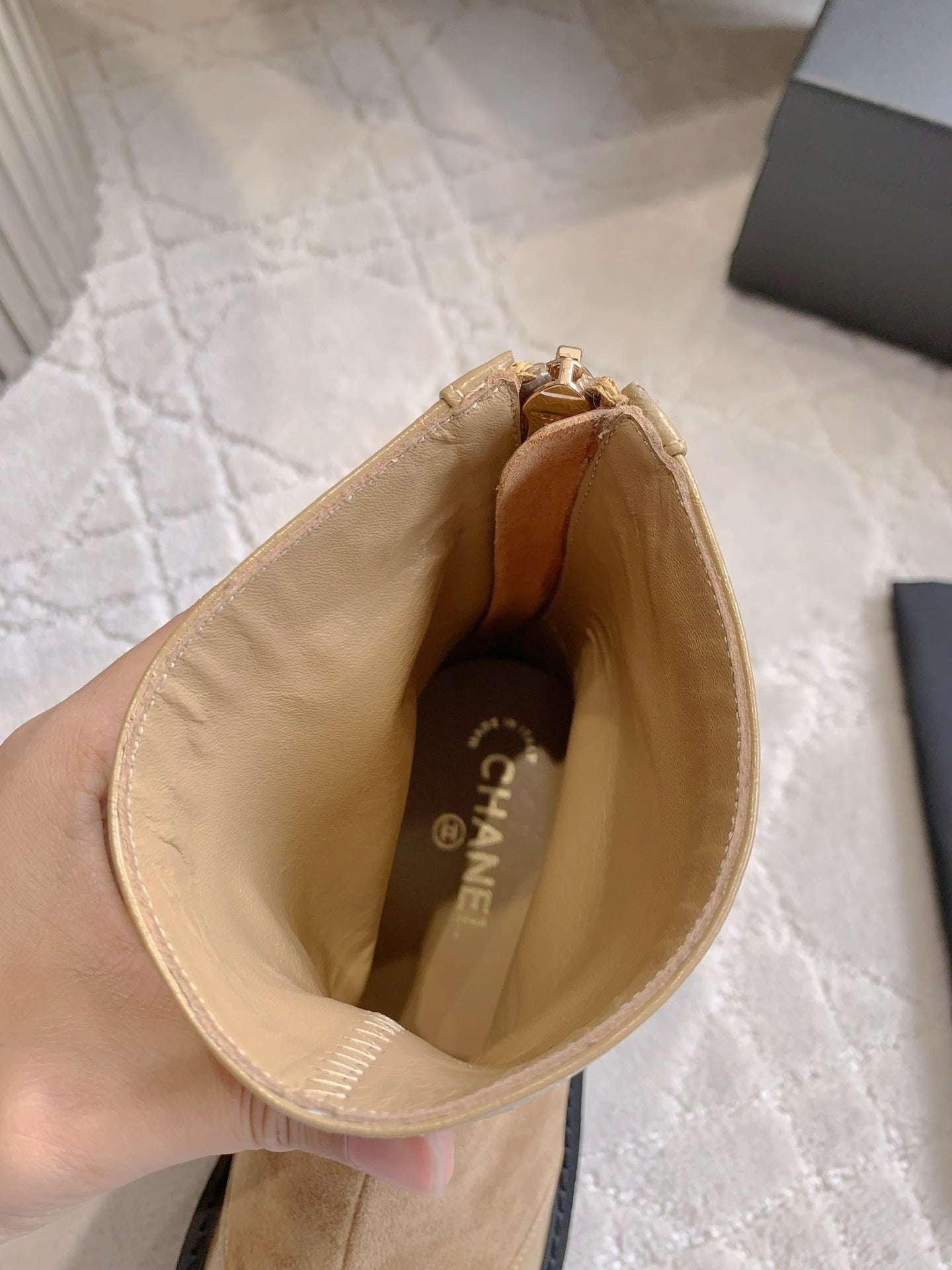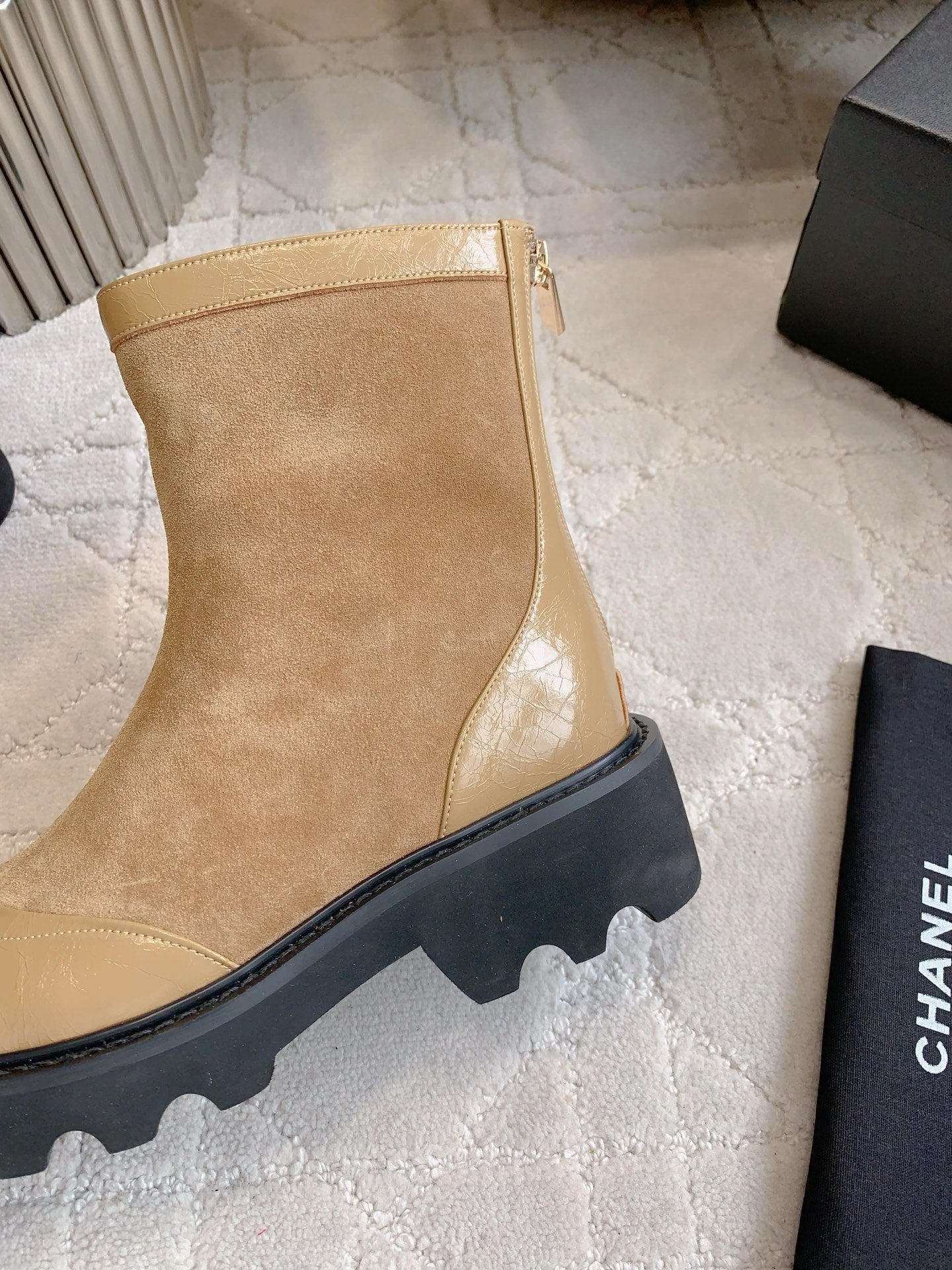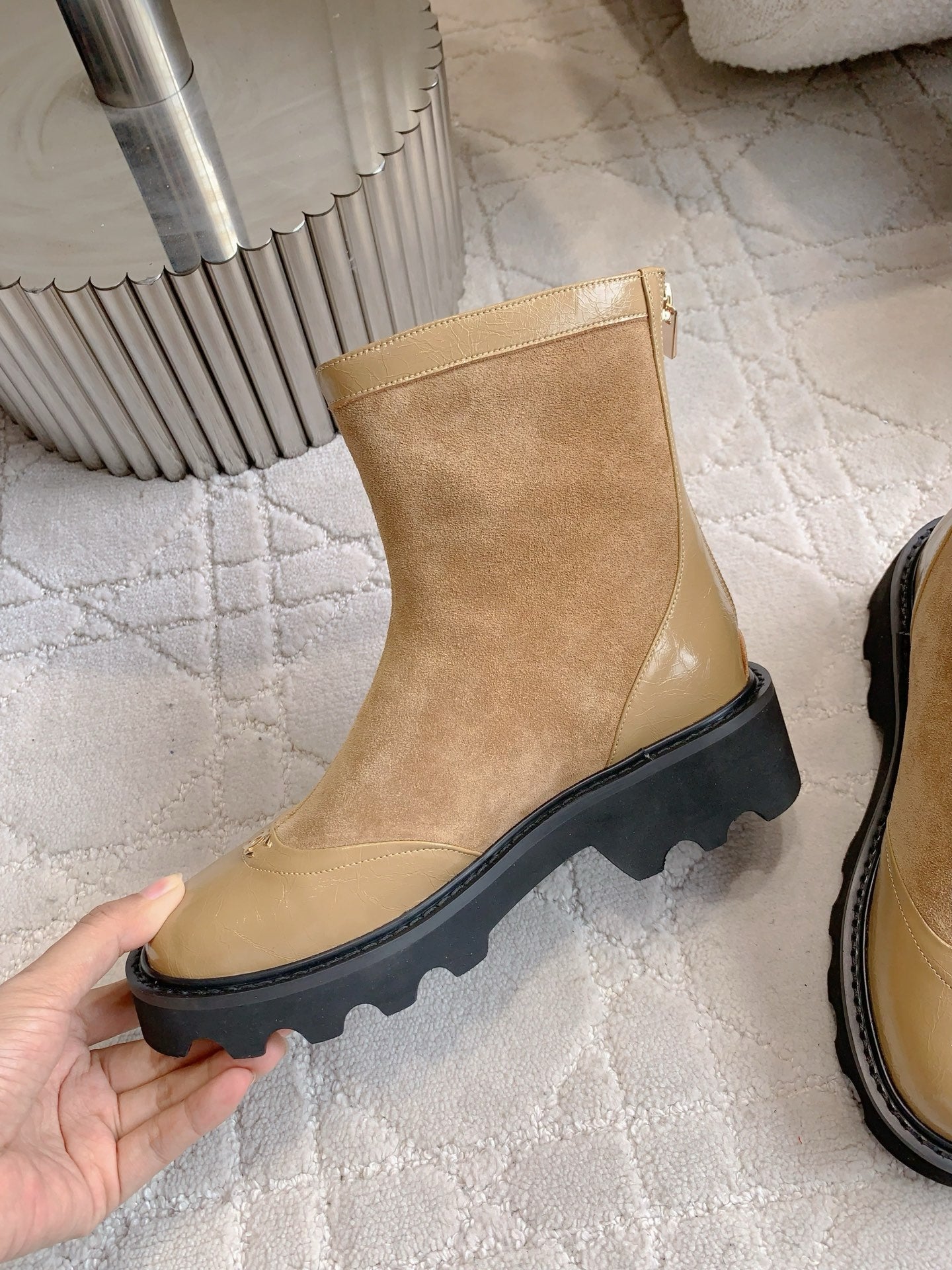 CC New Platform Ankle Boots Light Brown Suede Glossy Sheepskin