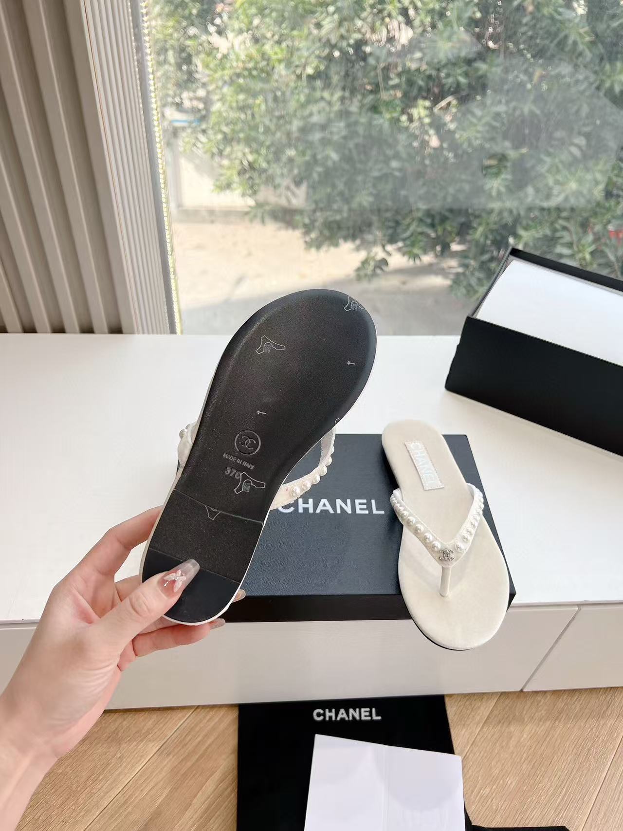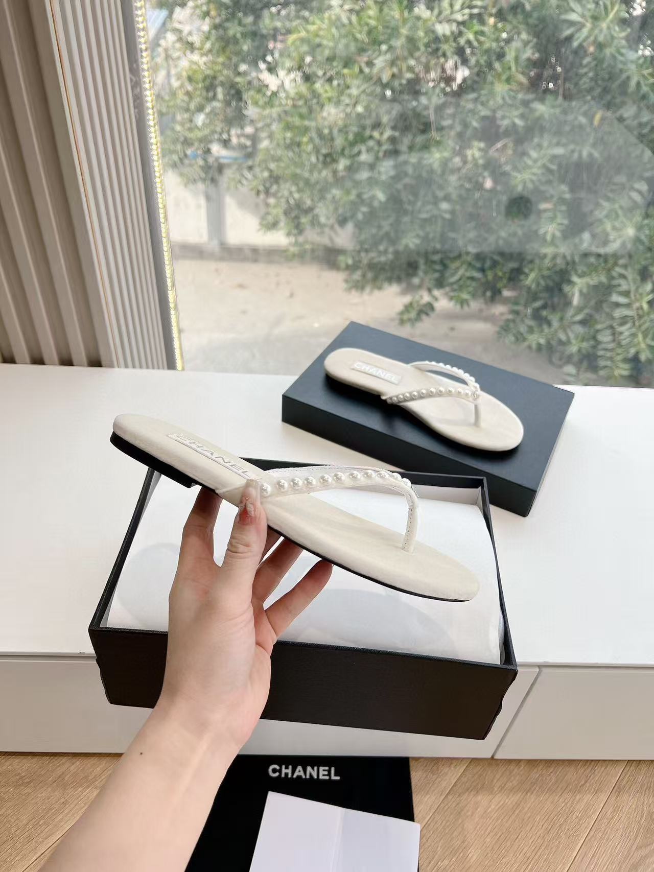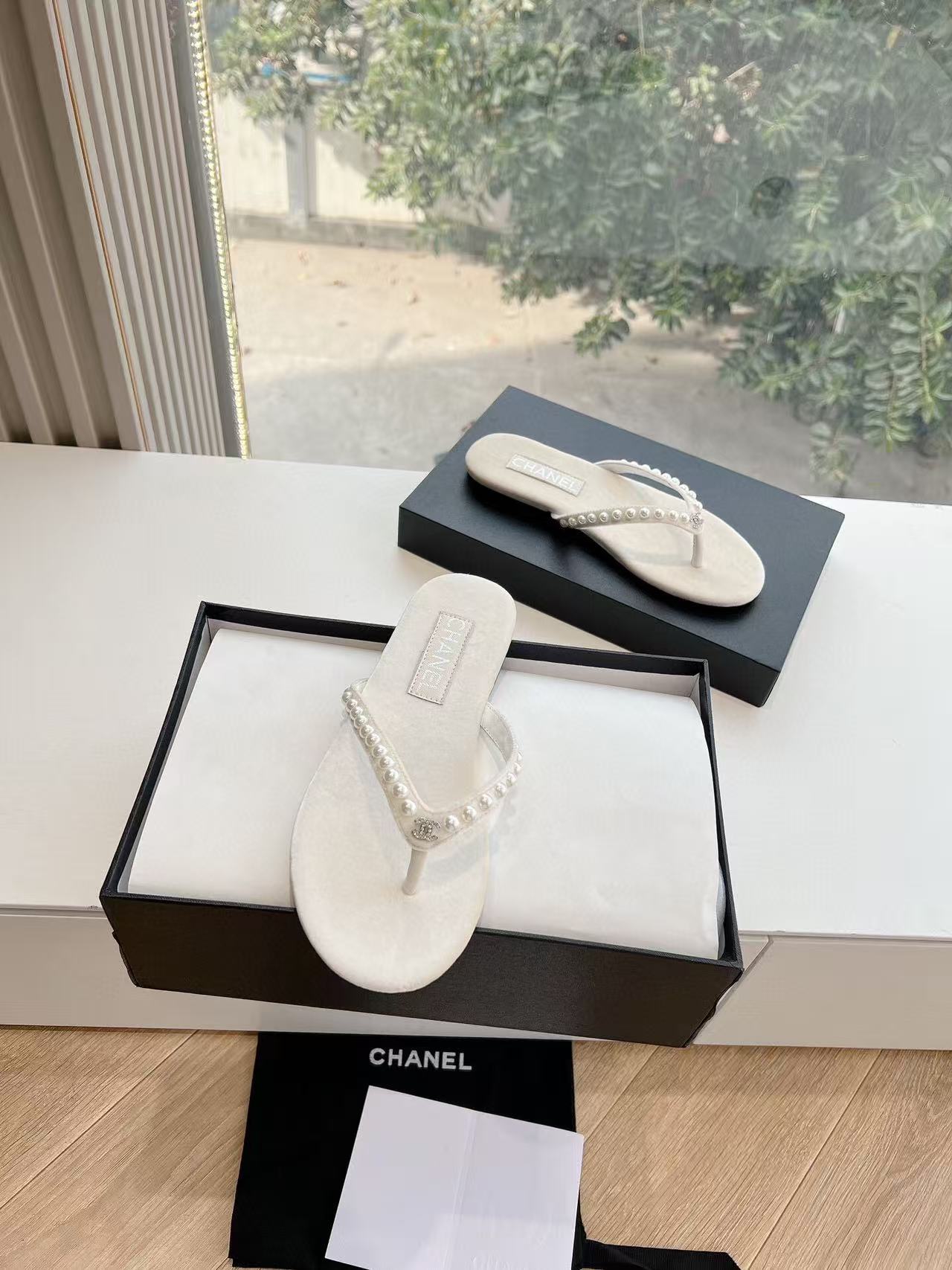 CC 25 Flip Flop Sandals White Calfskin Espadrilles