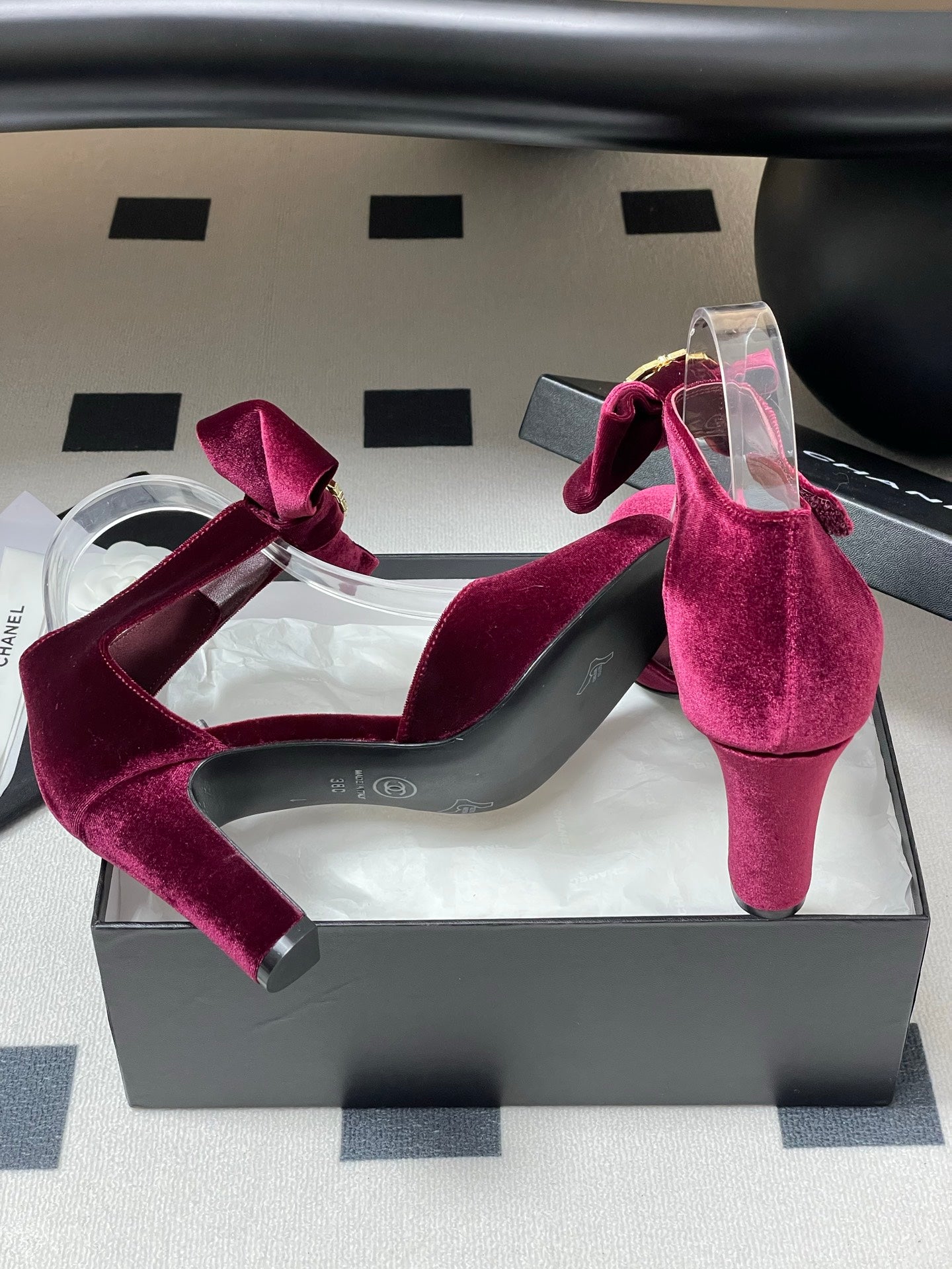 cc 25 bow mule sandal 50mm burgundy velvet 238479