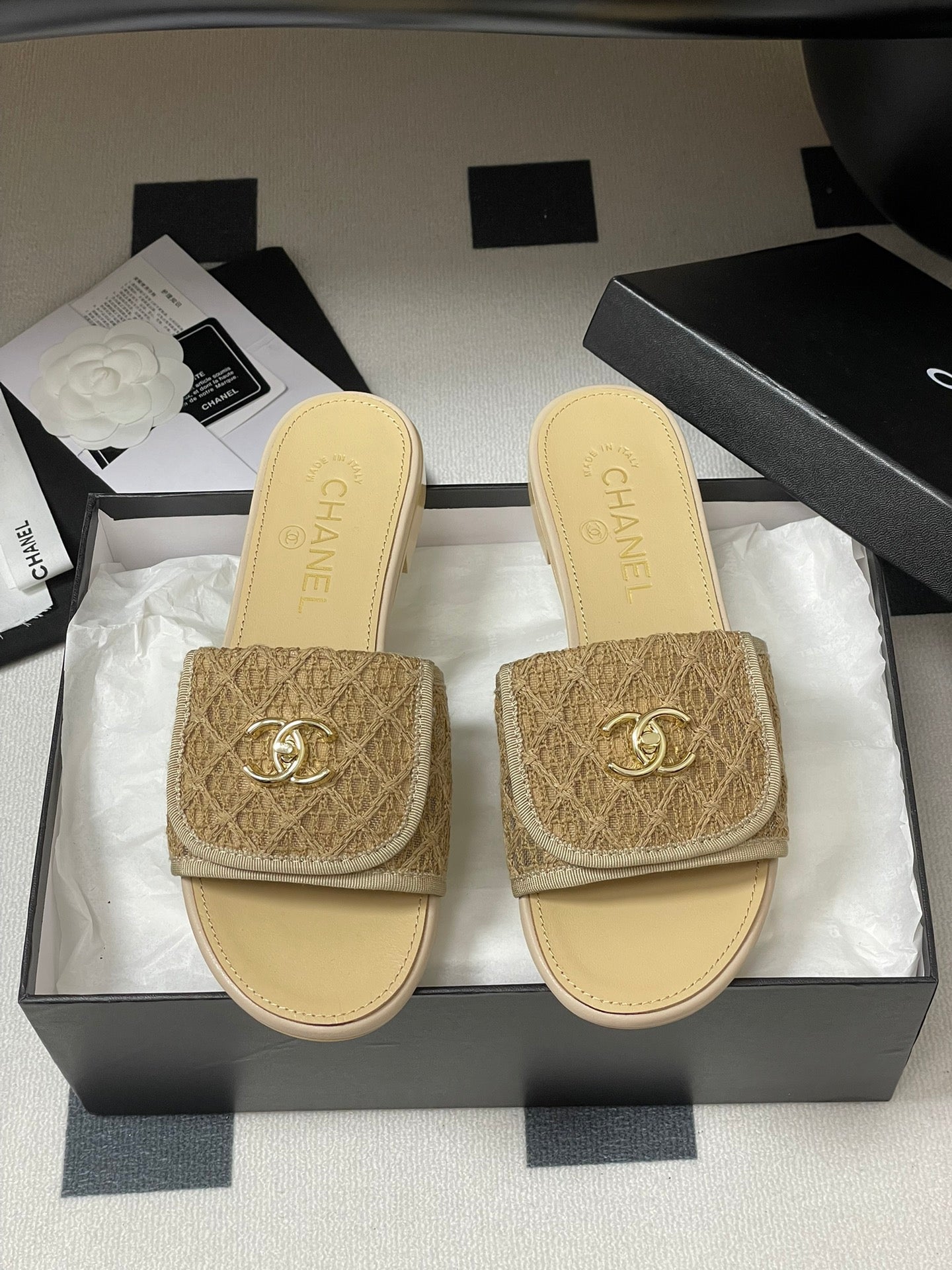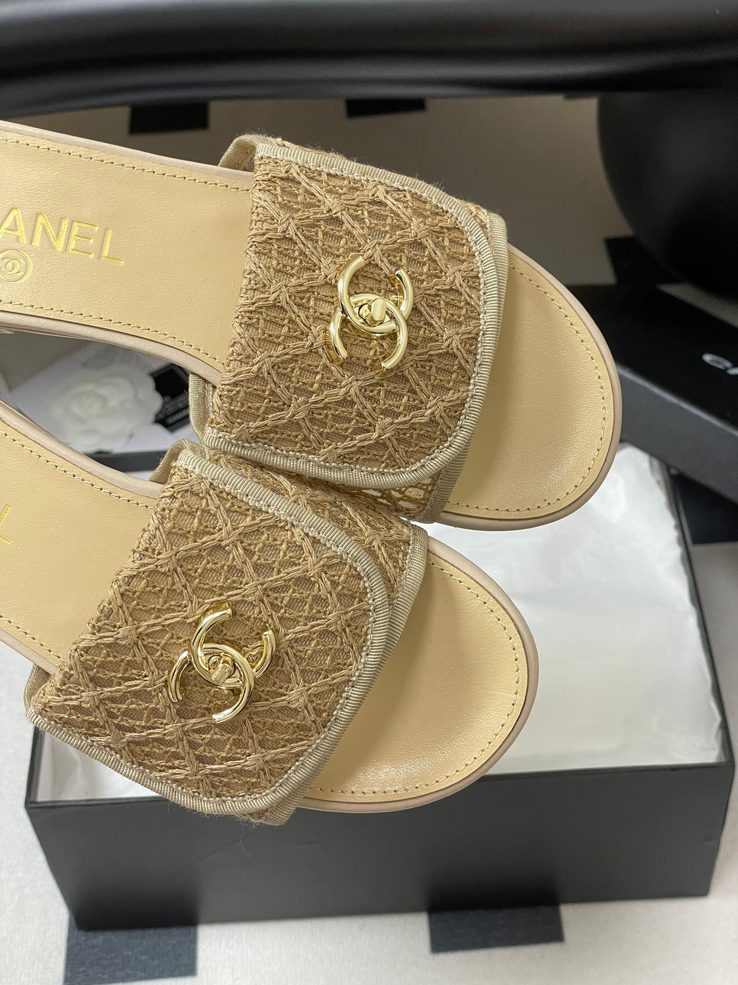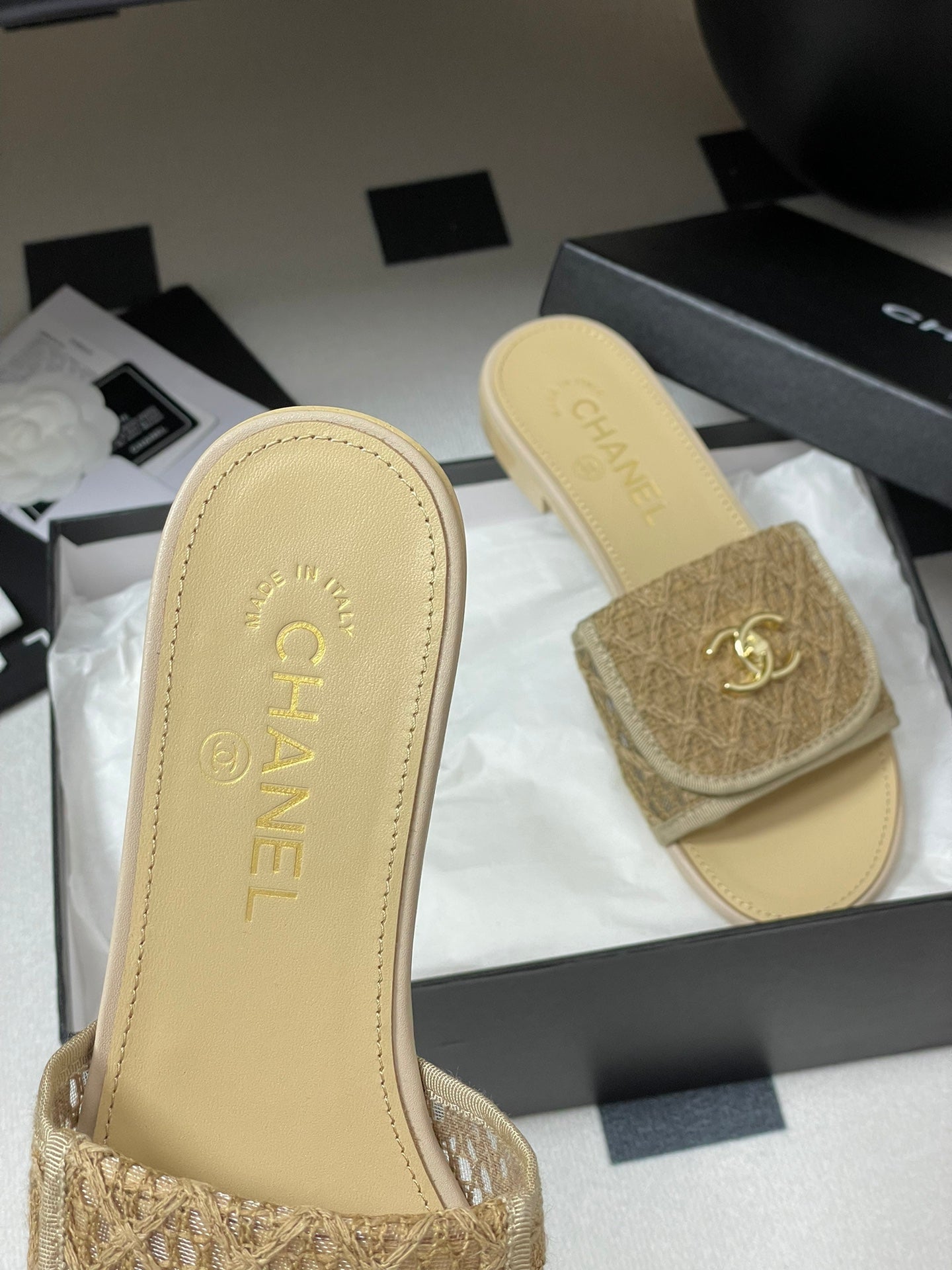 CC 25 Flip Flop Sandals Beige Calfskin Espadrilles