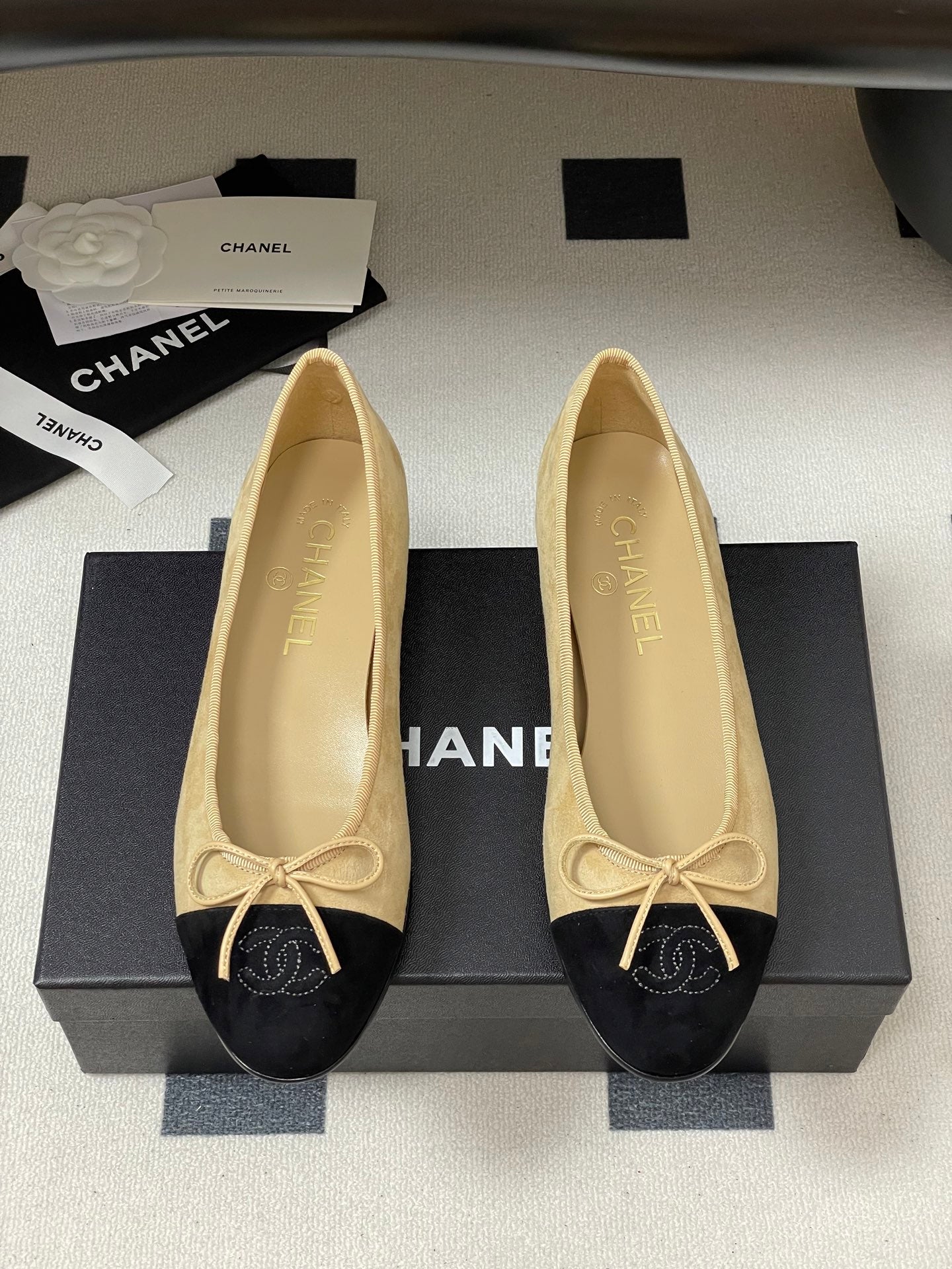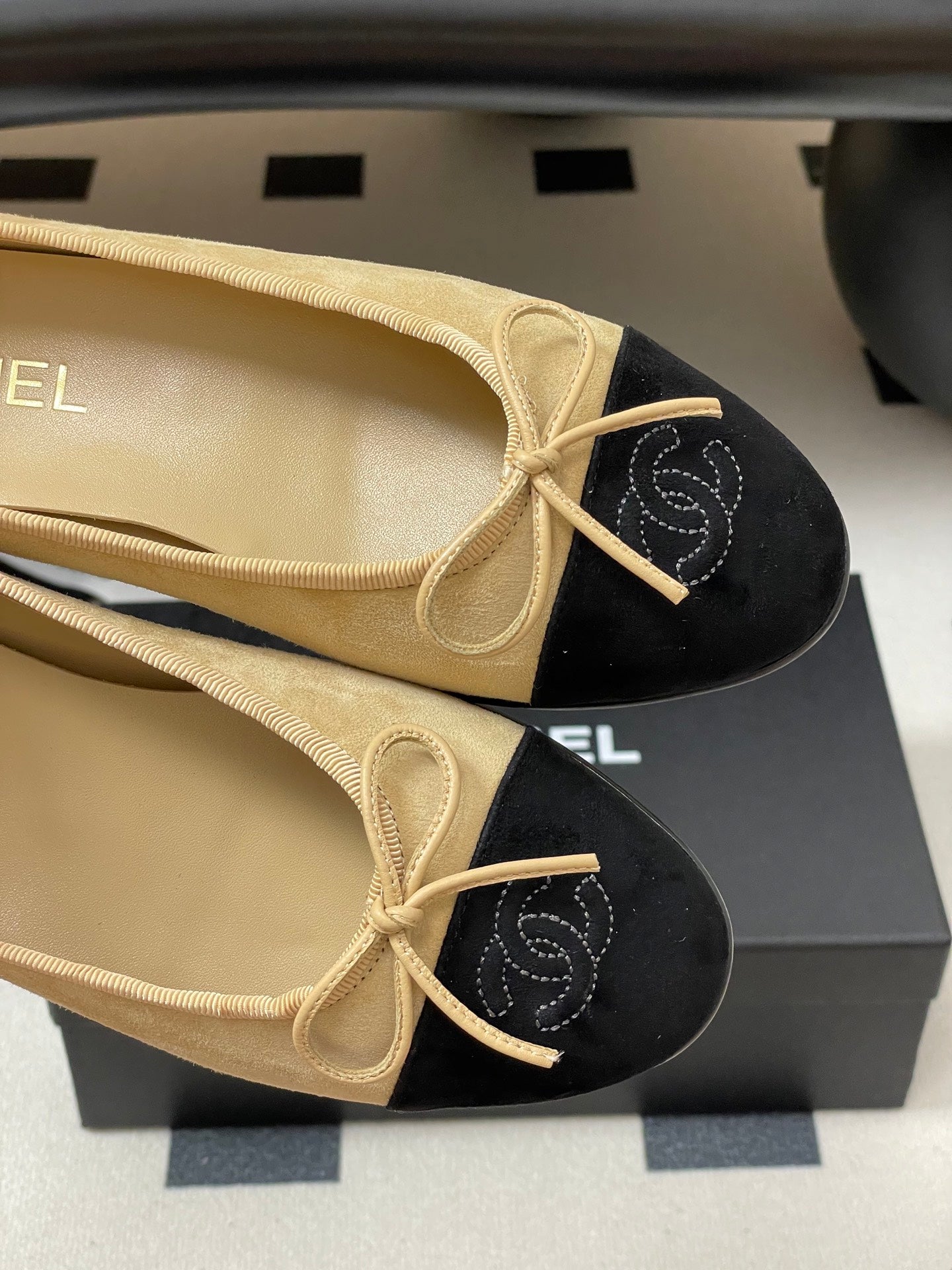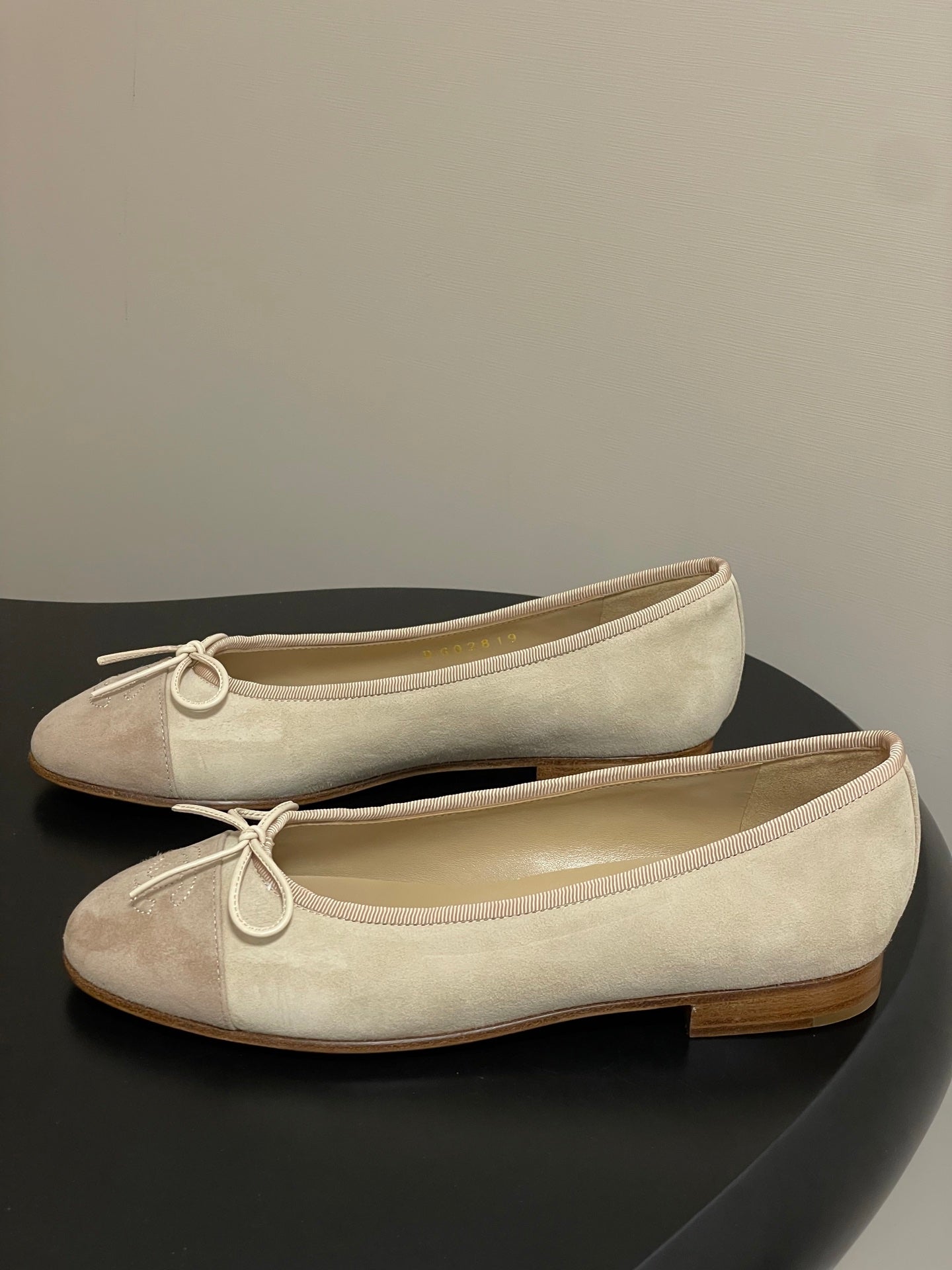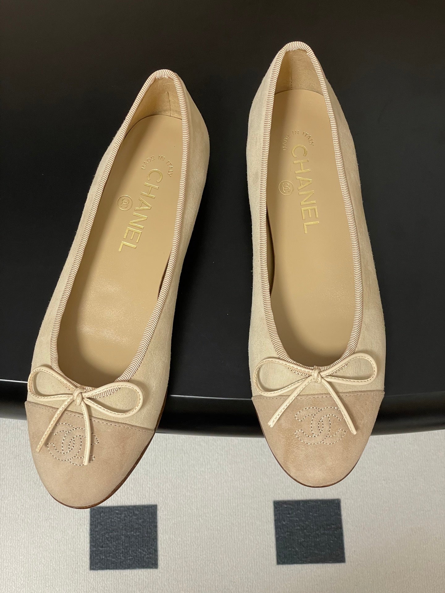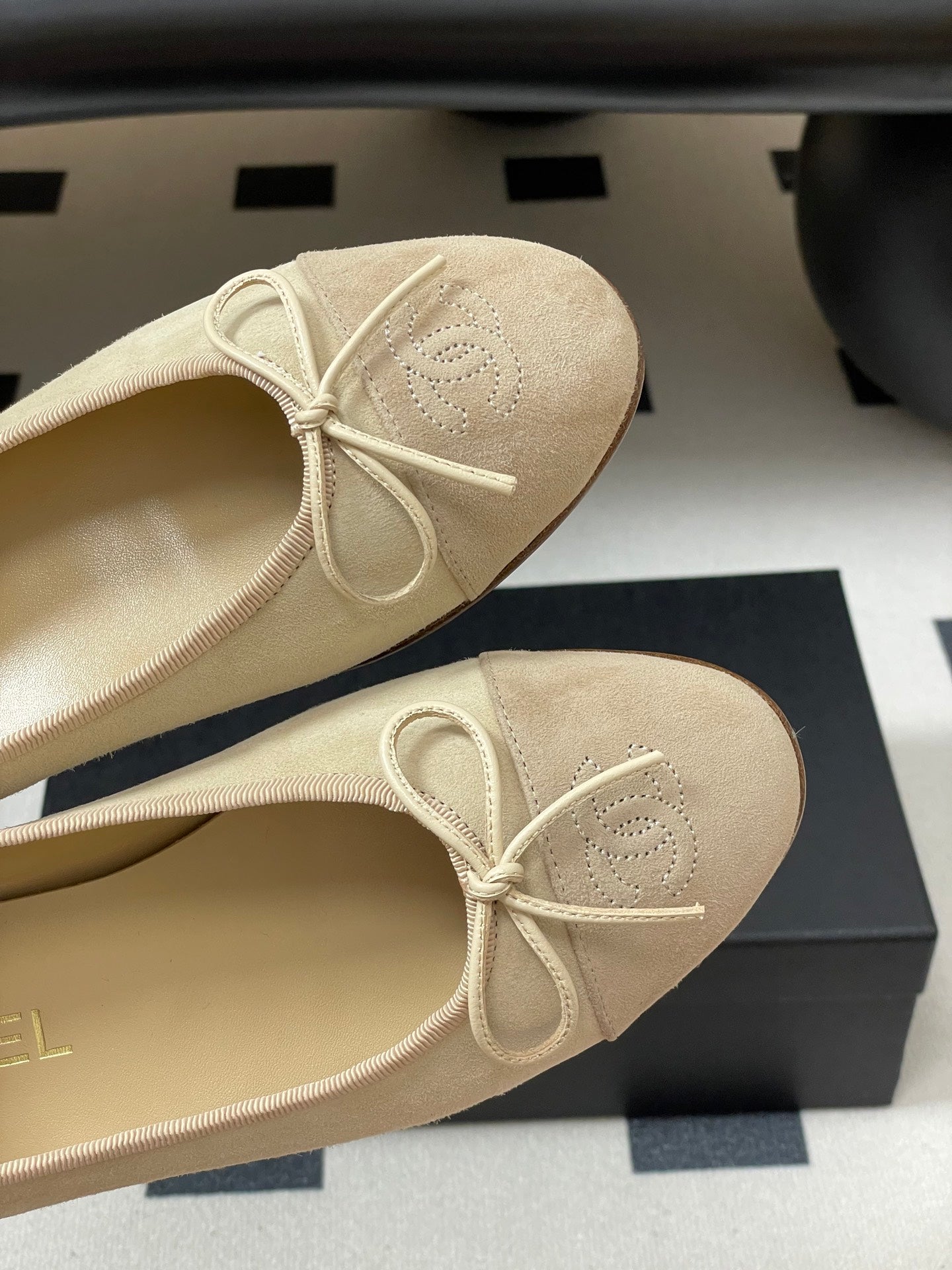 CC 25 Ballet Flat Beige Black Suede 393999