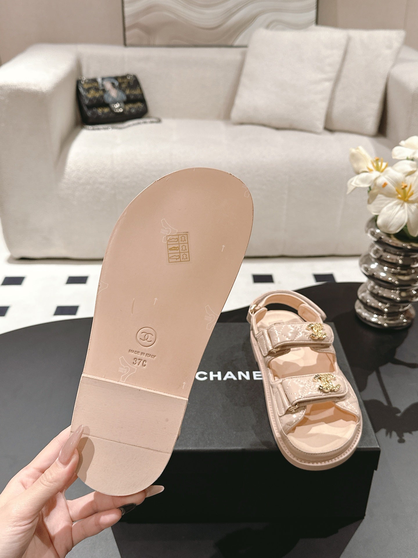 CC 25S Sandal Three Leather Strap Pink Calfskin