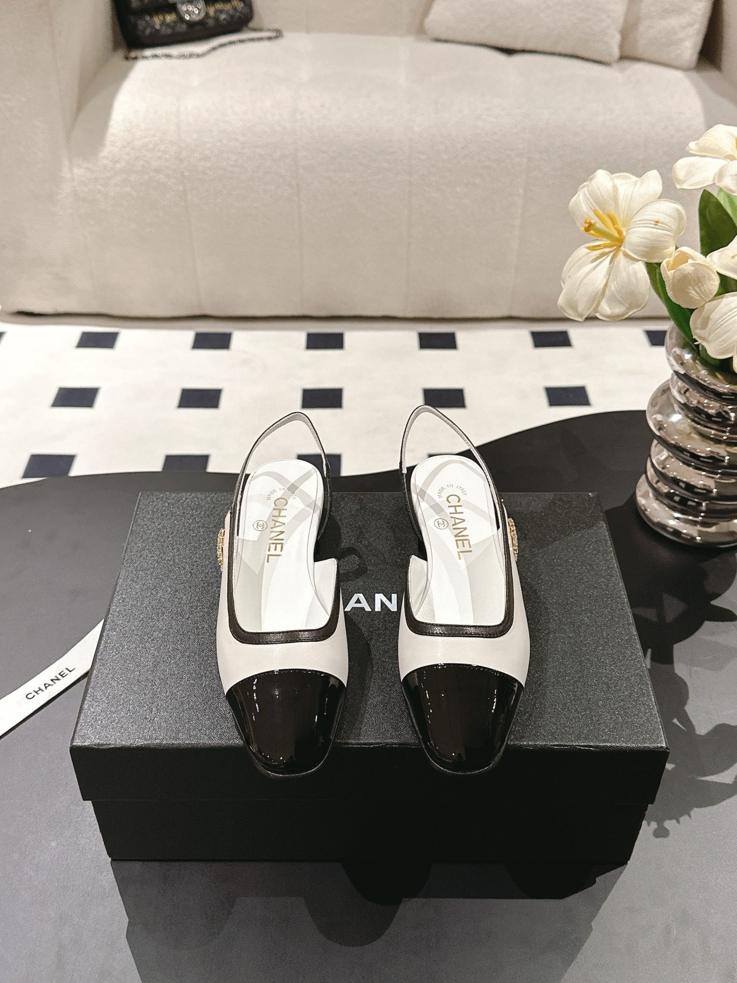 cc 2024k slingback 30mm white black pattern calfskin 237498