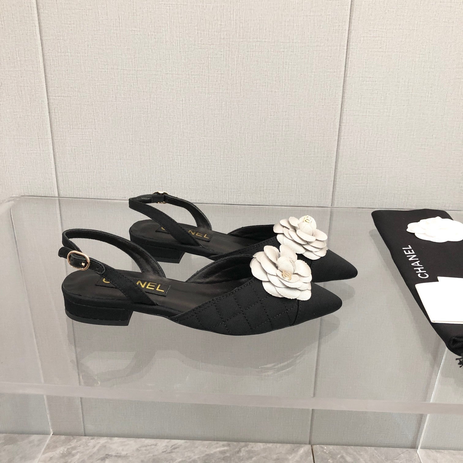 CC 25C 2CM Slingback Flats Black White Fabric 213237