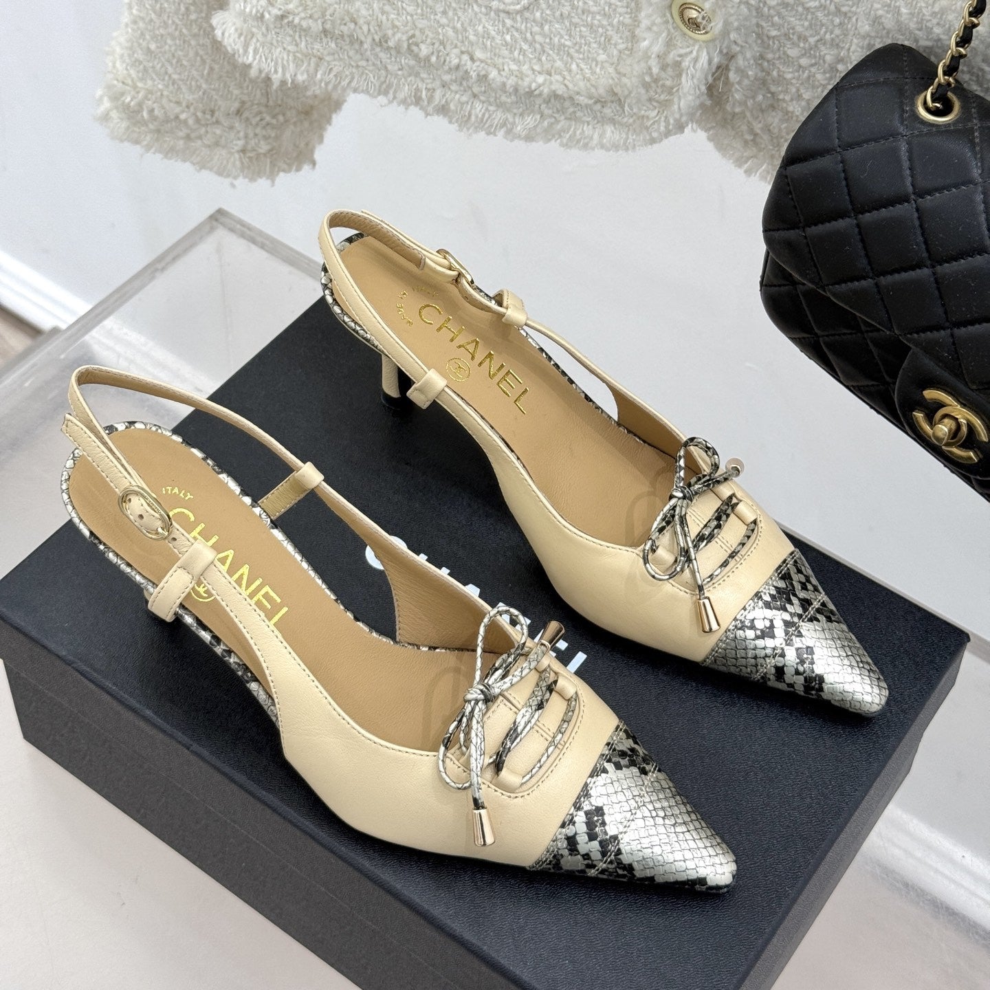CC 25C Bowknot Slingback Sandal 60mm Beige Sheepskin Mix Python Pattern 265653