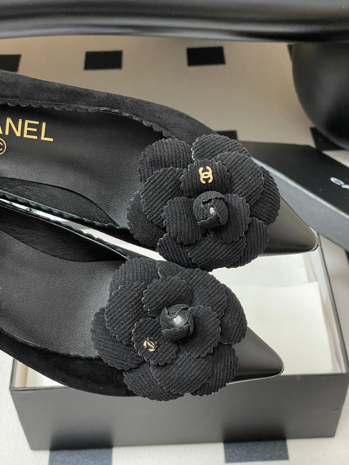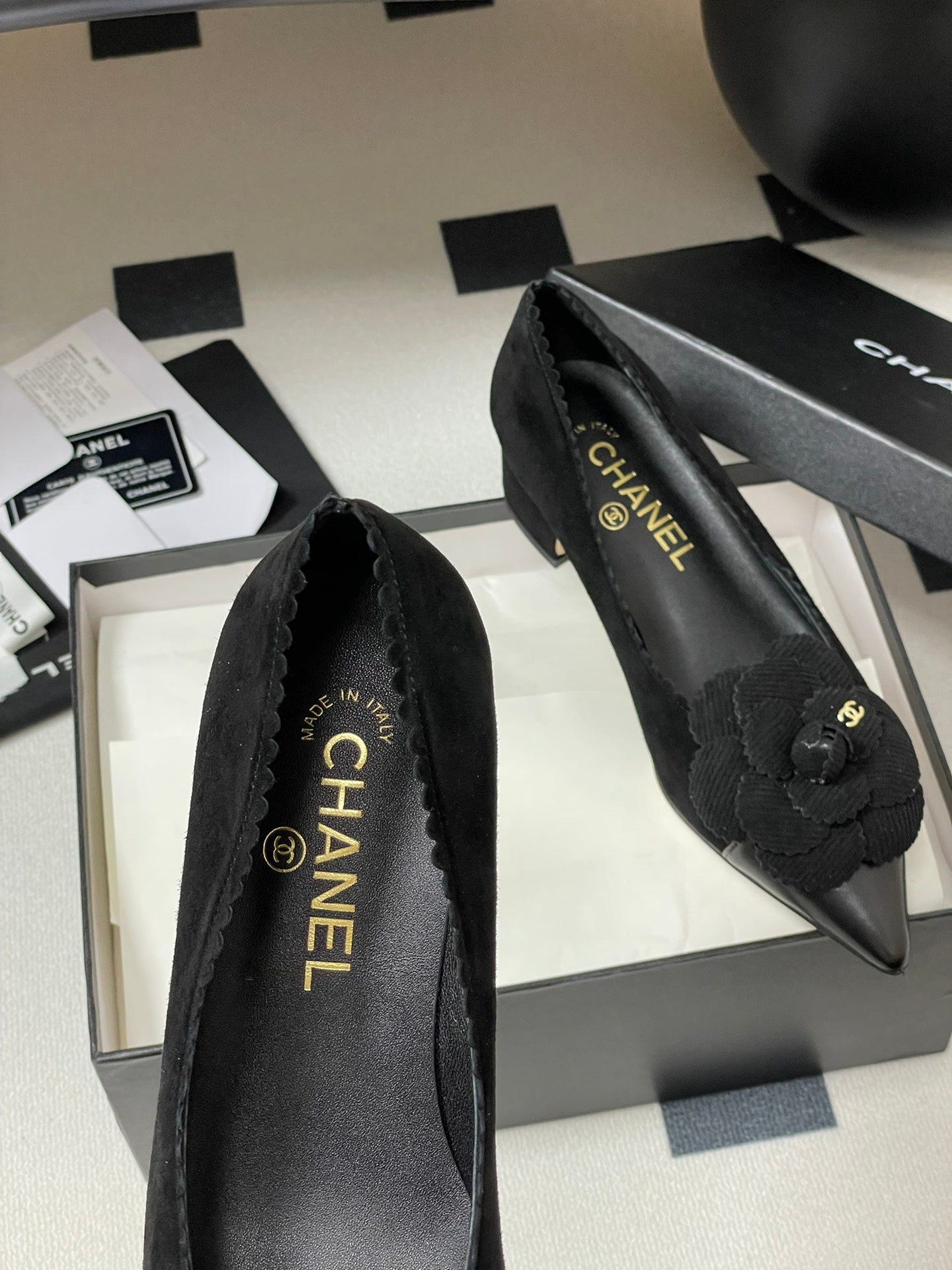 CC 25C Classic Camellia Pointed High Heels Pump 35mm Black Suede 247614