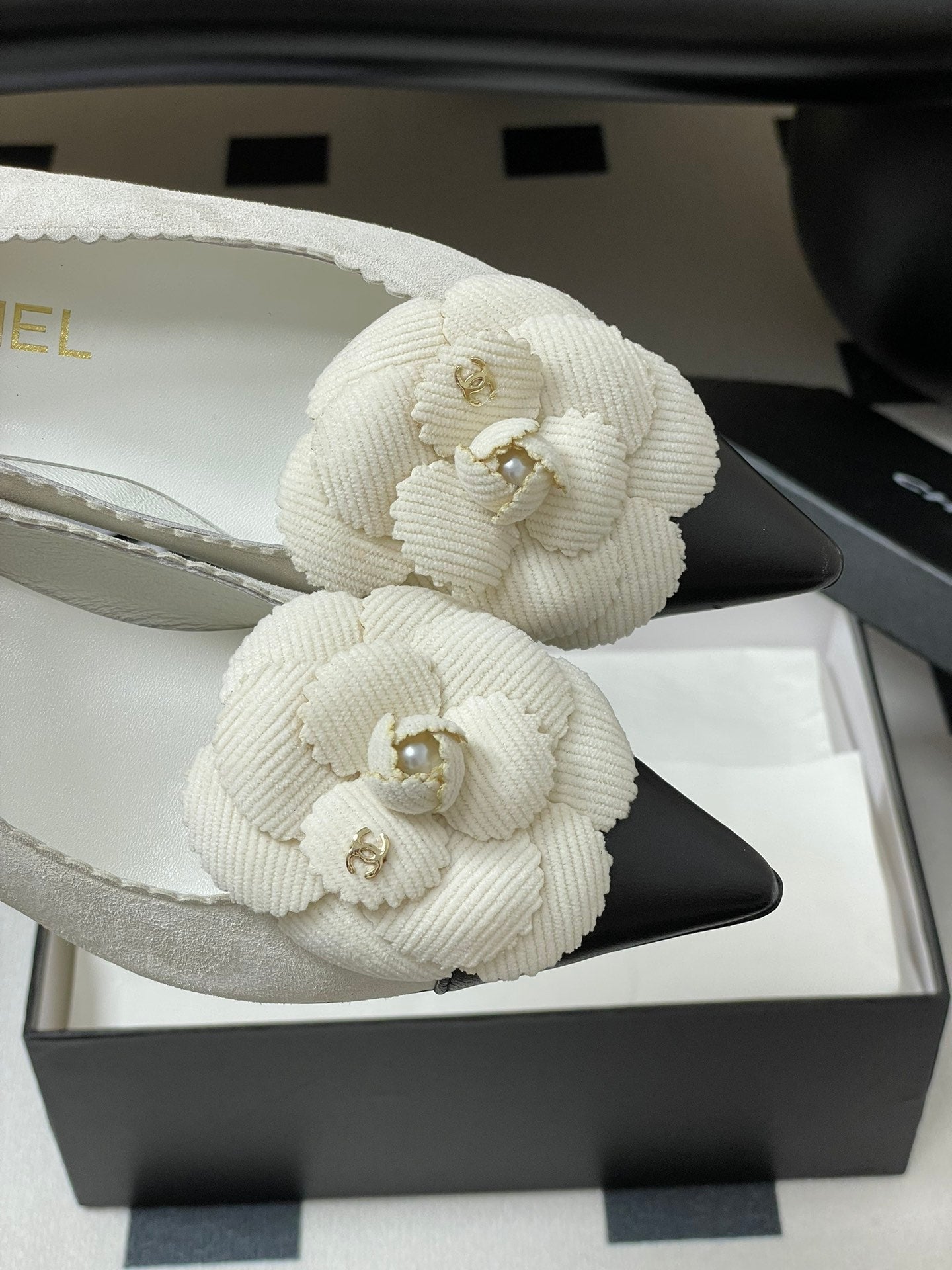 CC 25C Classic Camellia Pointed High Heels Pump 35mm White Suede 247613