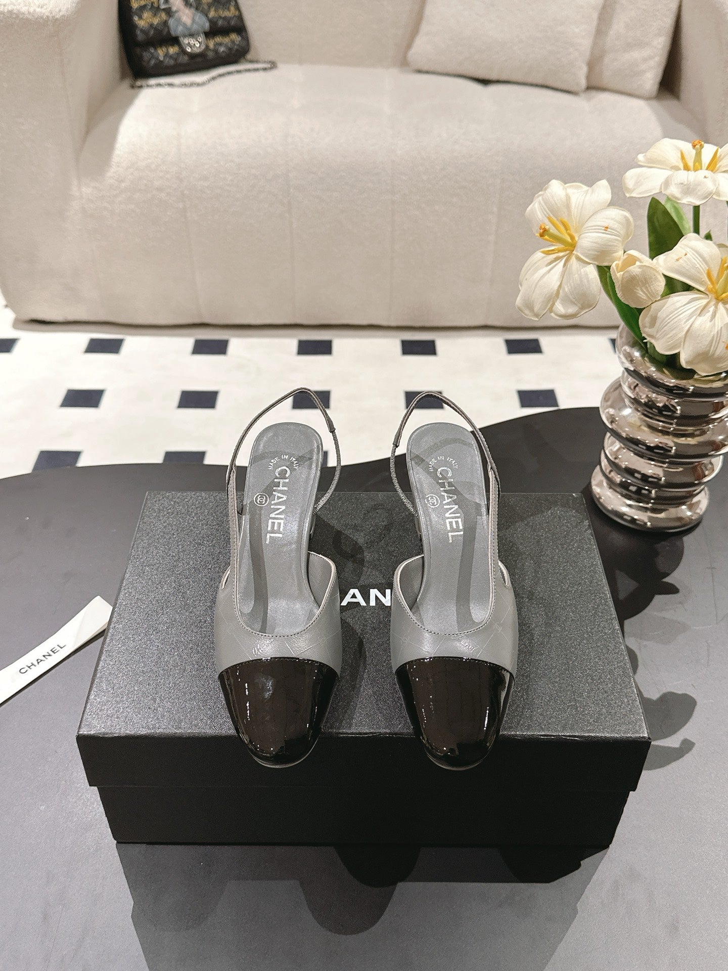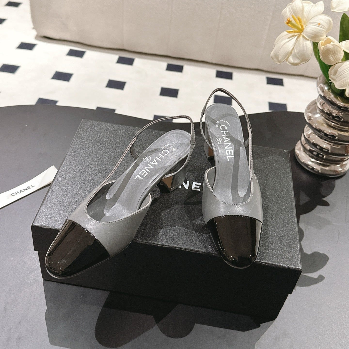 cc 25c slingback 55mm cross line pattern grey lambskin 237497