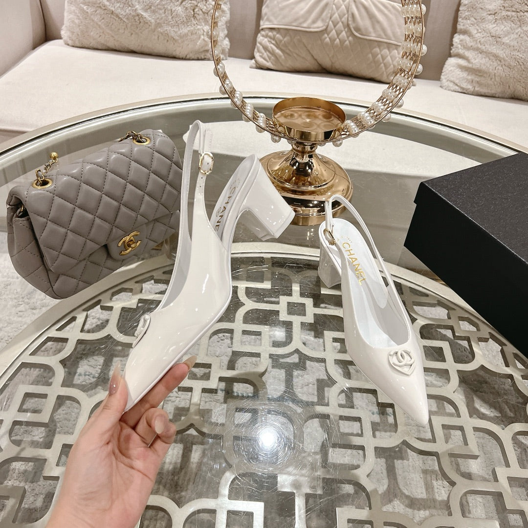 CC 25C Slingback Flats White Patent Leather 213336