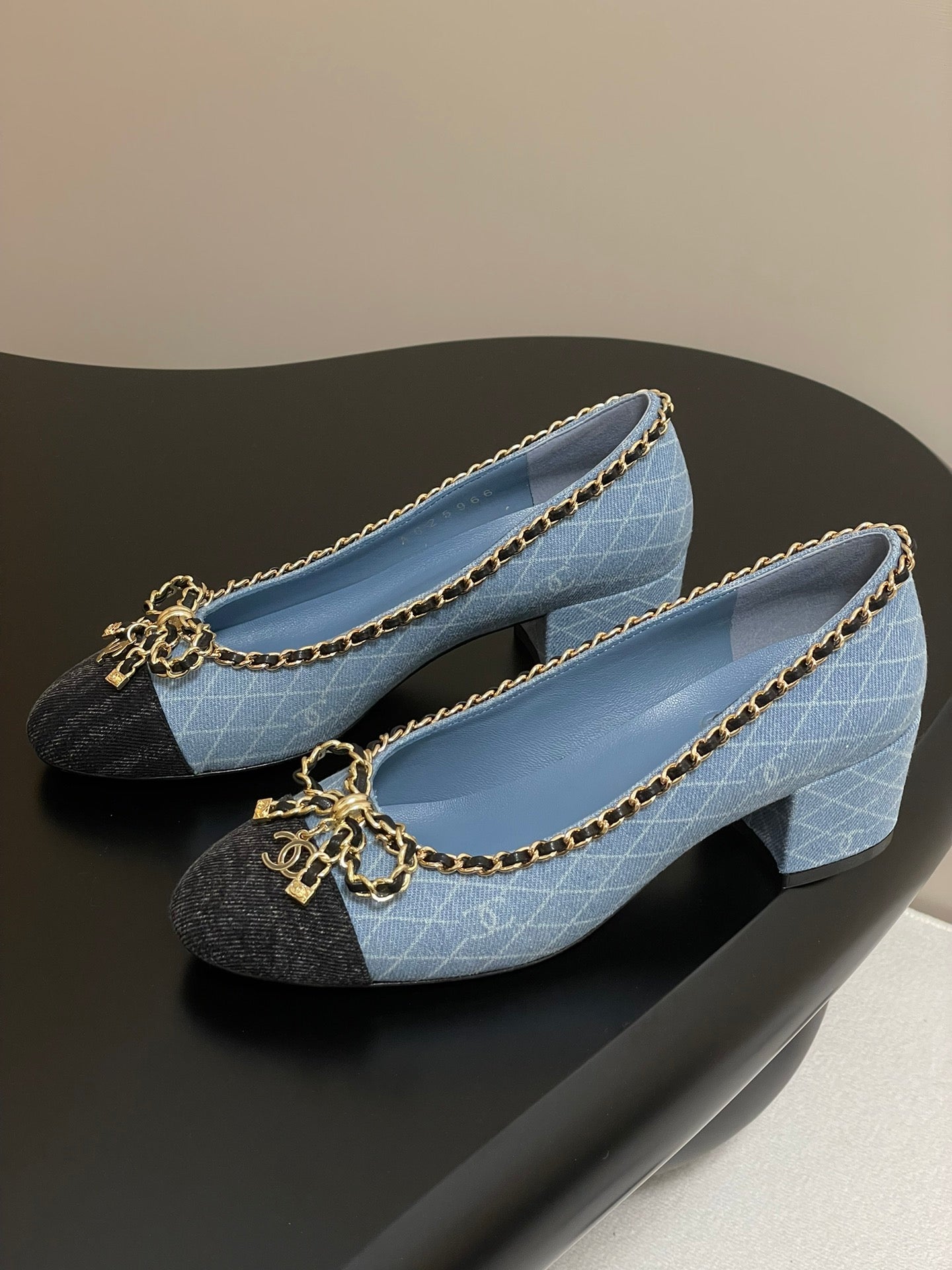 CC 25S 60mm Chain Bow Single Pumps Blue Denim Black Grosgrain 247665