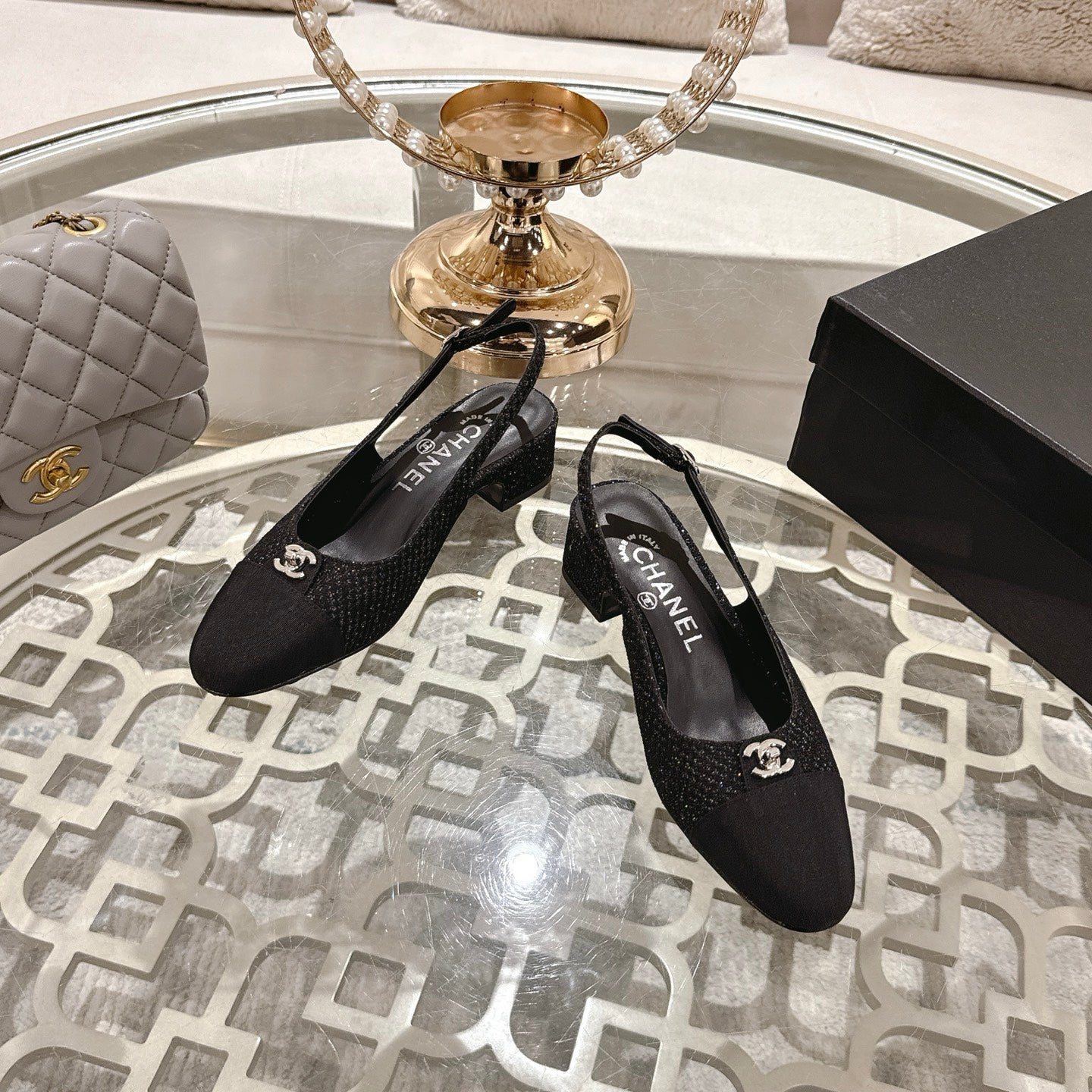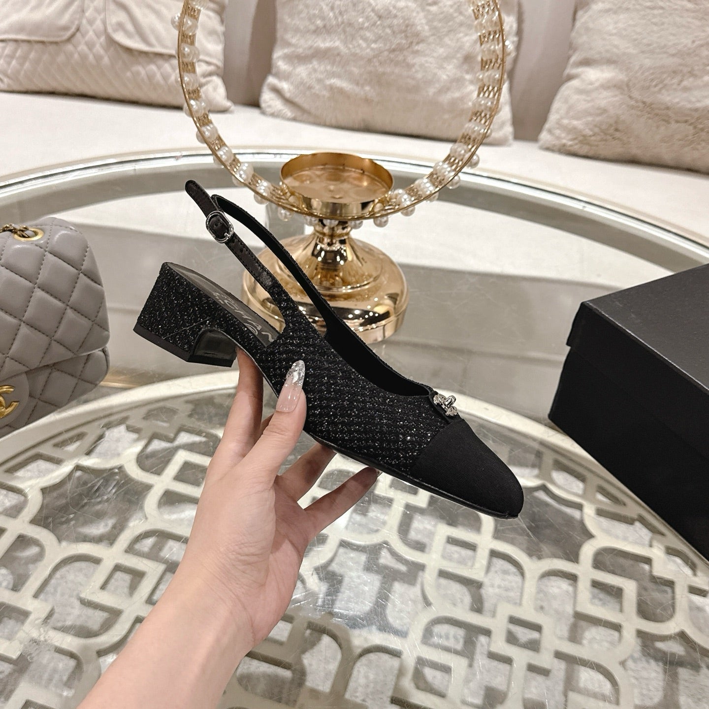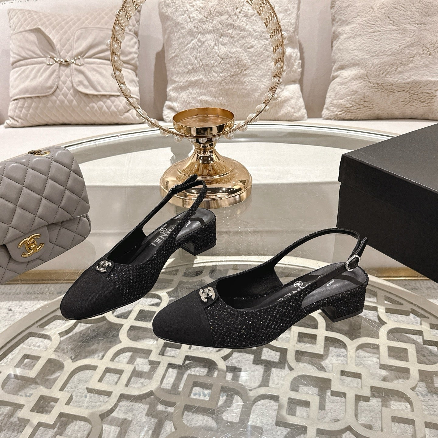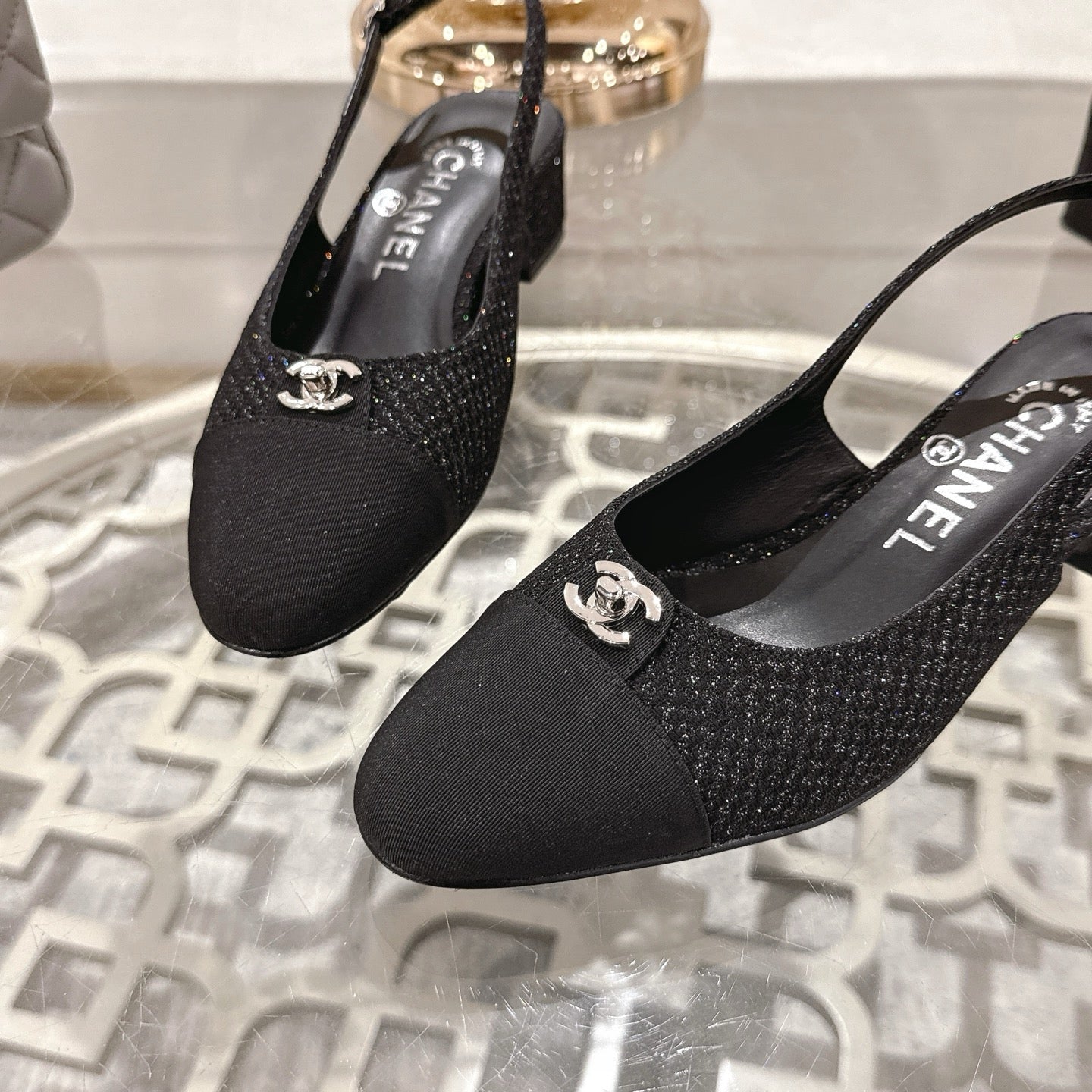 CC 25ss Slingbacks Black 35mm Glitter Fabric & Grosgrain 432609