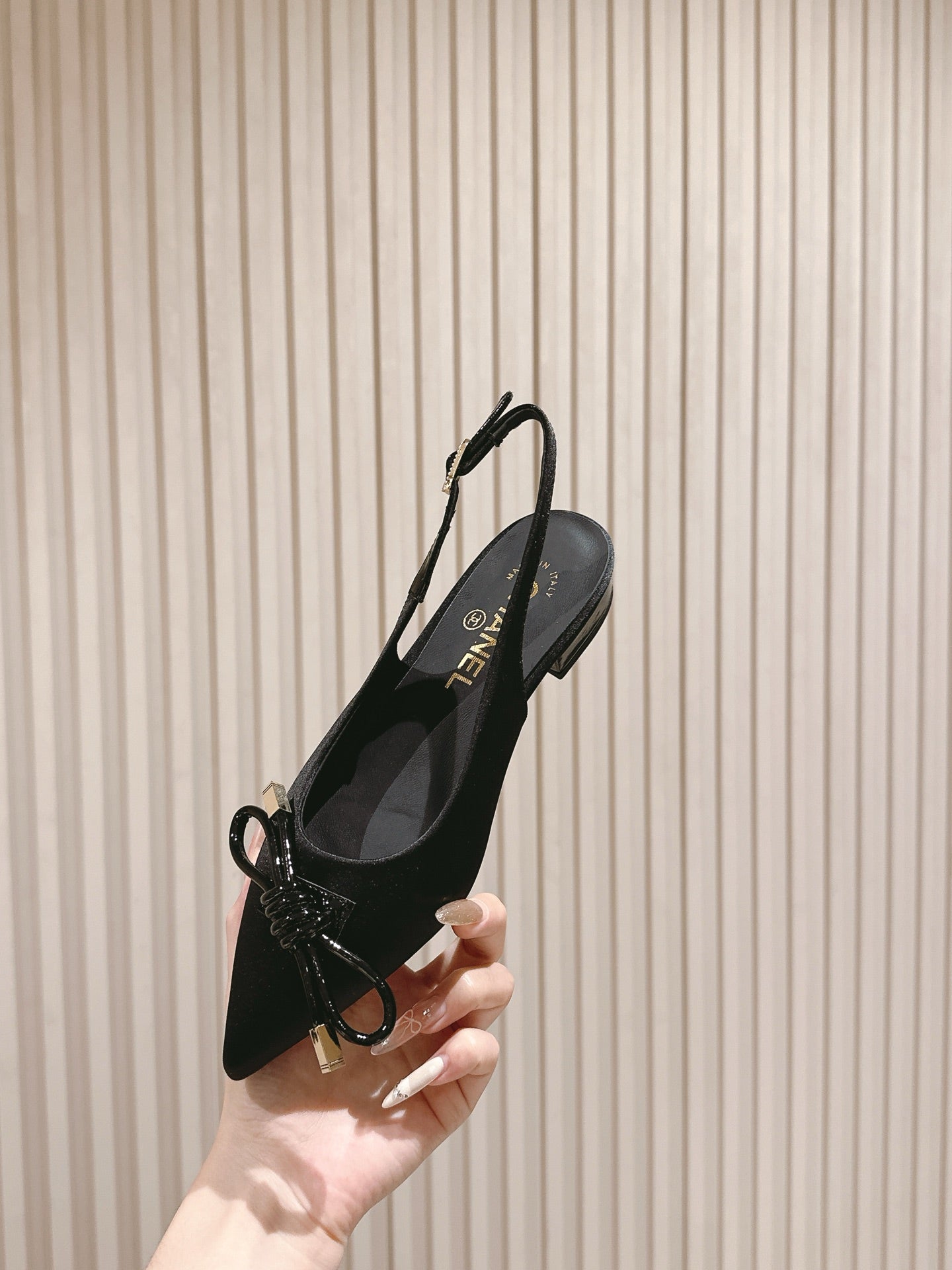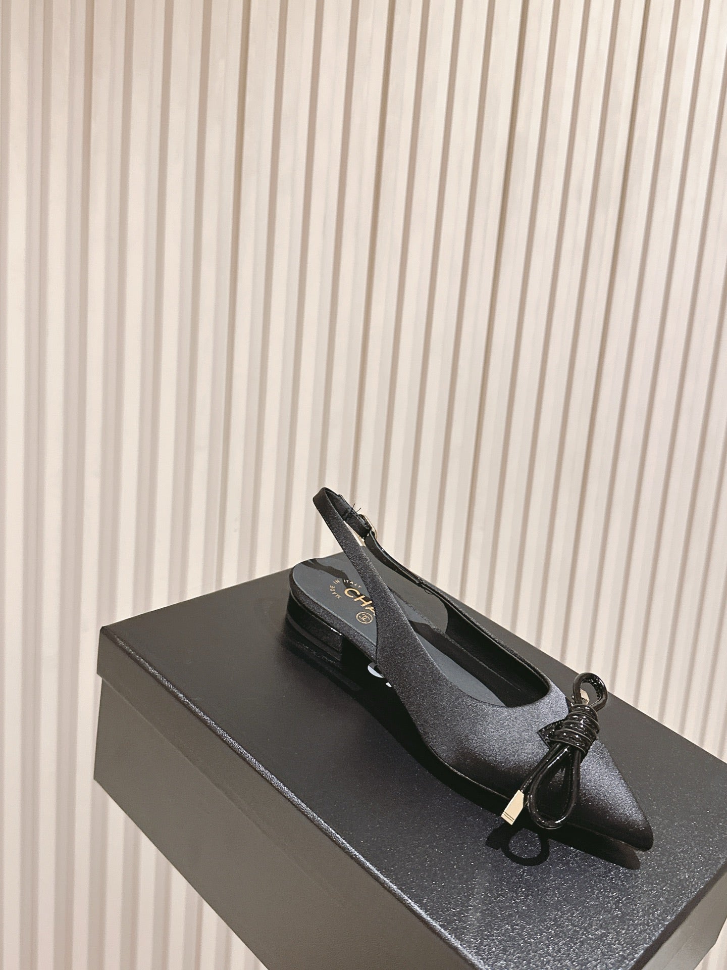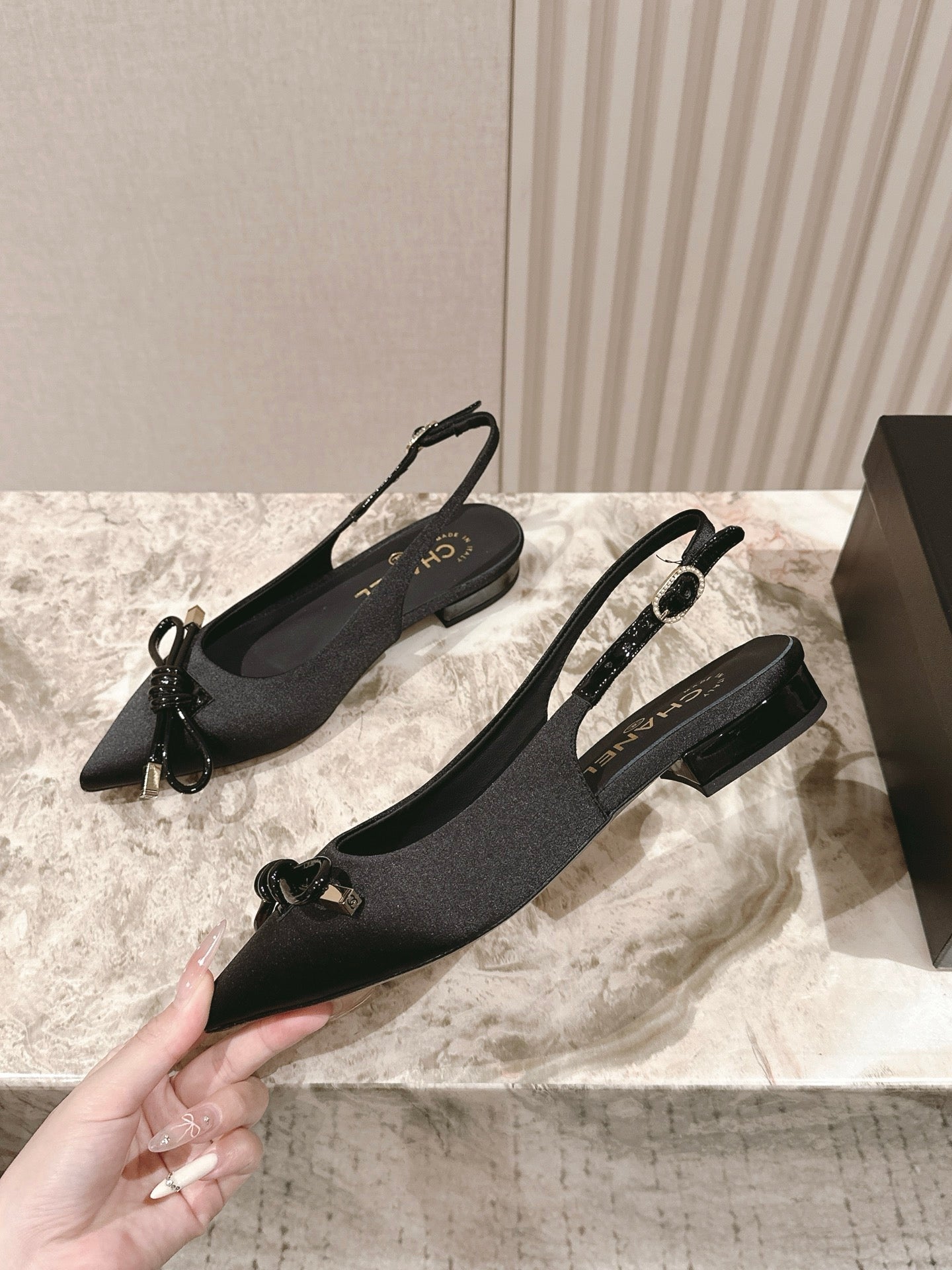 CC 25ss Bow Tie Slingbacks 20mm Black Satin & Patent Leather 447411