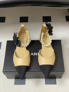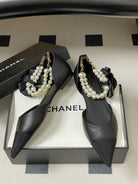 CC 26 Flat Slingback With Pearl Ankle Strap Lambskin Fabric