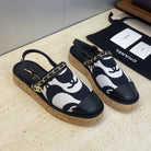 CC 26 Slingback Espadrilles Black Sheepskin Canvas 607462