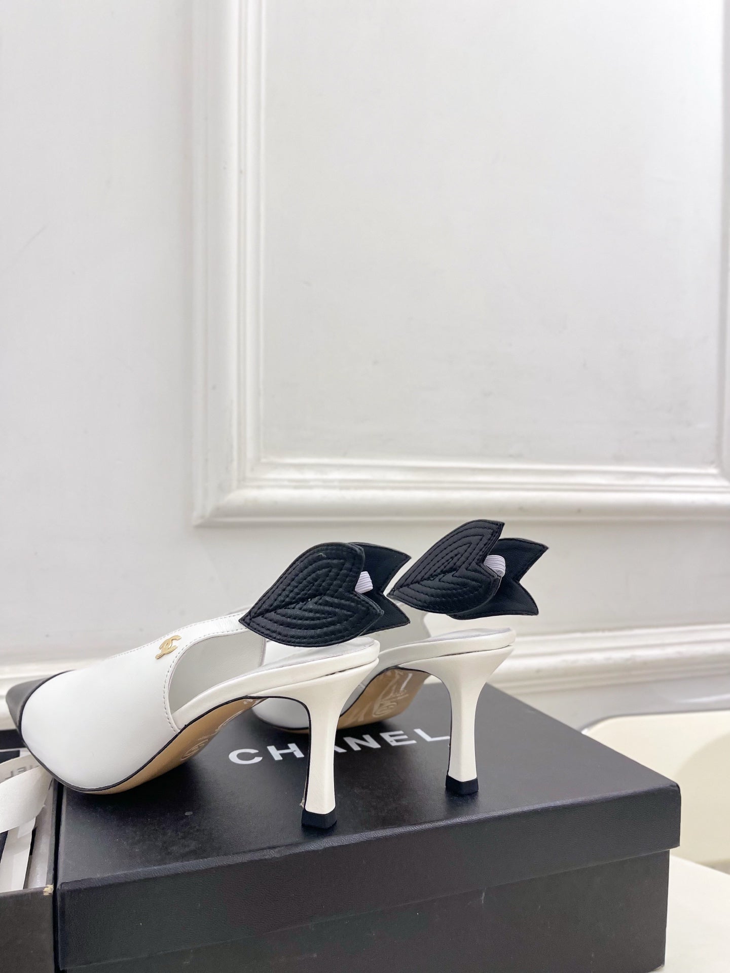CC 26 SS Open-Back Sandals 7.5cm White Black Calfskin 586932