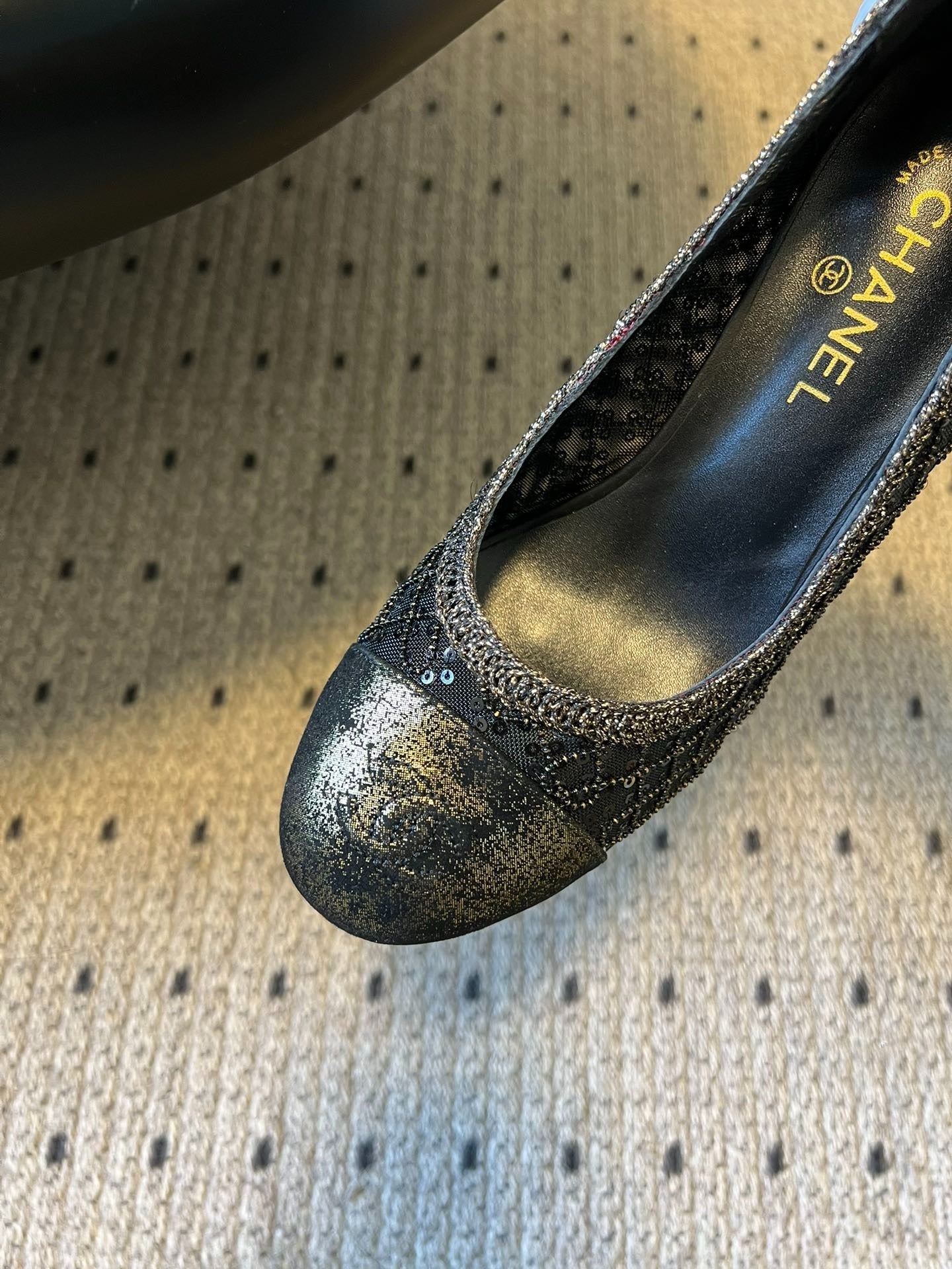 CC 26s High Heels Pump 50 Black Mesh Leather 627207