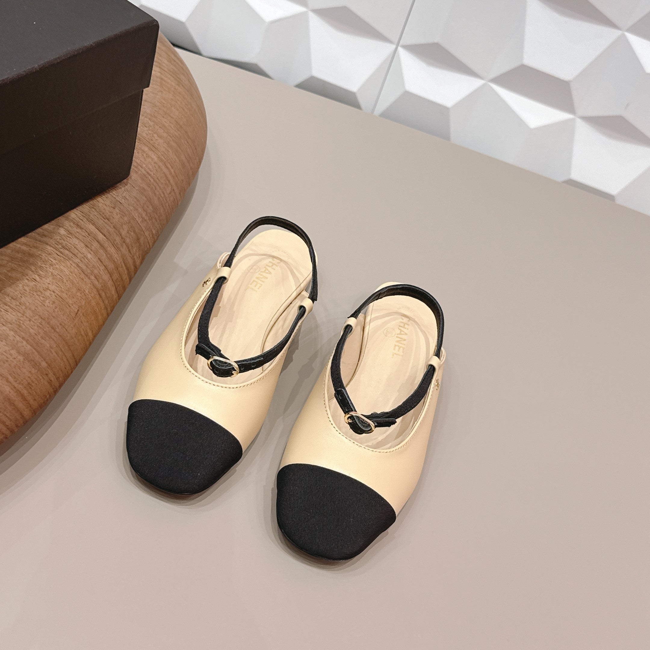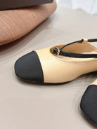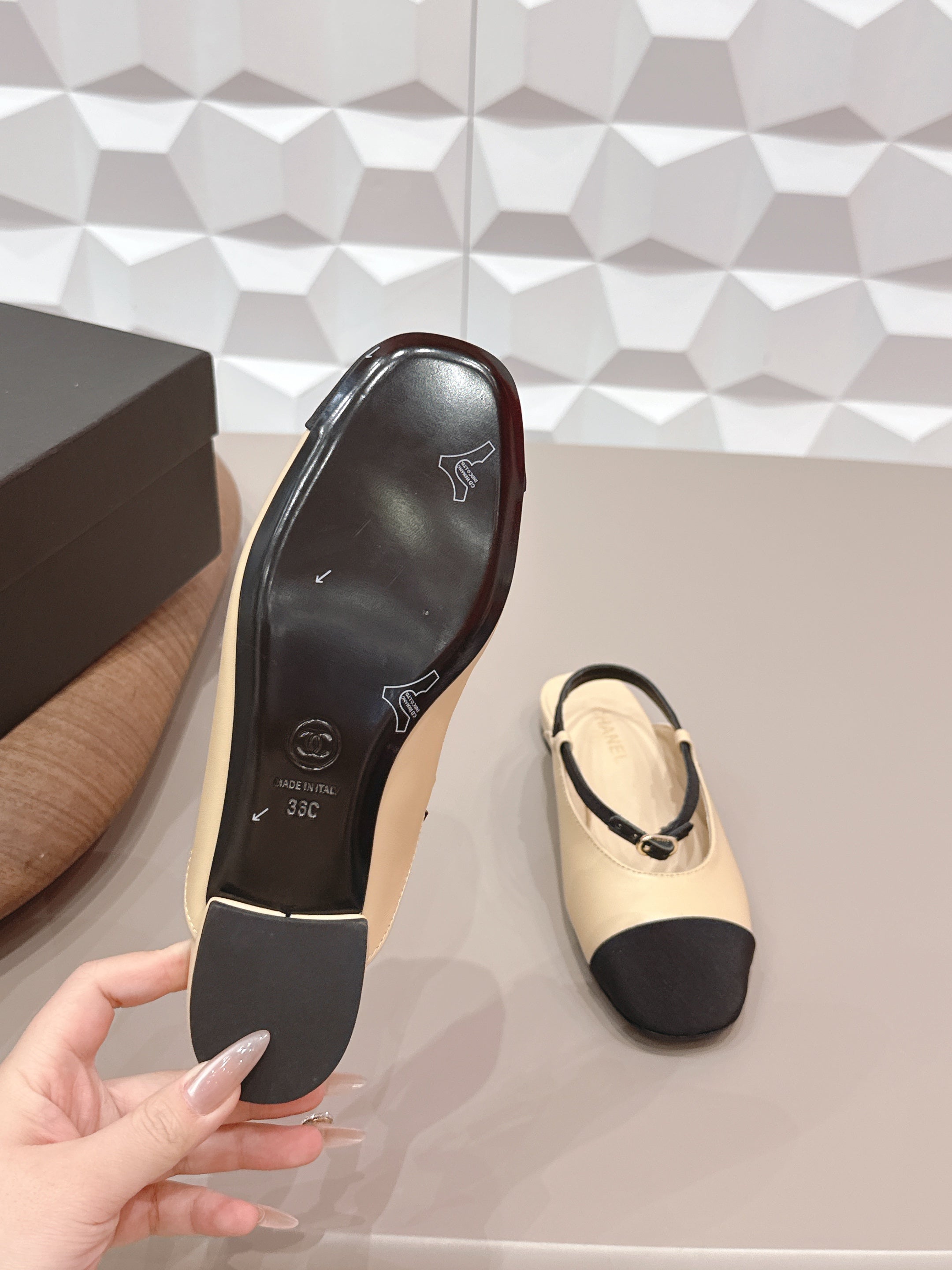 CC 26s Round-Toe Open-Back Flats Black Beige Fabric Leather 613255