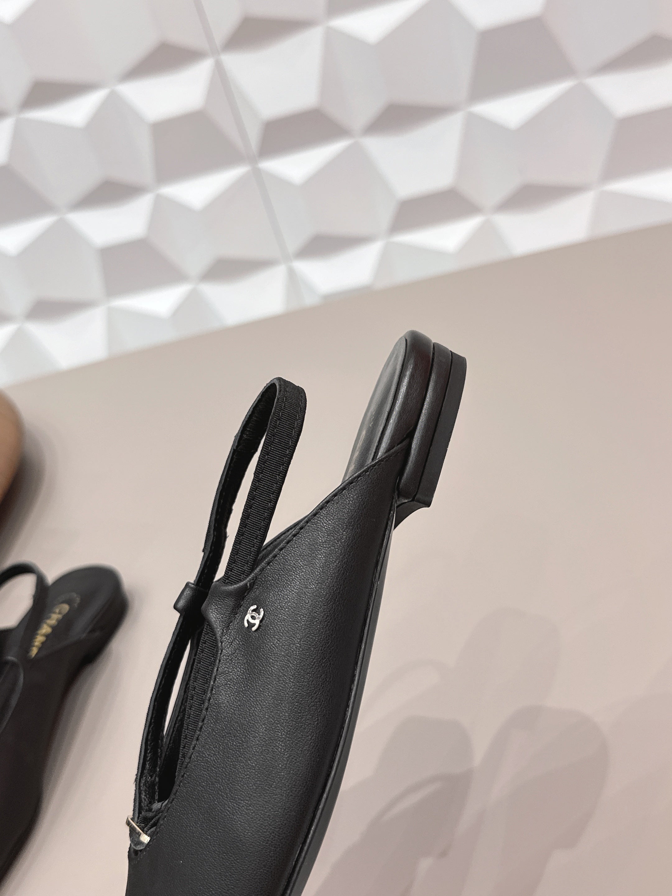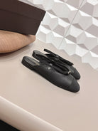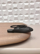 CC 26s Round-Toe Open-Back Flats Black Fabric Leather 613254