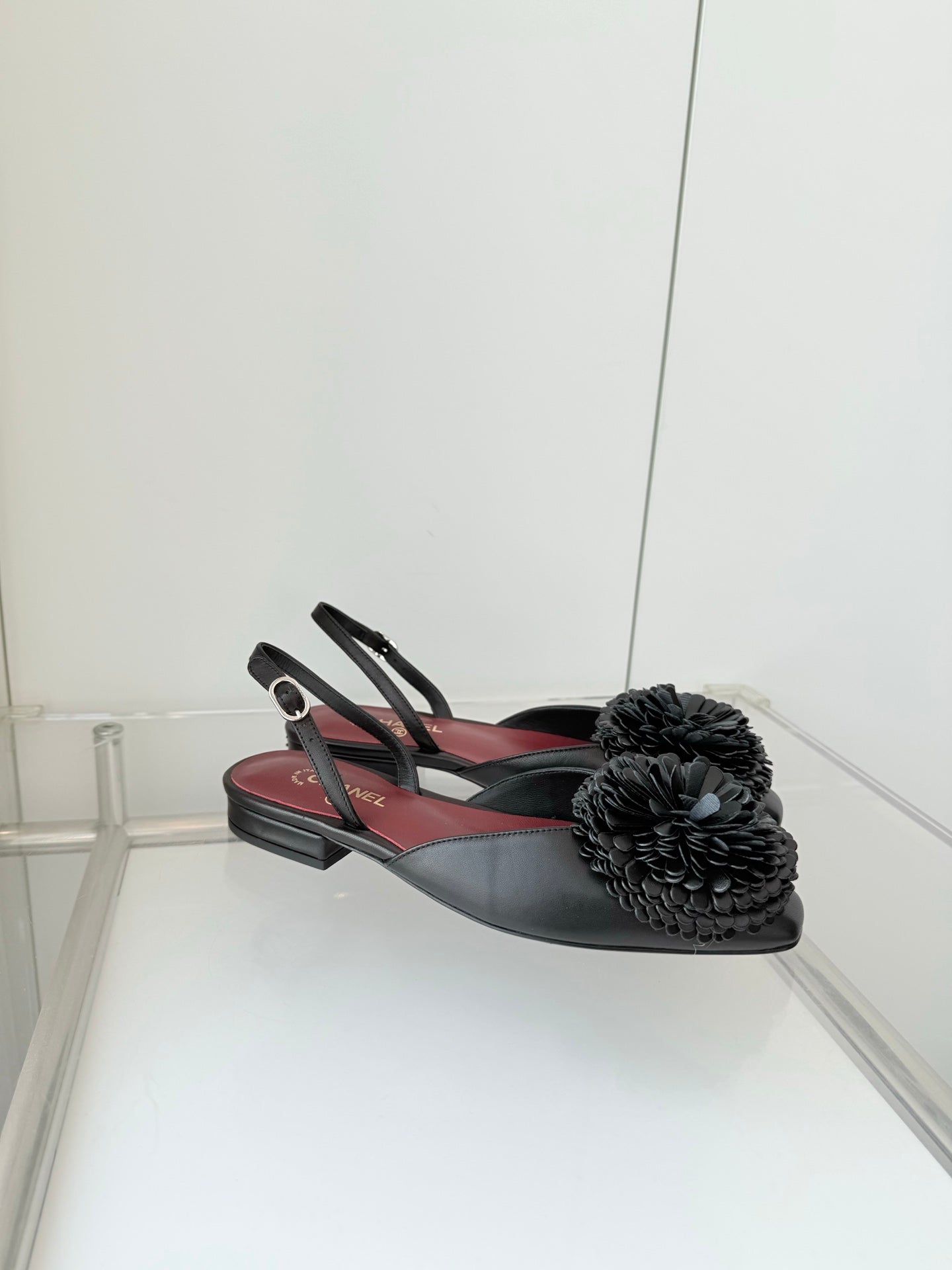 CC 26s Slingback 1.5cm Camellia Flower Black Sheepskin 597410