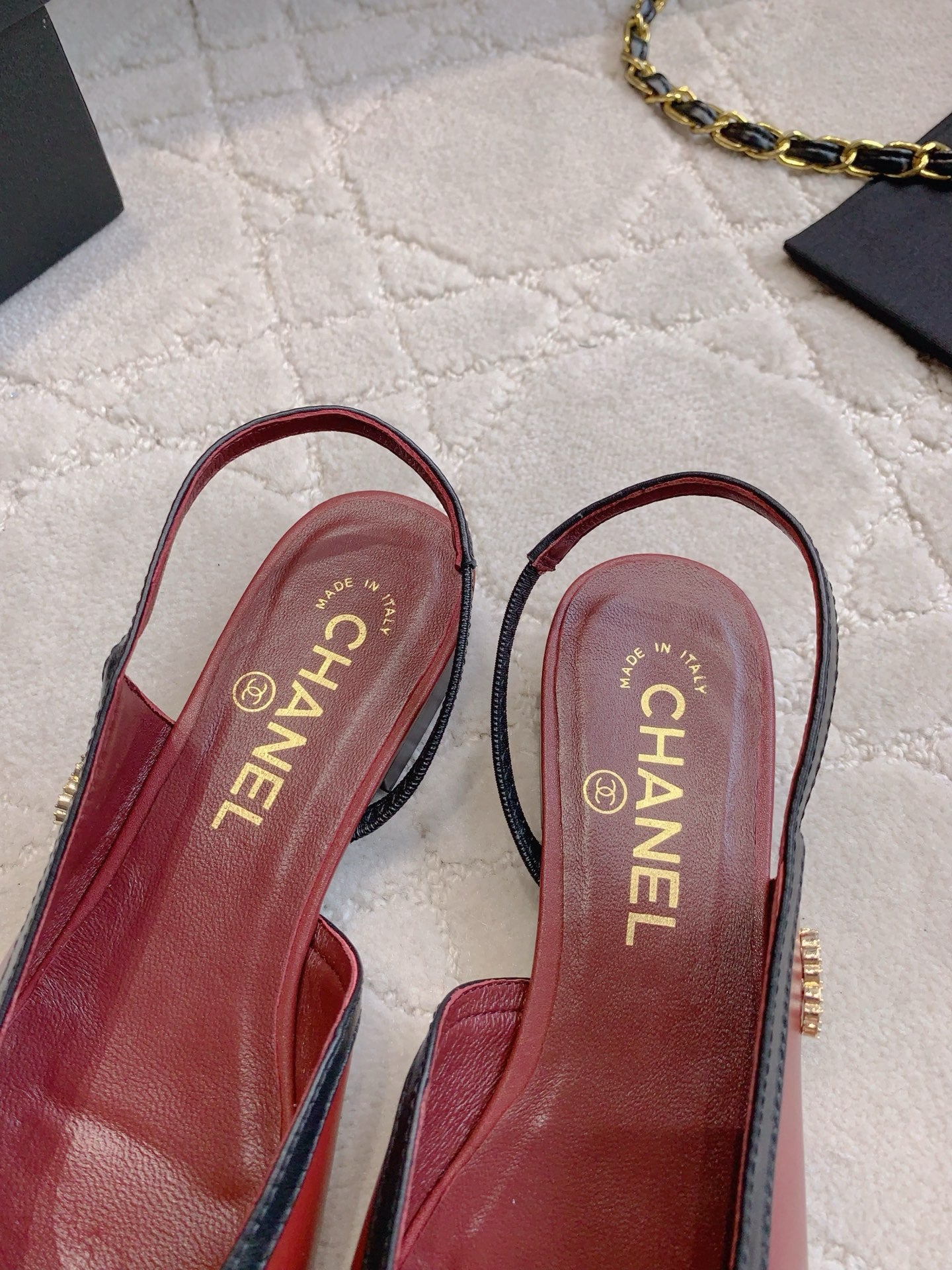 CC Cap Toe Slingback Black Red Lambskin 404283